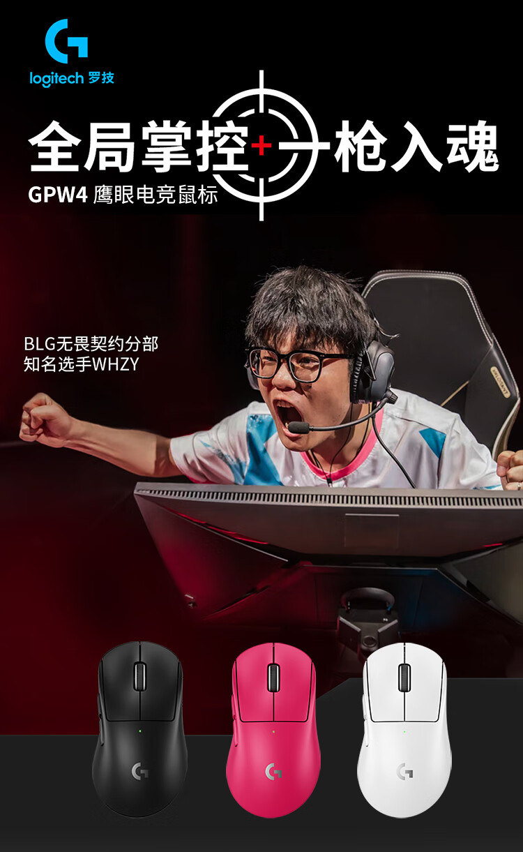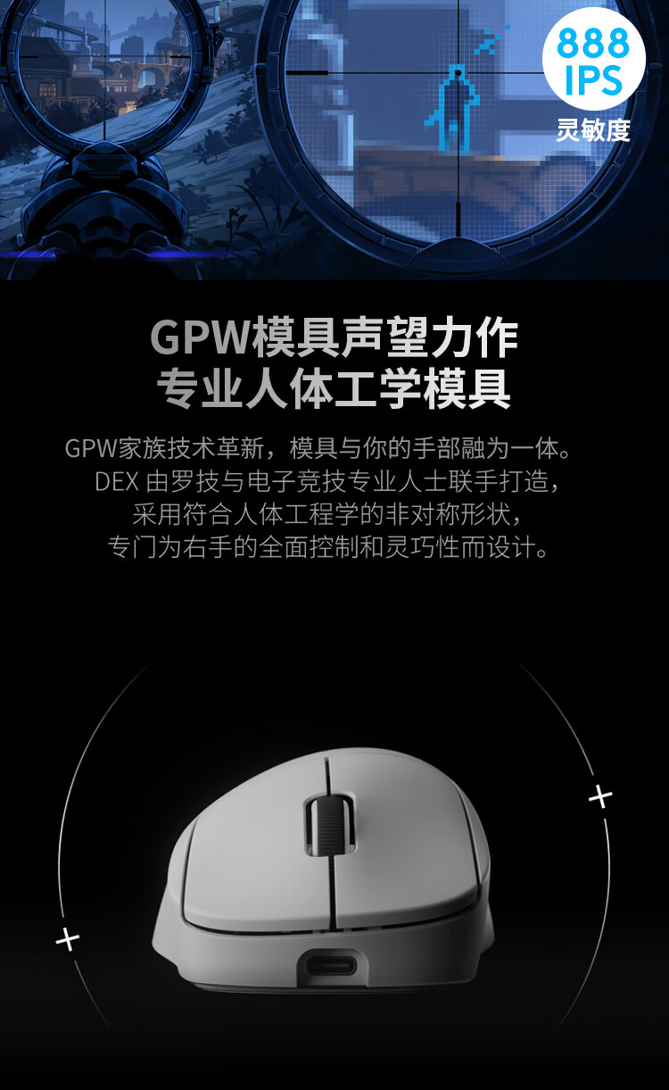 罗技(G)无线GPW4代鹰眼 狗屁王四代无线电竞游戏鼠标 8KHz轮询率职业选手同款 FPS三角洲游戏人体工学鼠标 GPW四代鹰眼白色【国补随时下线】