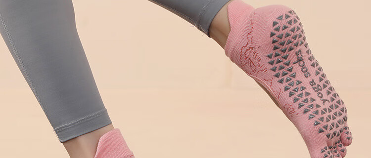 ClescKasu autumn yoga socks five-toed anti-slip socks sports socks Pilates socks five-toed socks women's fingered socks cotton pink one size 35-40