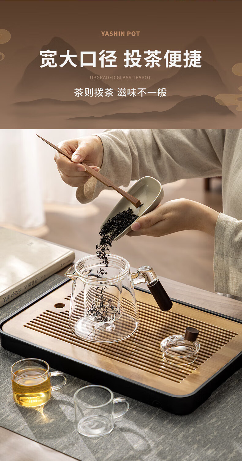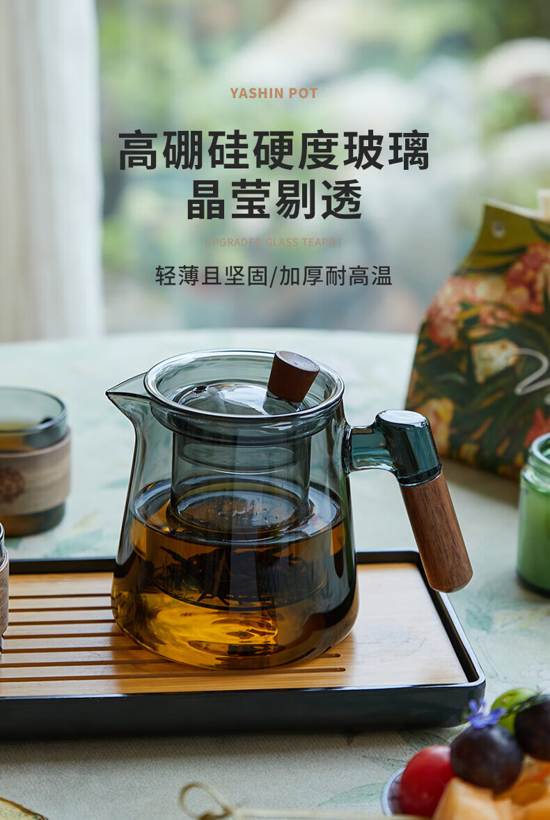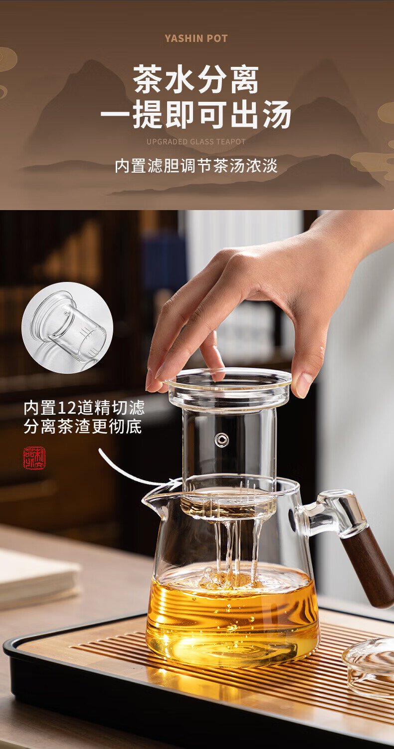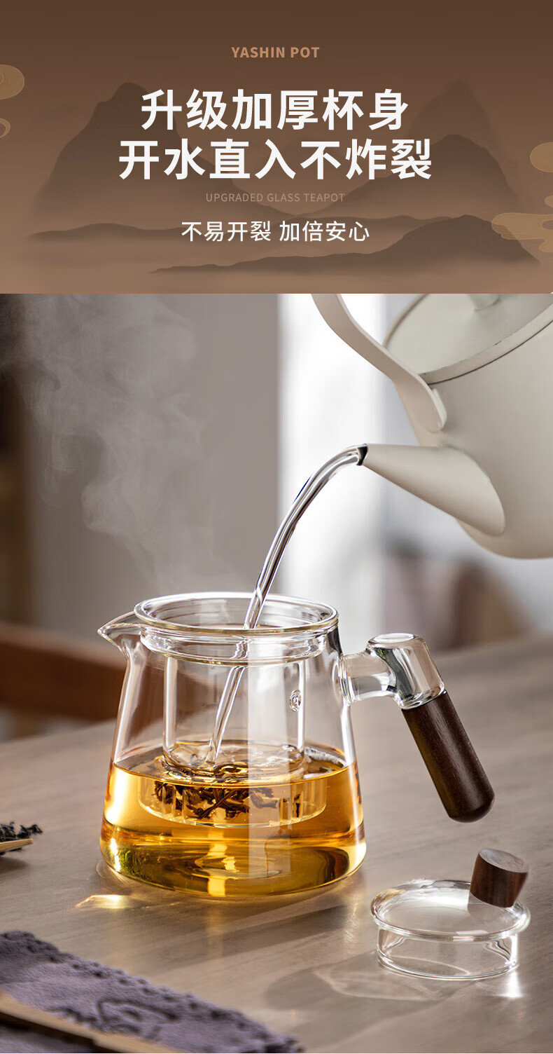 Yihutea (YIHUTEA) glass teapot tea maker, household tea-making special high-temperature tea set, tea water separation and filtration three-piece tea kettle set, double load-bearing handle - transparent tea kettle 600ml