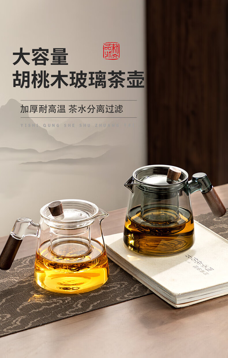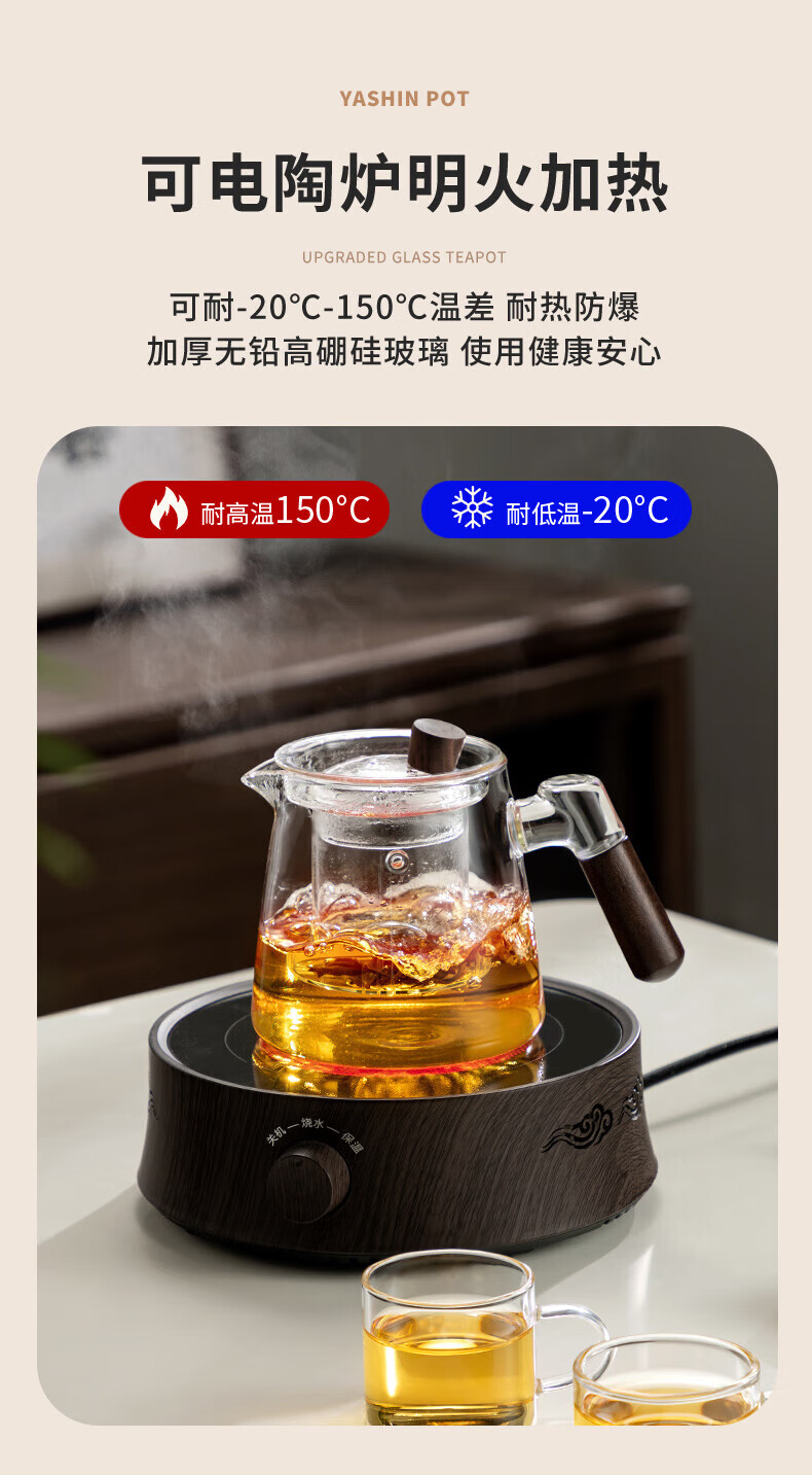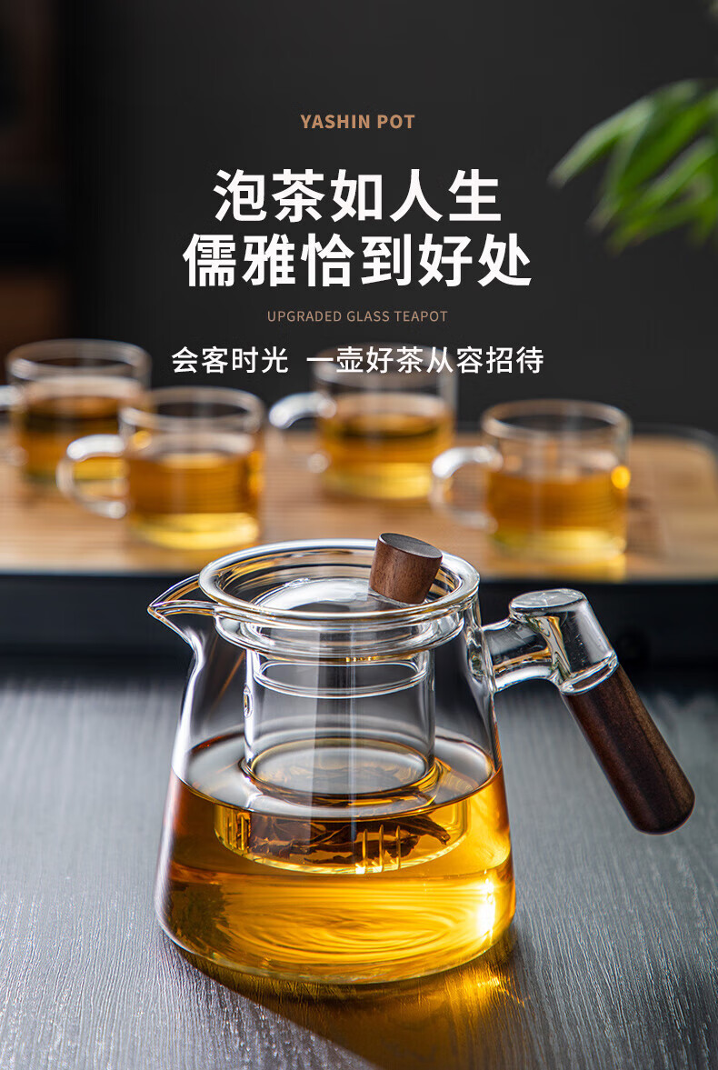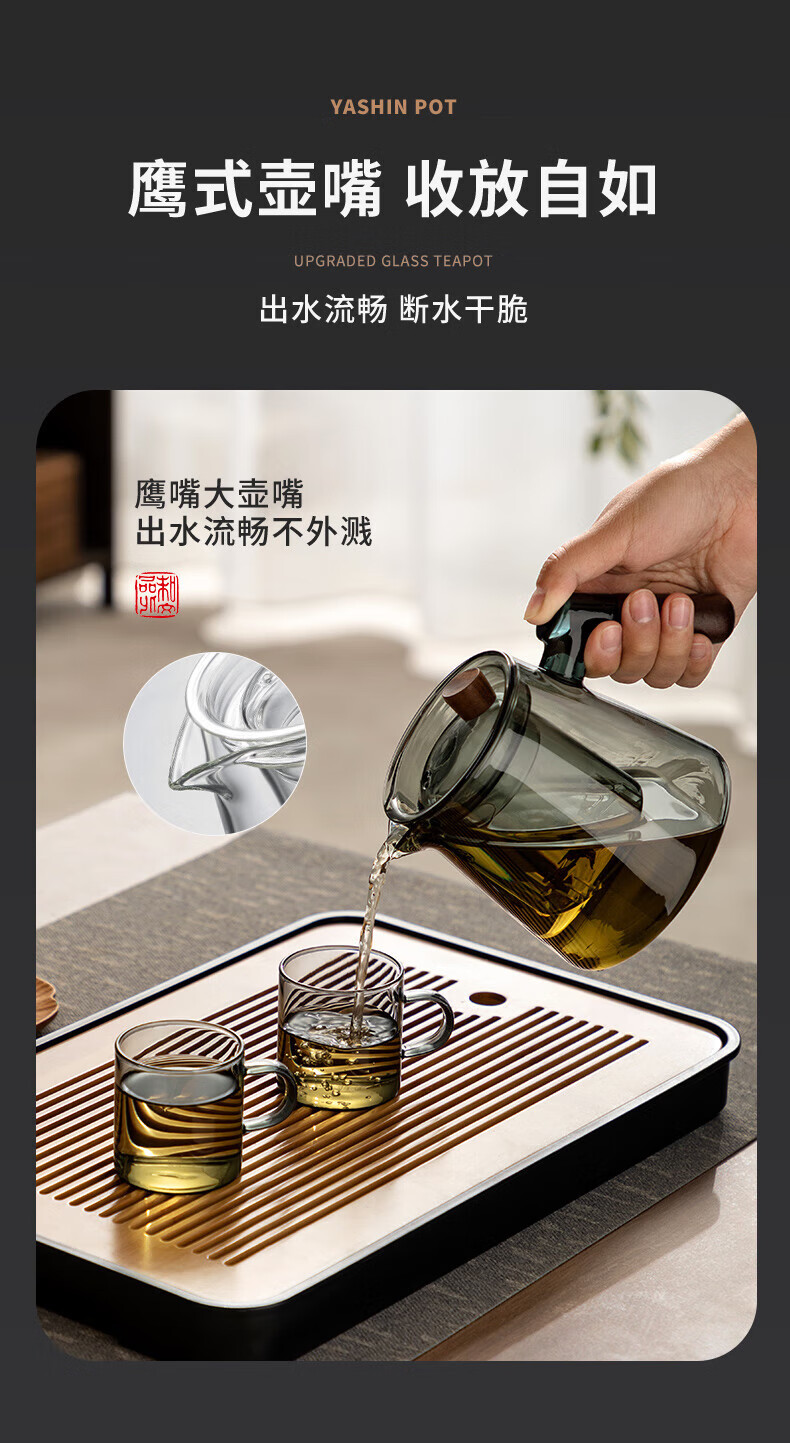 Yihutea (YIHUTEA) glass teapot tea maker, household tea-making special high-temperature tea set, tea water separation and filtration three-piece tea kettle set, double load-bearing handle - transparent tea kettle 600ml
