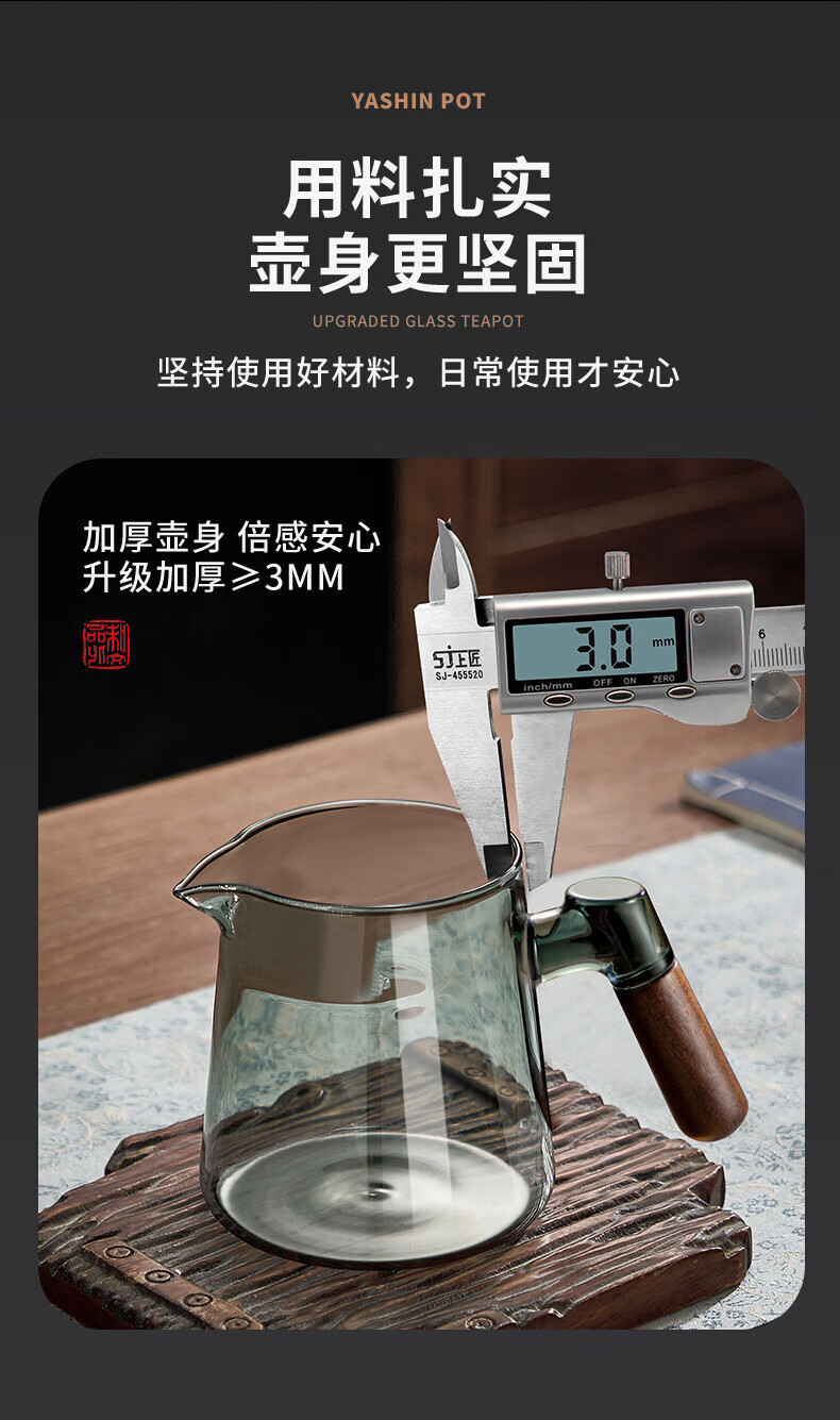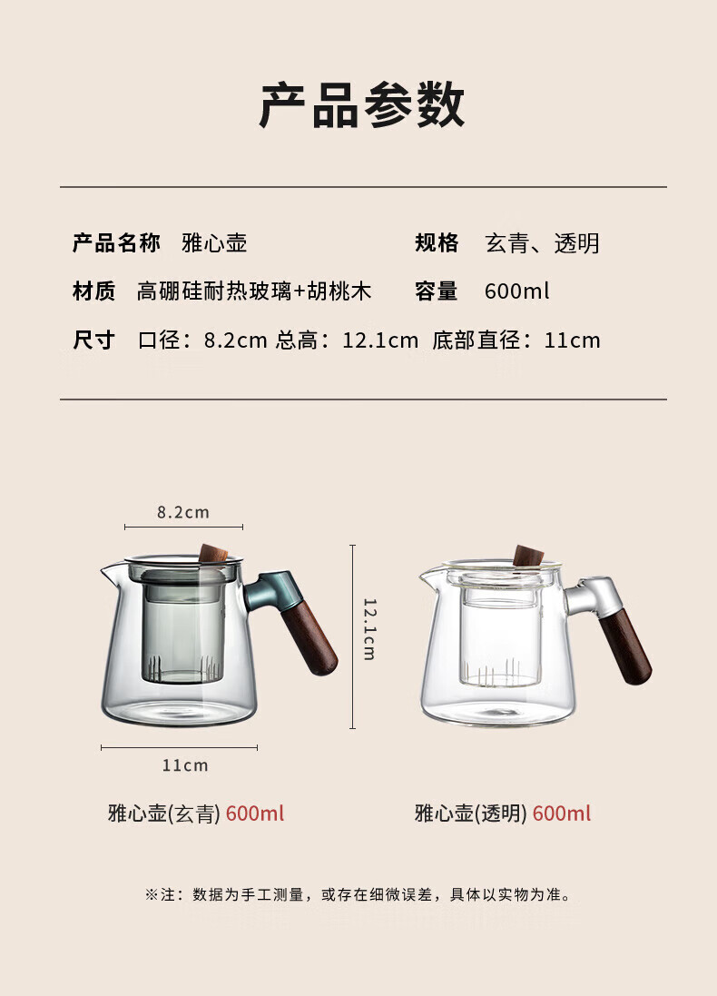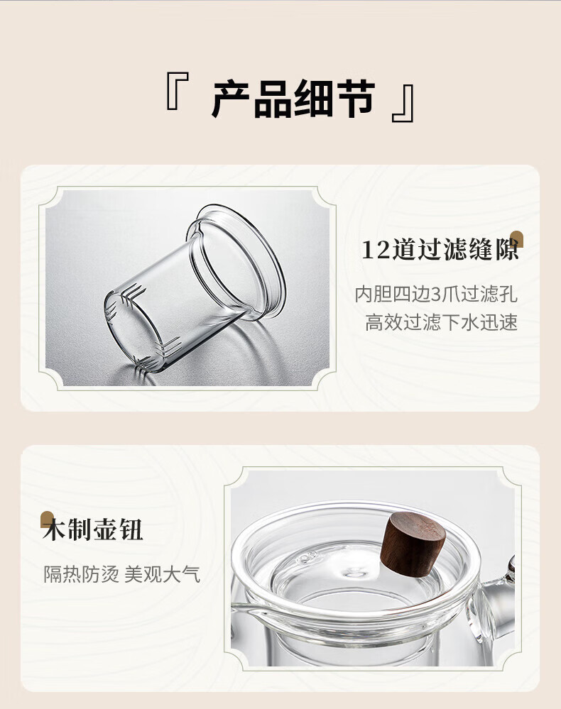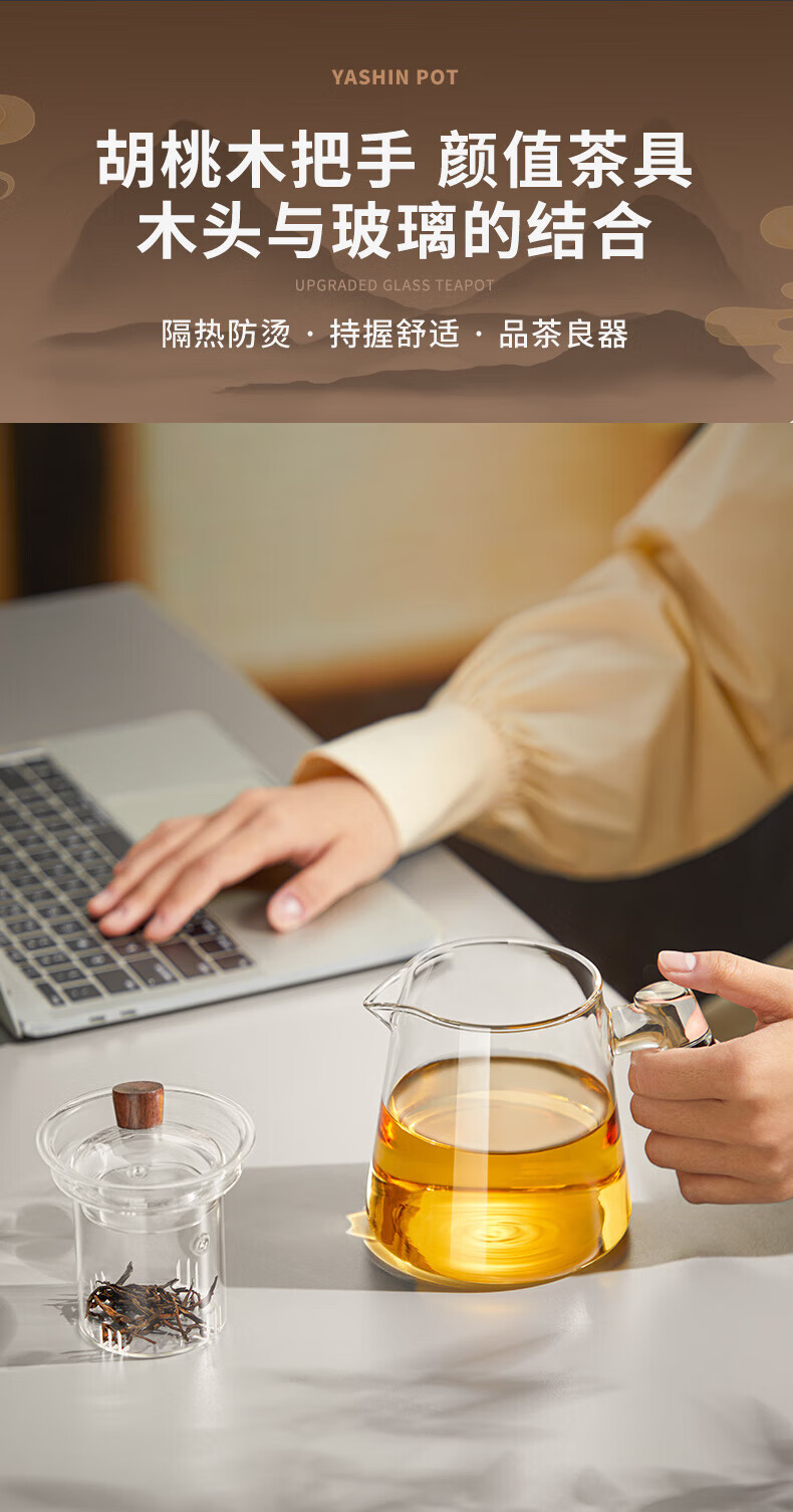 Yihutea (YIHUTEA) glass teapot tea maker, household tea-making special high-temperature tea set, tea water separation and filtration three-piece tea kettle set, double load-bearing handle - transparent tea kettle 600ml