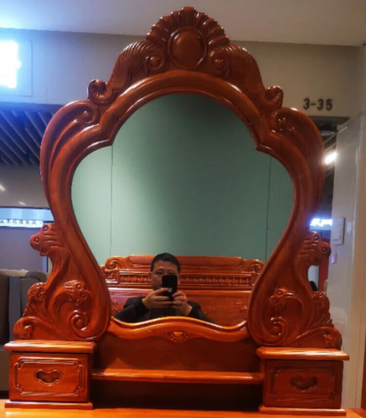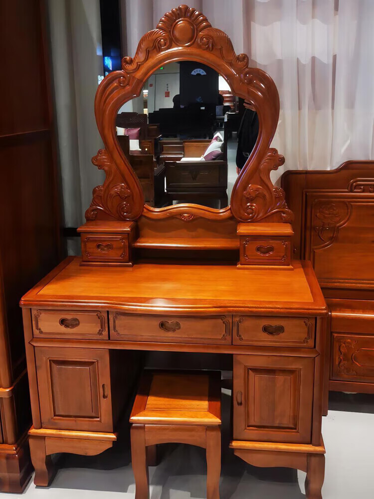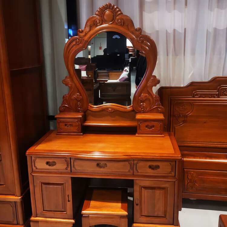 Yuewen Guangdong Foshan Indonesian rosewood all solid wood dressing table with stool Ming and Qing classical carving master bedroom dressing table other models solid wood dressing table + stool*1