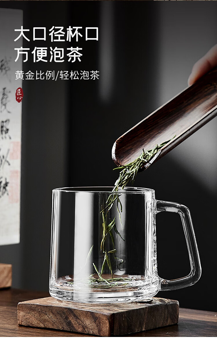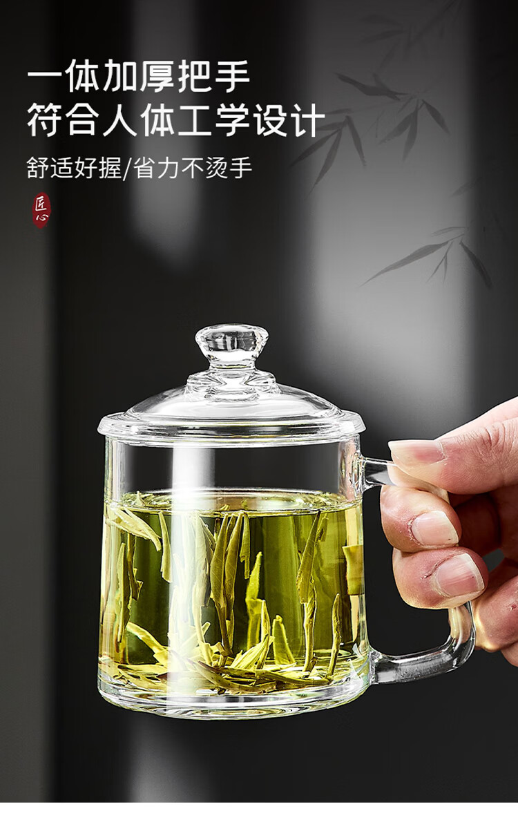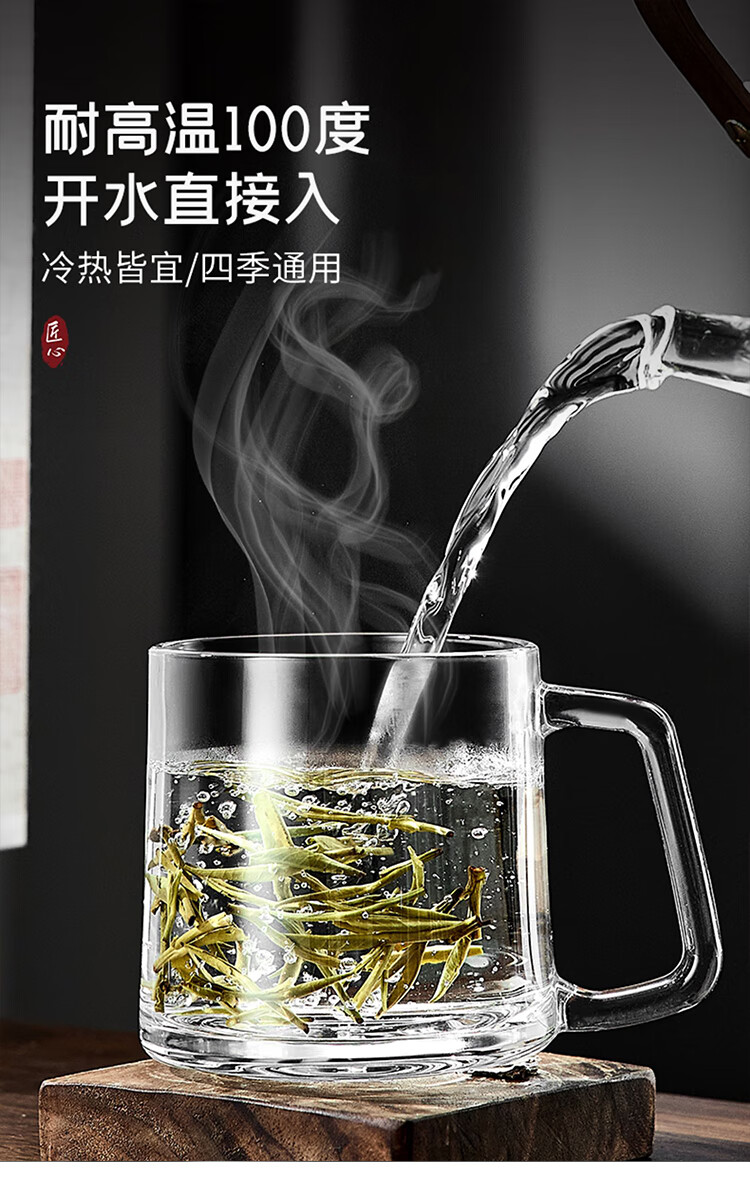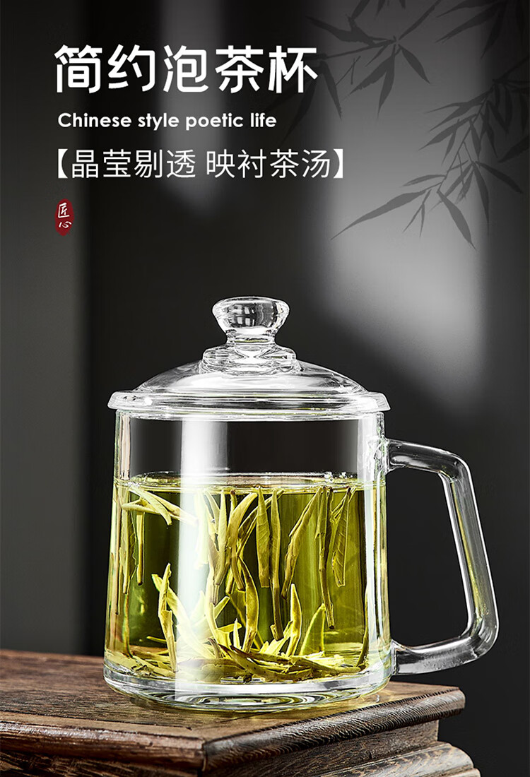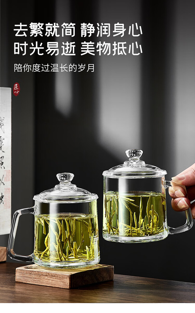 Thickened high-temperature-resistant large-capacity glass cup with lid for tea drinking at home Thickened glass tea cup 350ml