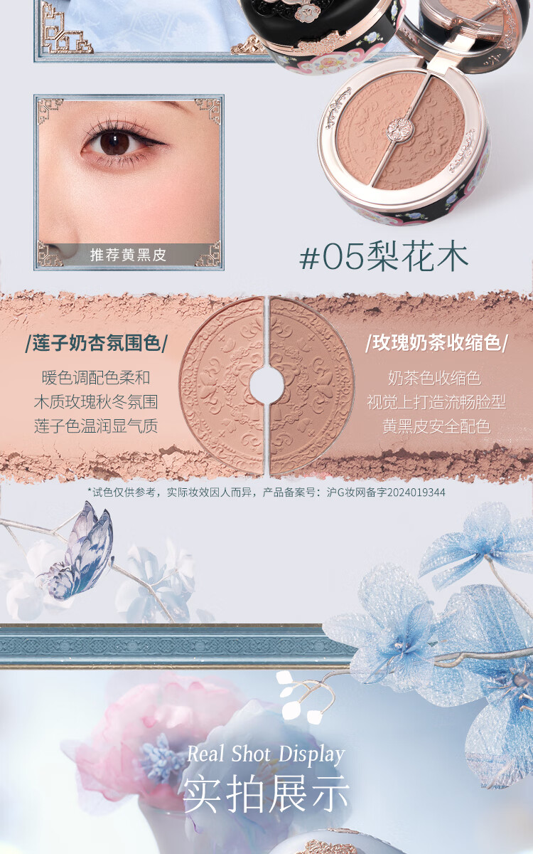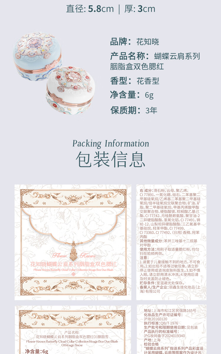 Flower Knows Valentine's Day Butterfly Cloud Shoulder Two-tone Blush Matte Delicate Low Saturation Natural Translucent Gift for Girlfriend 03 Pastel Lotus