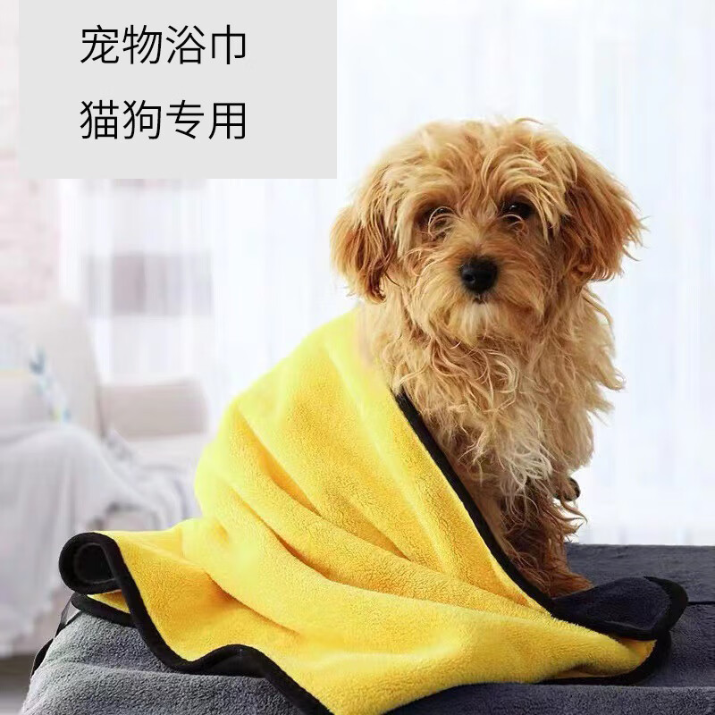 Dongzhitiandi gray and yellow pet absorbent towel dog and cat bathing quick-drying bath towel golden fur edge dry soft and thickened 30*60cm
