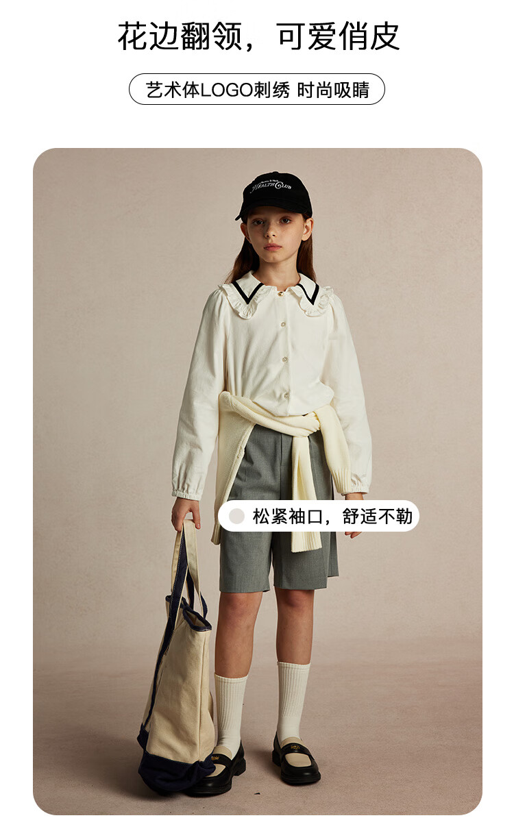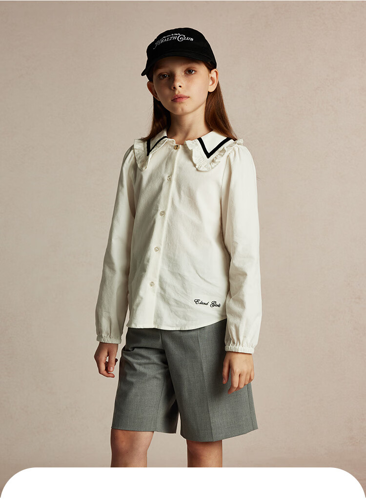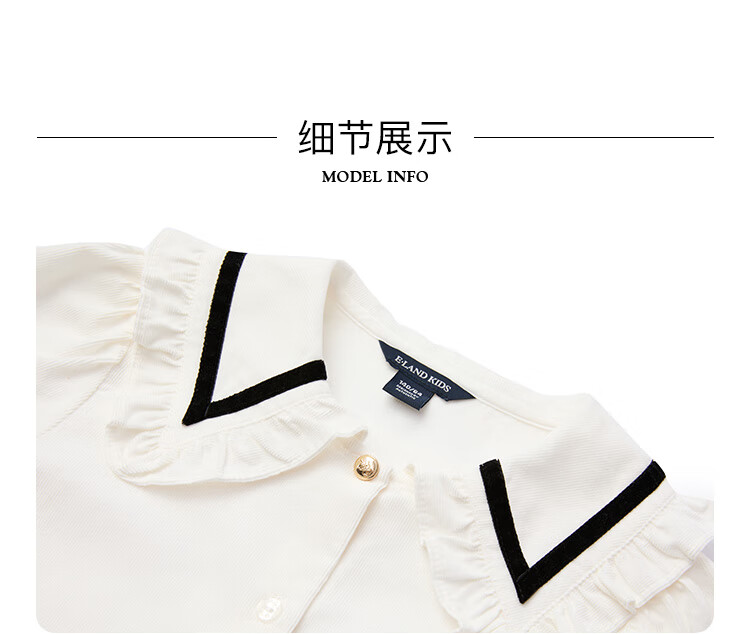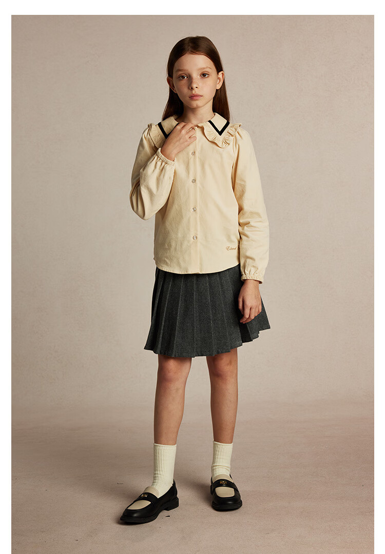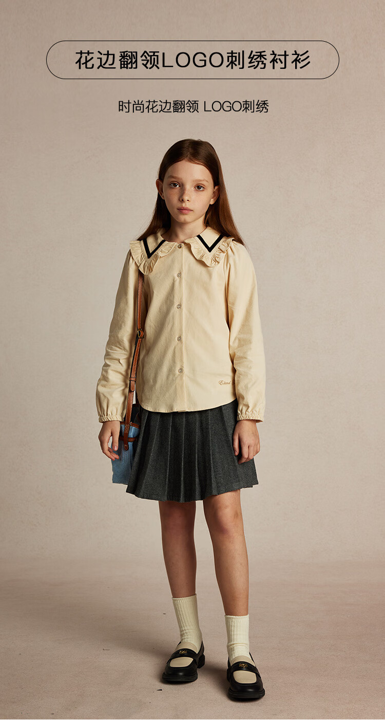 E LAND KIDS Yilian girls' shirt season new lace lapel LOGO embroidered top Beige beige/35 150