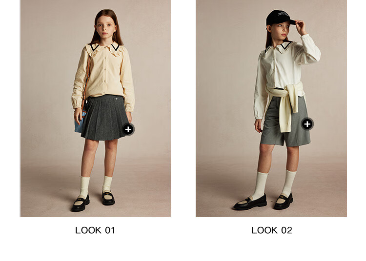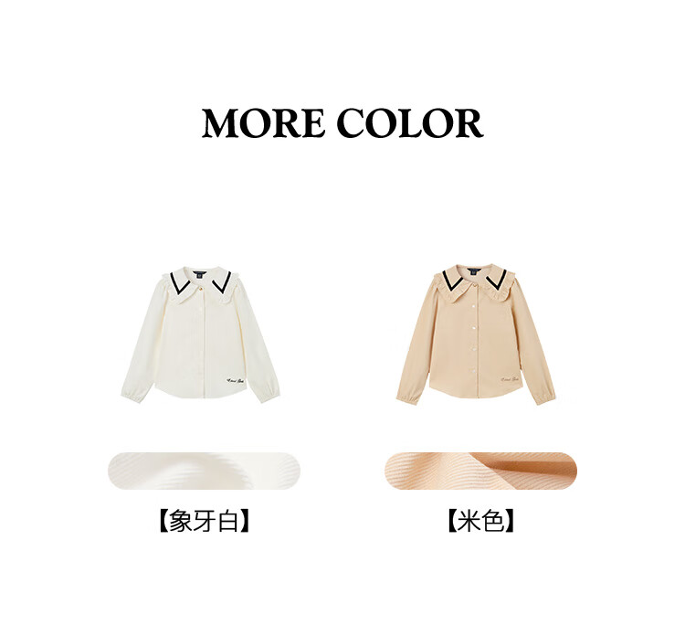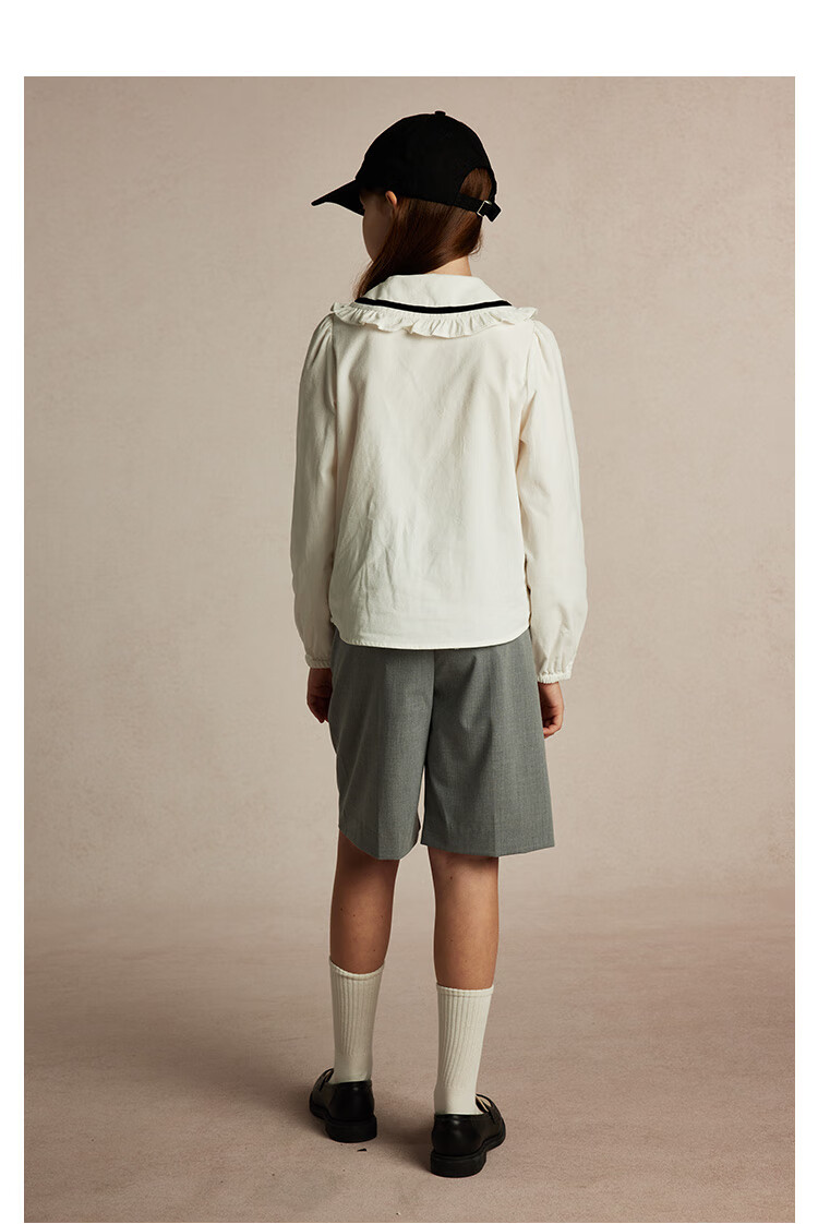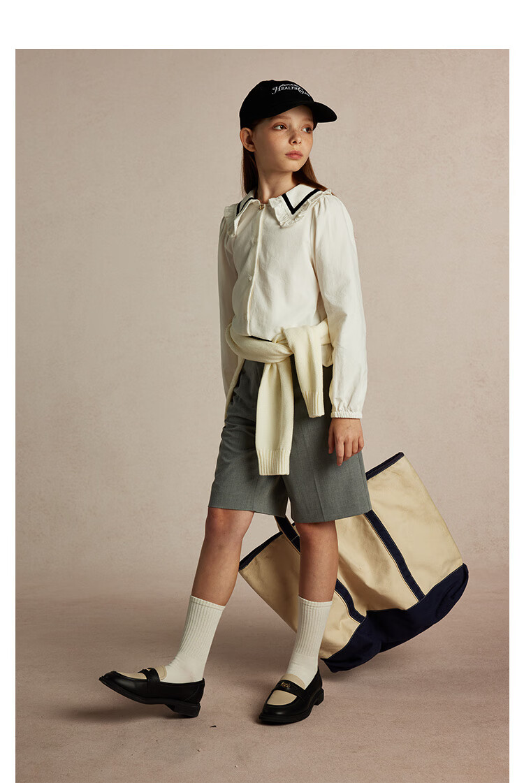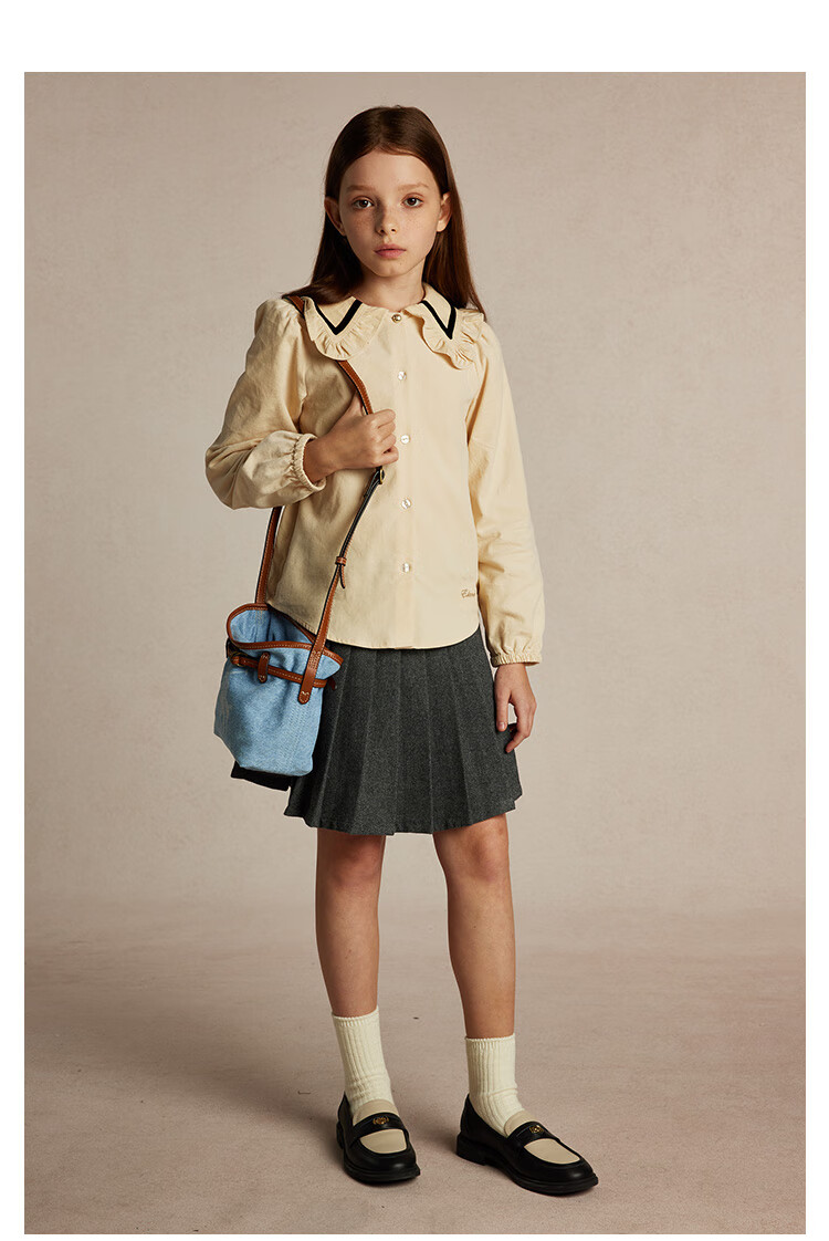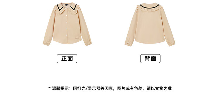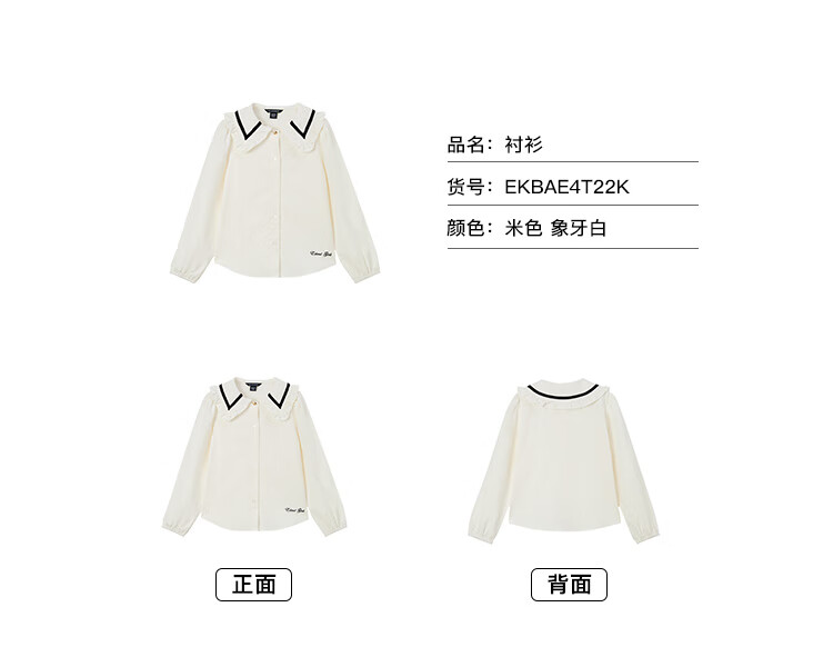 E LAND KIDS Yilian girls' shirt season new lace lapel LOGO embroidered top Beige beige/35 150