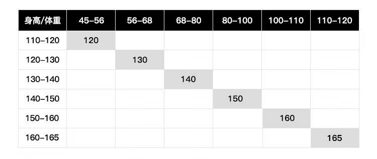 China (cm) 160-165/84-86 165-170 / 88-90 167-172 / 92-96 168-173 / 98-102 170-176 / 106-110