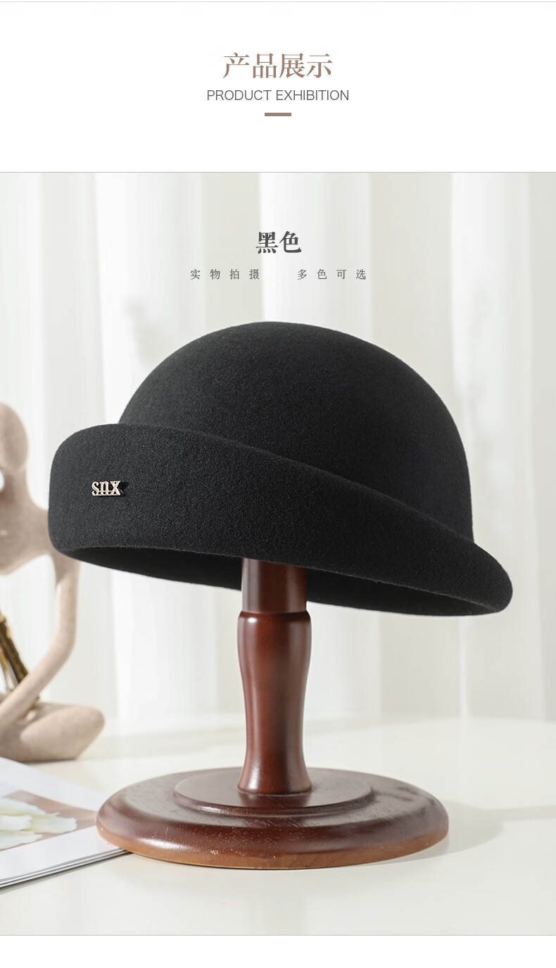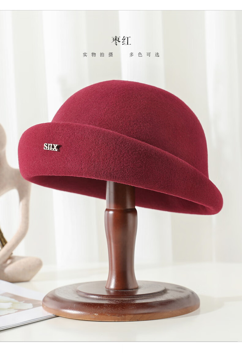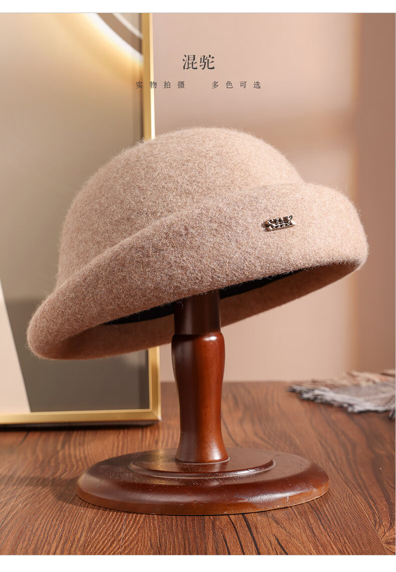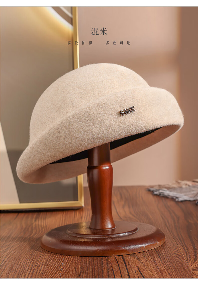 PTAH hat women's new autumn and winter small top hat beret warm woolen felt top hat versatile fashion retro basin hat mixed rice