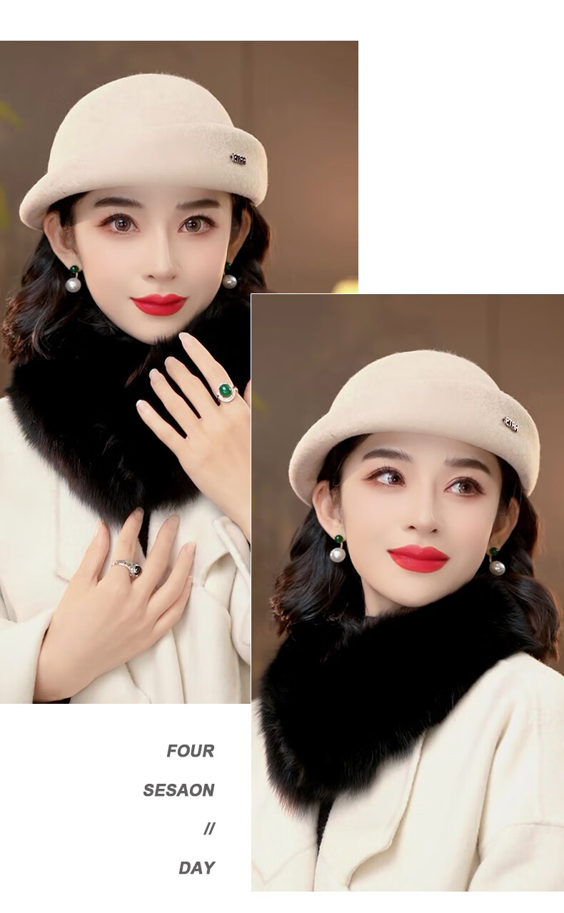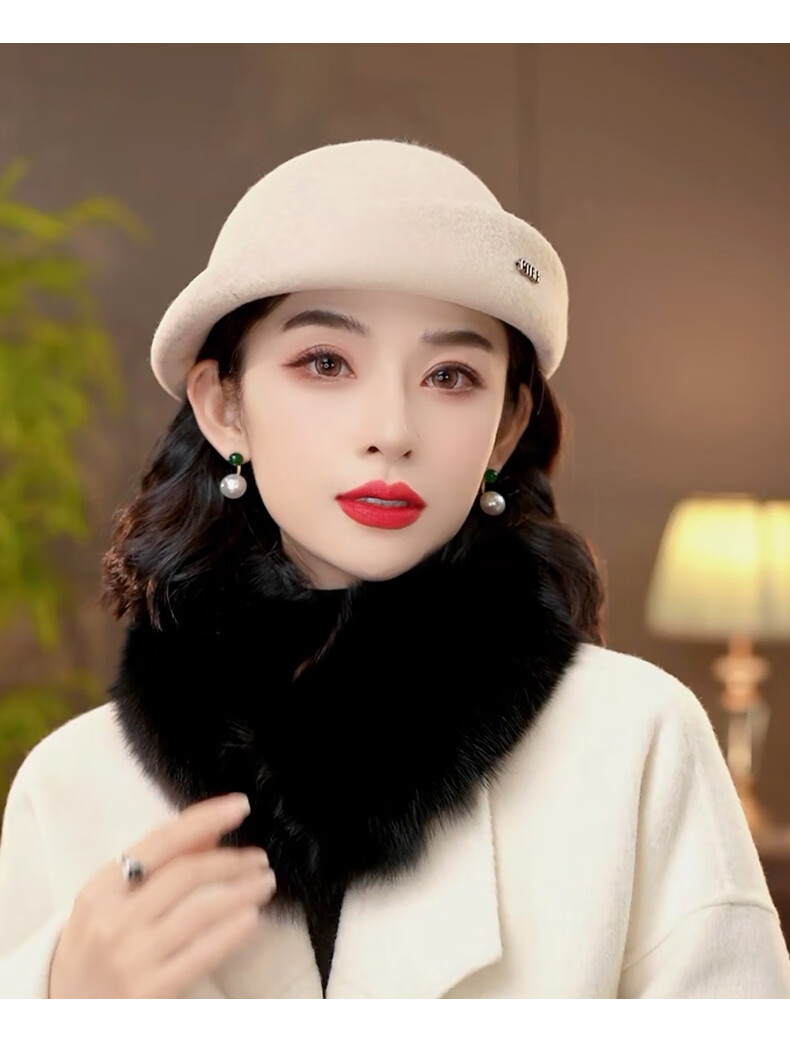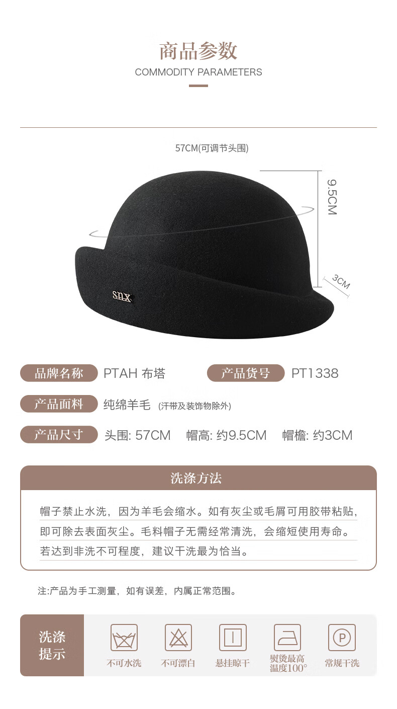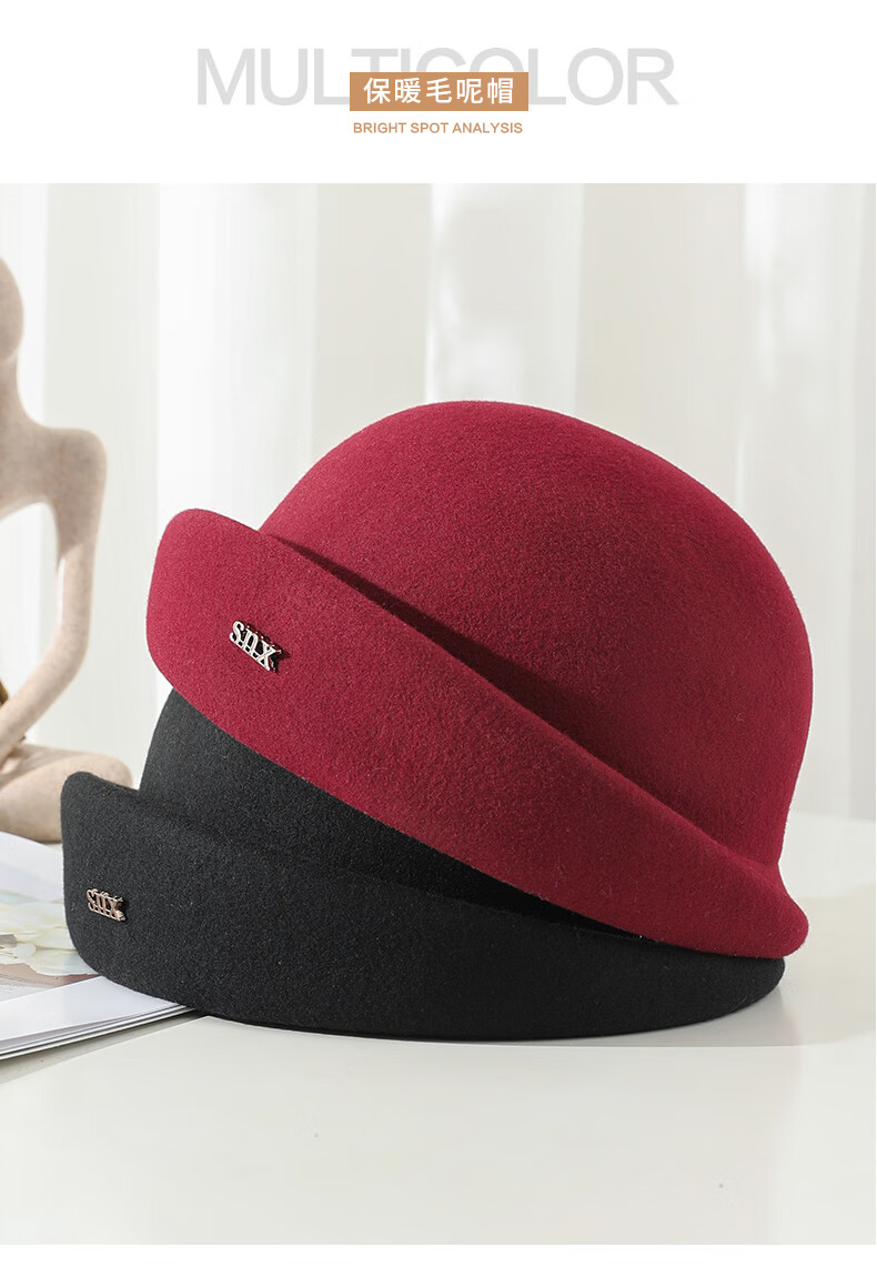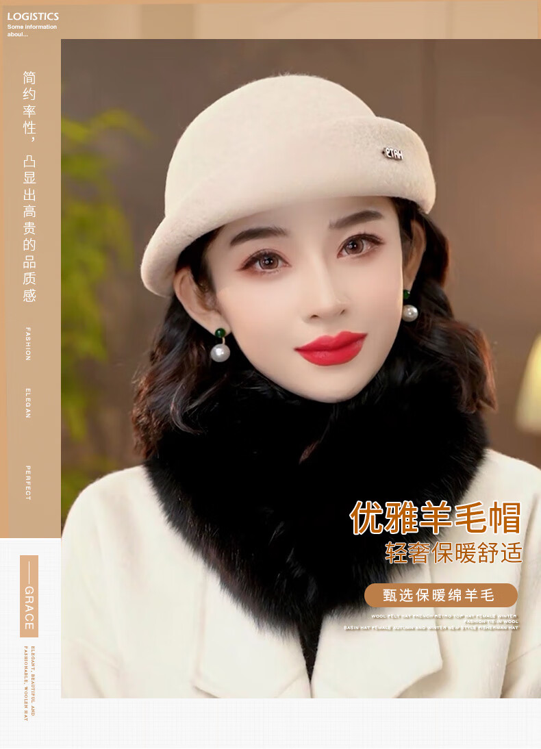 PTAH hat women's new autumn and winter small top hat beret warm woolen felt top hat versatile fashion retro basin hat mixed rice