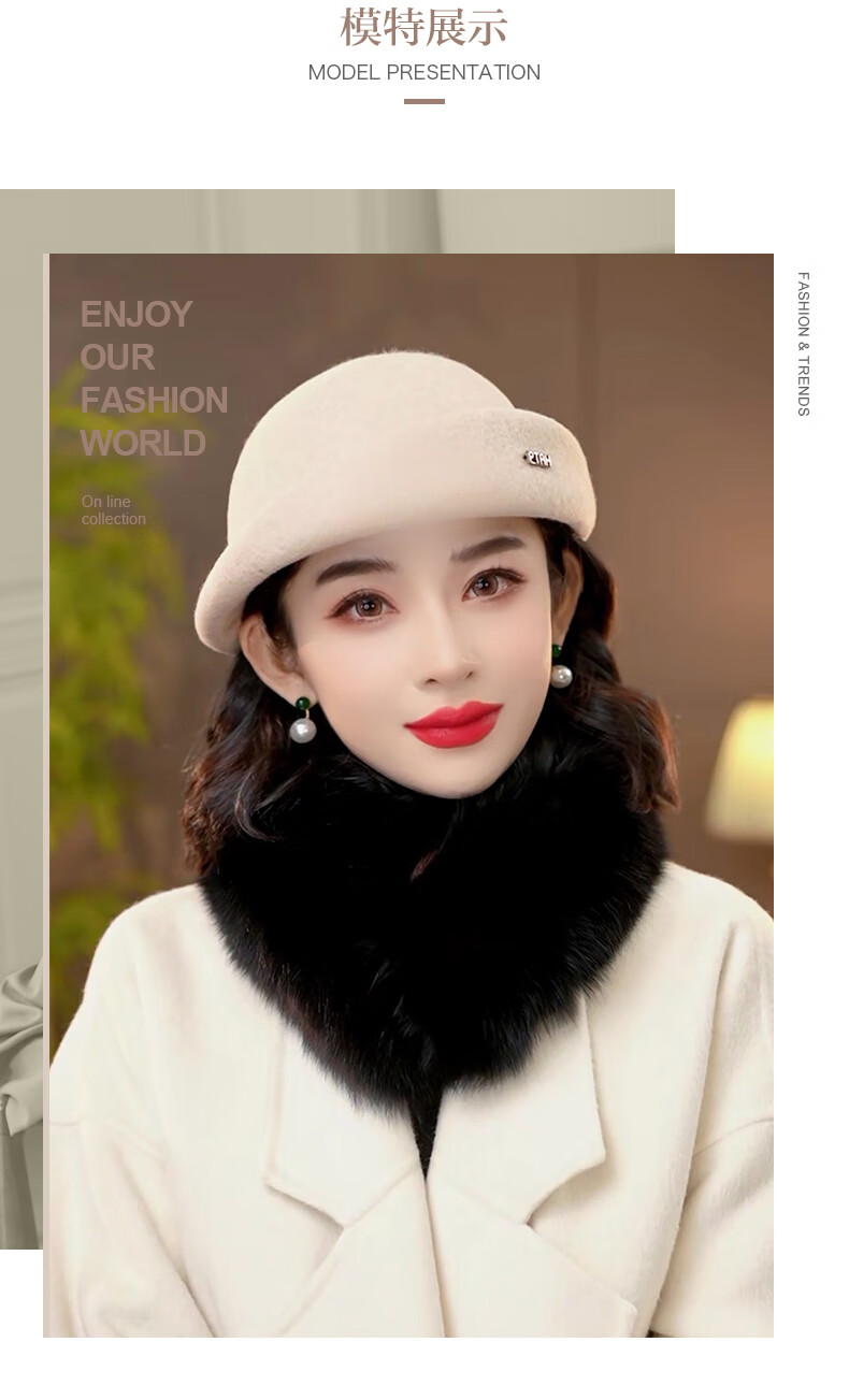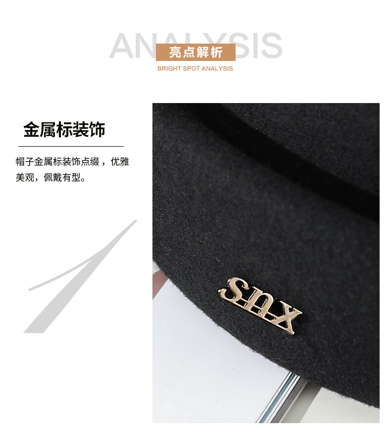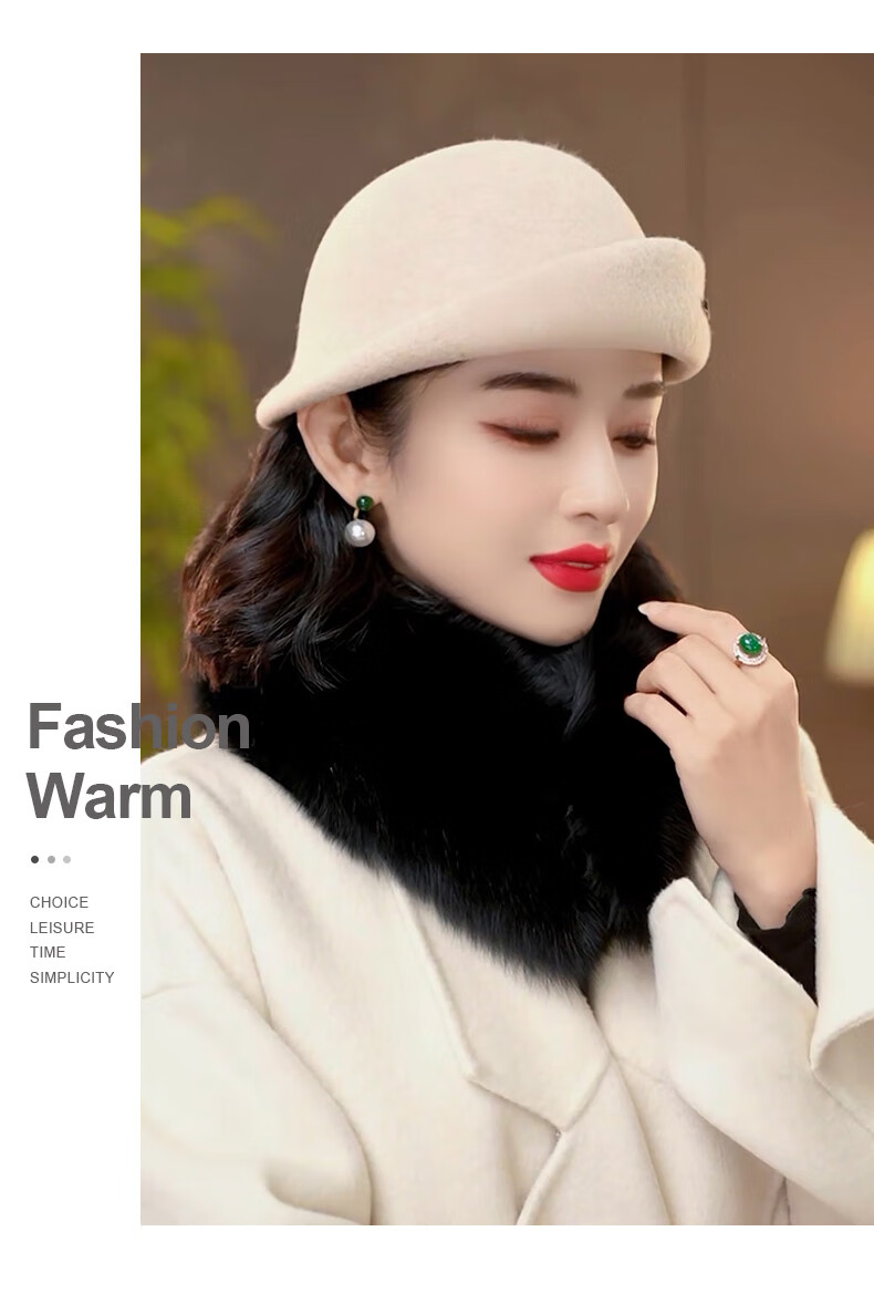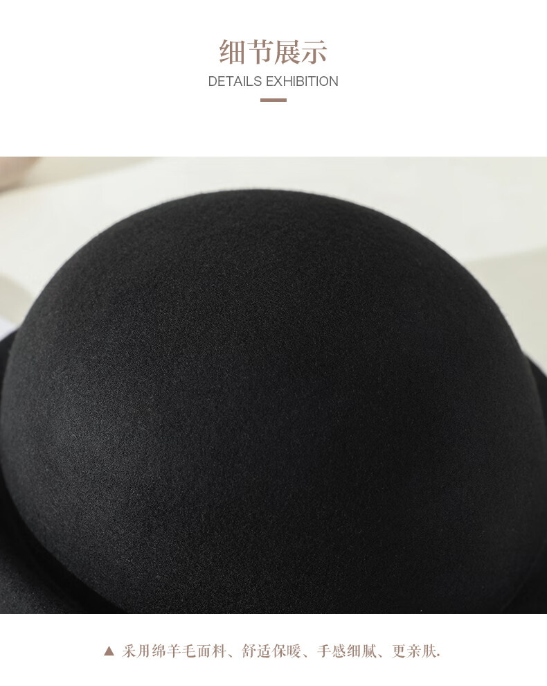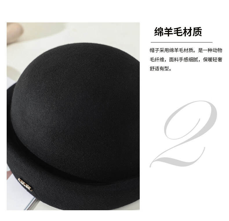 PTAH hat women's new autumn and winter small top hat beret warm woolen felt top hat versatile fashion retro basin hat mixed rice