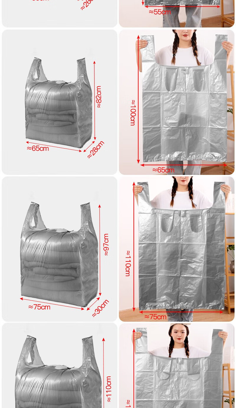 Jieyi moving packing bag artifact storage bag handbag packing duffel bag large capacity disposable plastic bag extra large 10 pieces large size - red thickened 65*97cm