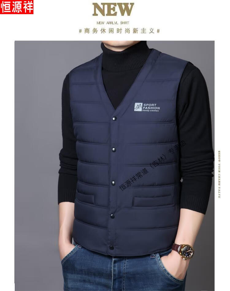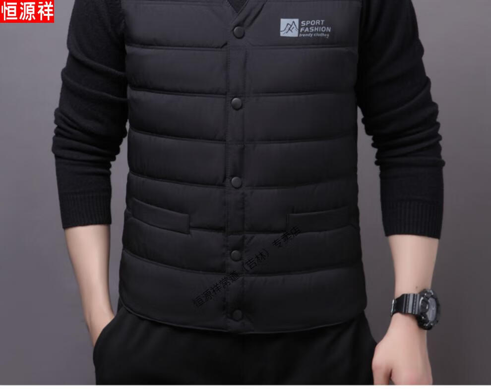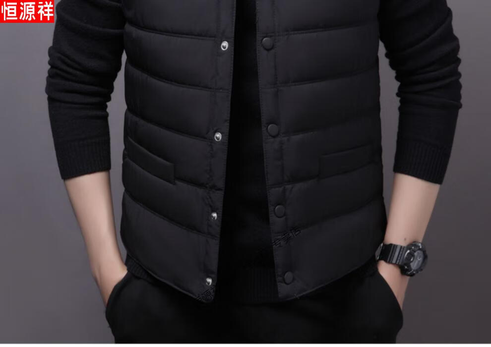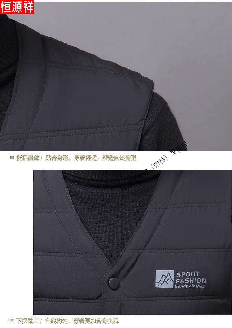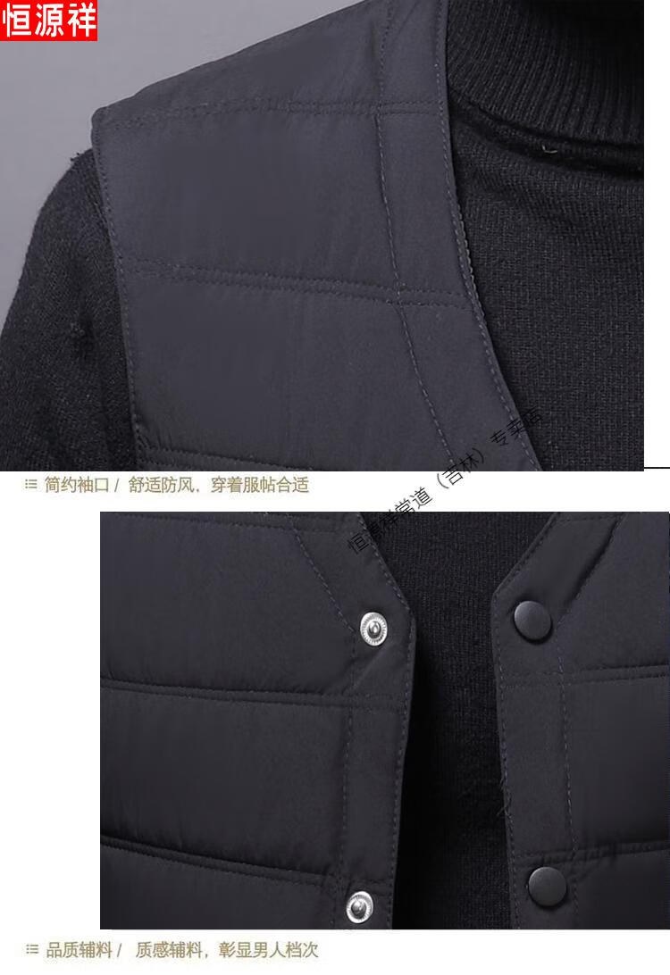 Hengyuanxiang autumn and winter down cotton vest men's close-fitting inner wear for middle-aged and elderly people, vest, vest, warm vest, cotton jacket, black 3XL recommended 140-155 Jin Jin equals 0.5 kg