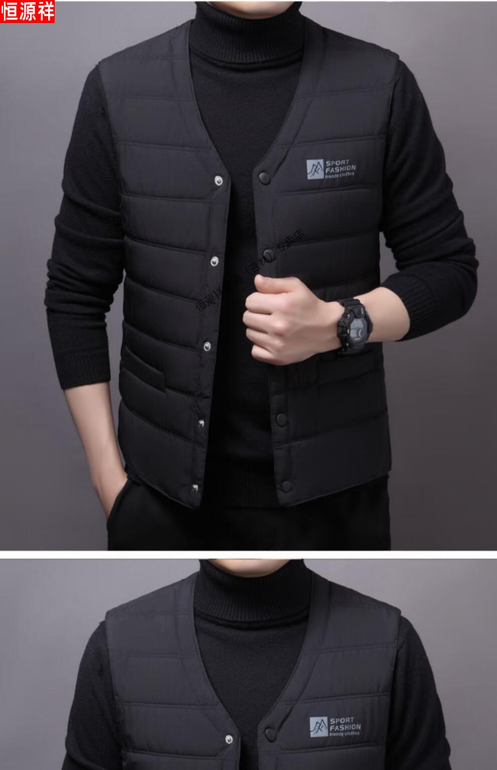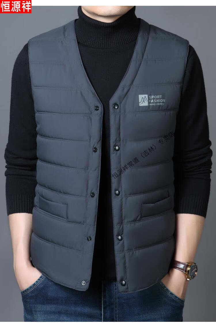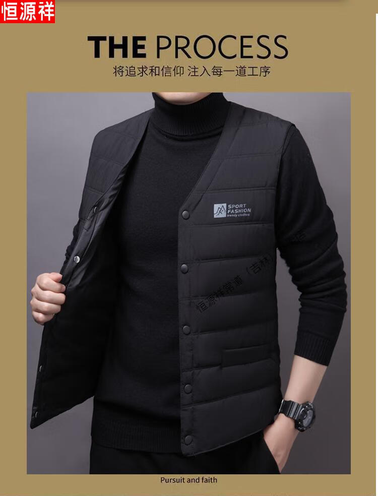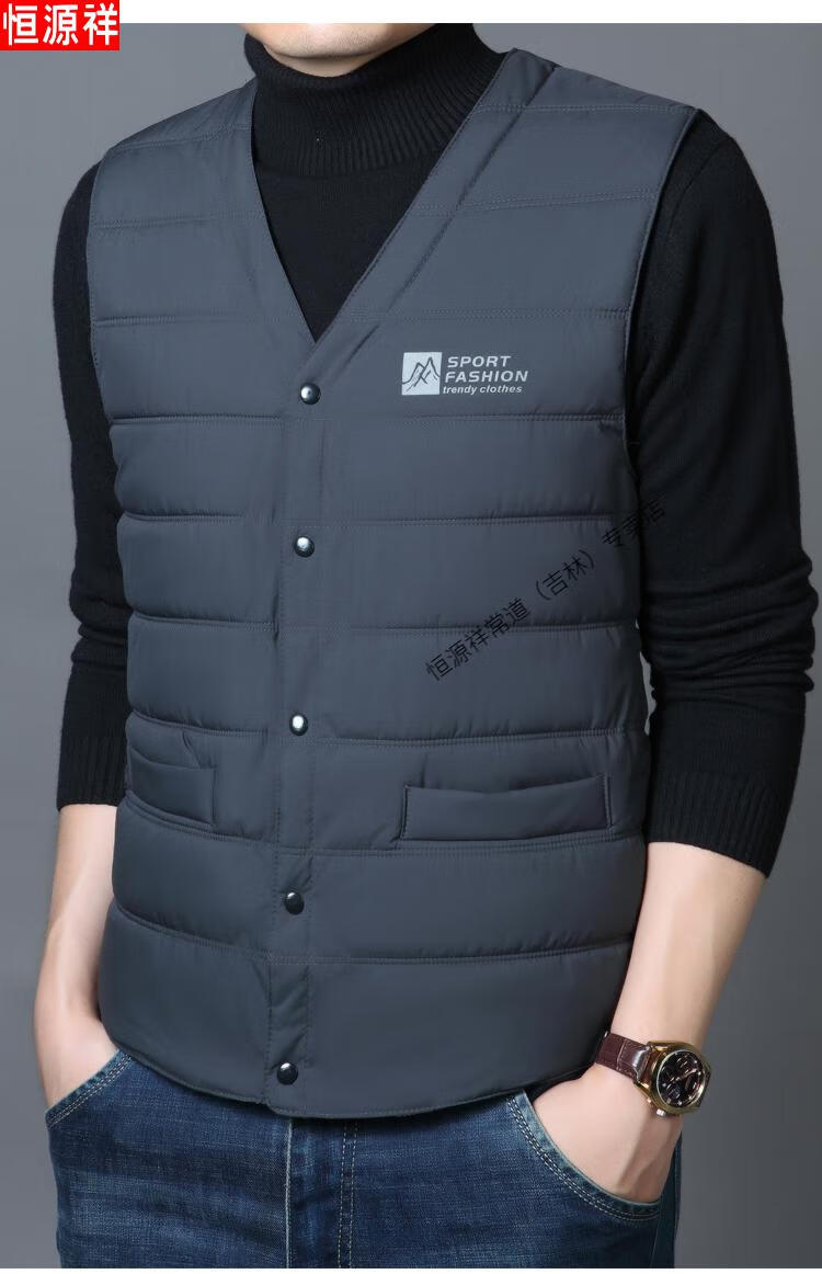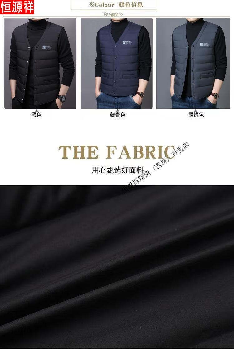 Hengyuanxiang autumn and winter down cotton vest men's close-fitting inner wear for middle-aged and elderly people, vest, vest, warm vest, cotton jacket, black 3XL recommended 140-155 Jin Jin equals 0.5 kg