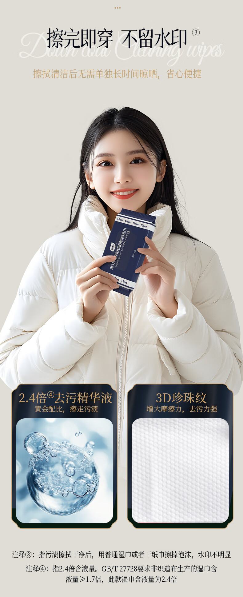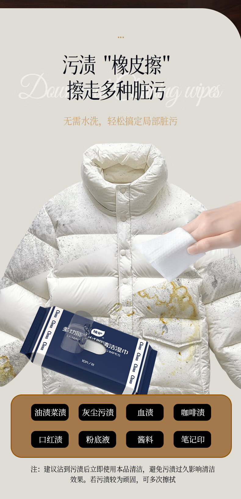 Plant protection multifunctional down jacket cleaning portable wet wipes easy decontamination wet wipes no-wash down jacket early adopter pack 1 pack*10 pieces/pack