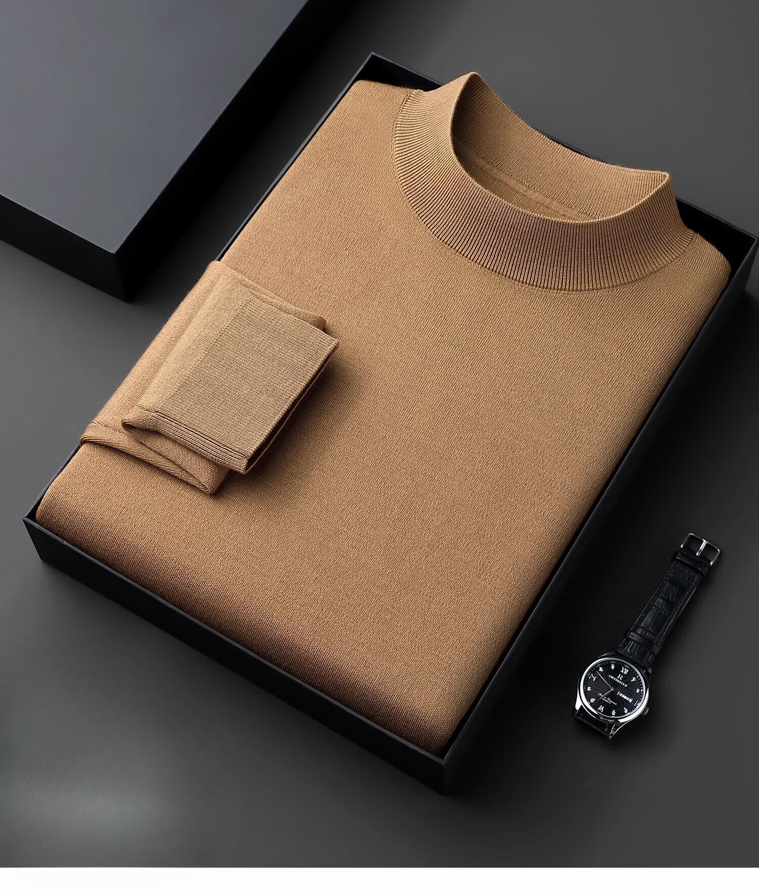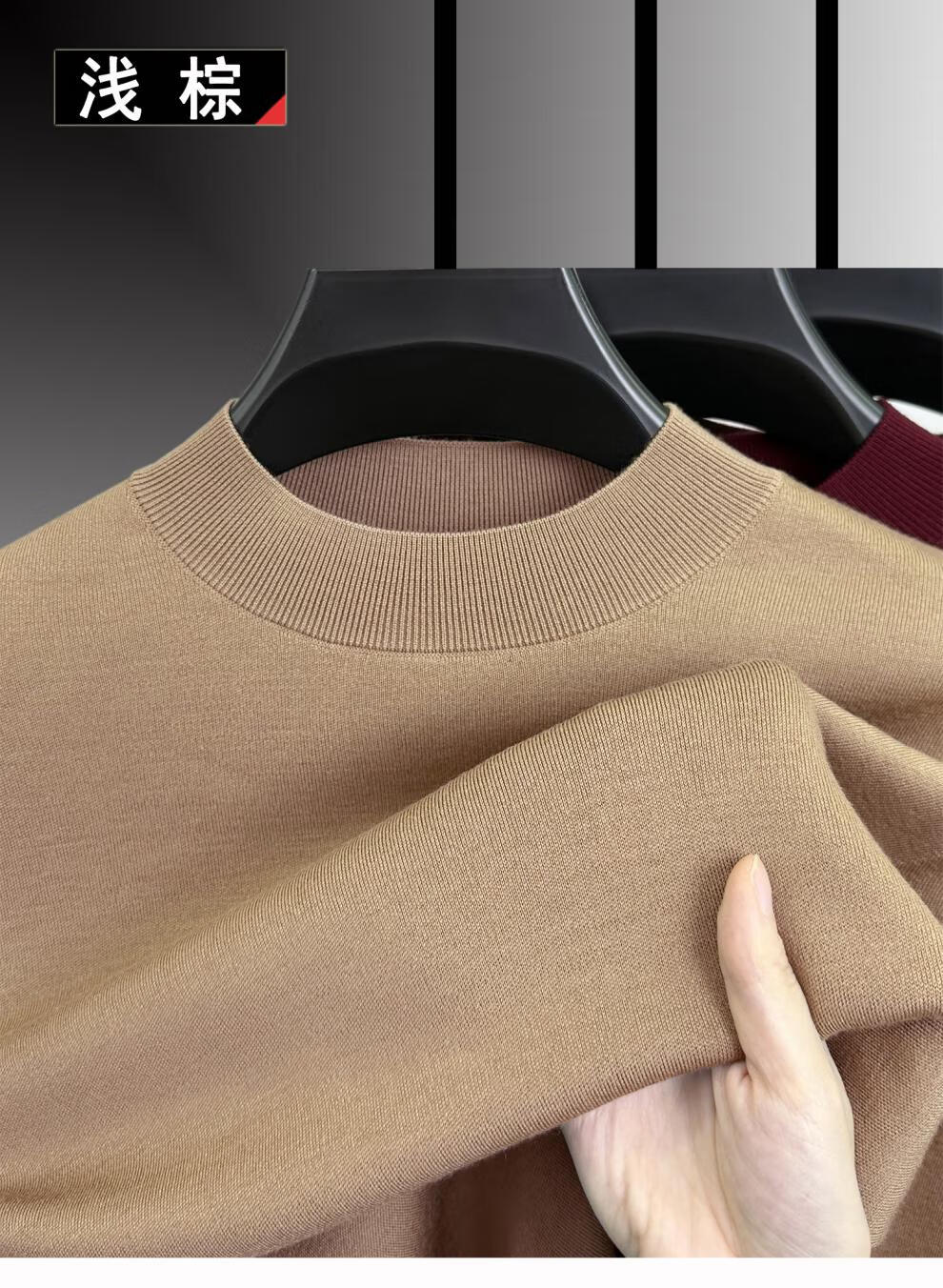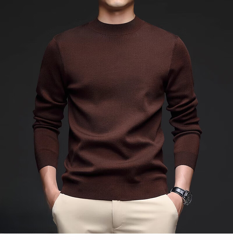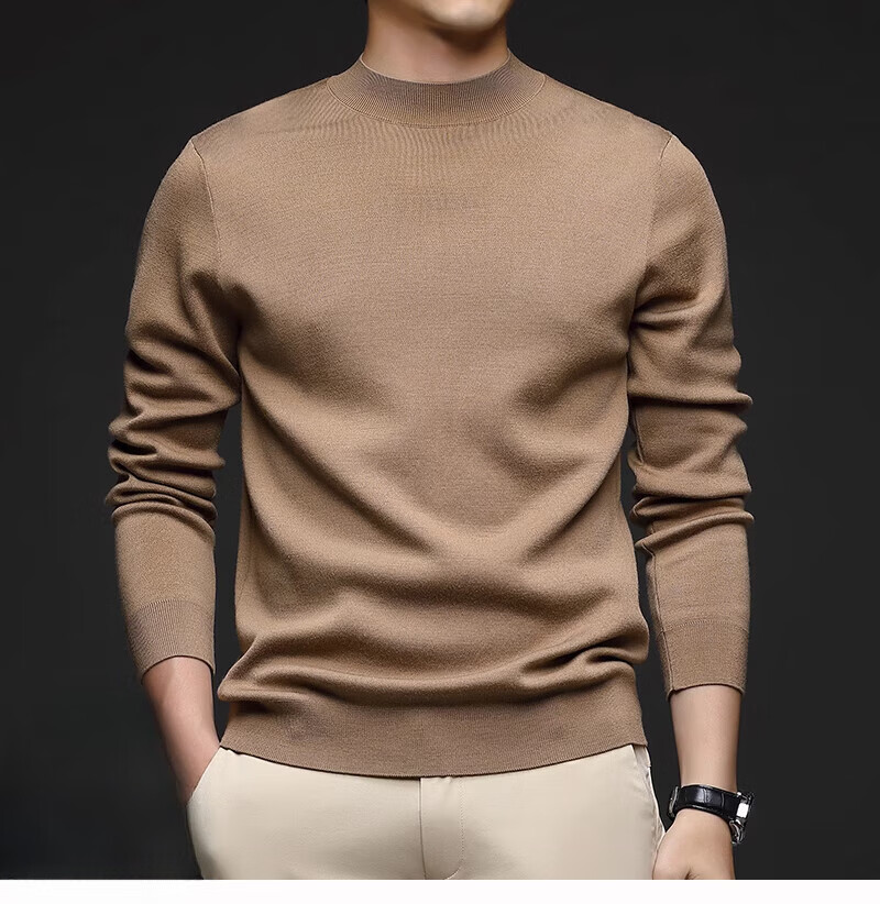ROMON worsted sheep sweater autumn and winter new half turtleneck sweater for middle-aged men sheep wool thickened bottoming shirt for men light brown 165/M 95 to 115Jin Jin is equal to 0.5 kg