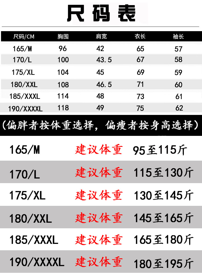China (cm) 165 / 88-90 170 / 96-98 175 / 108-110 180 / 118-122 185 / 126-130