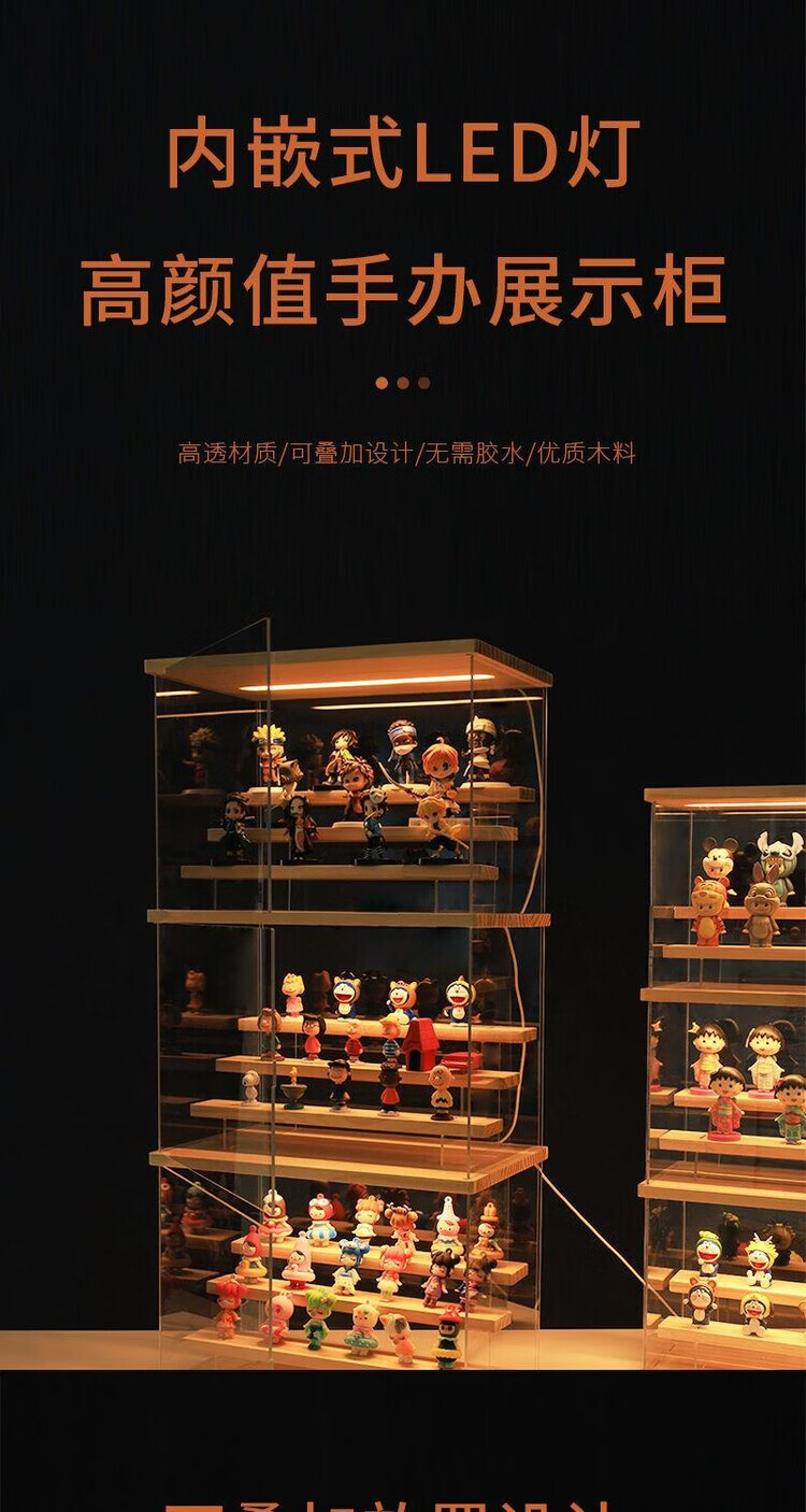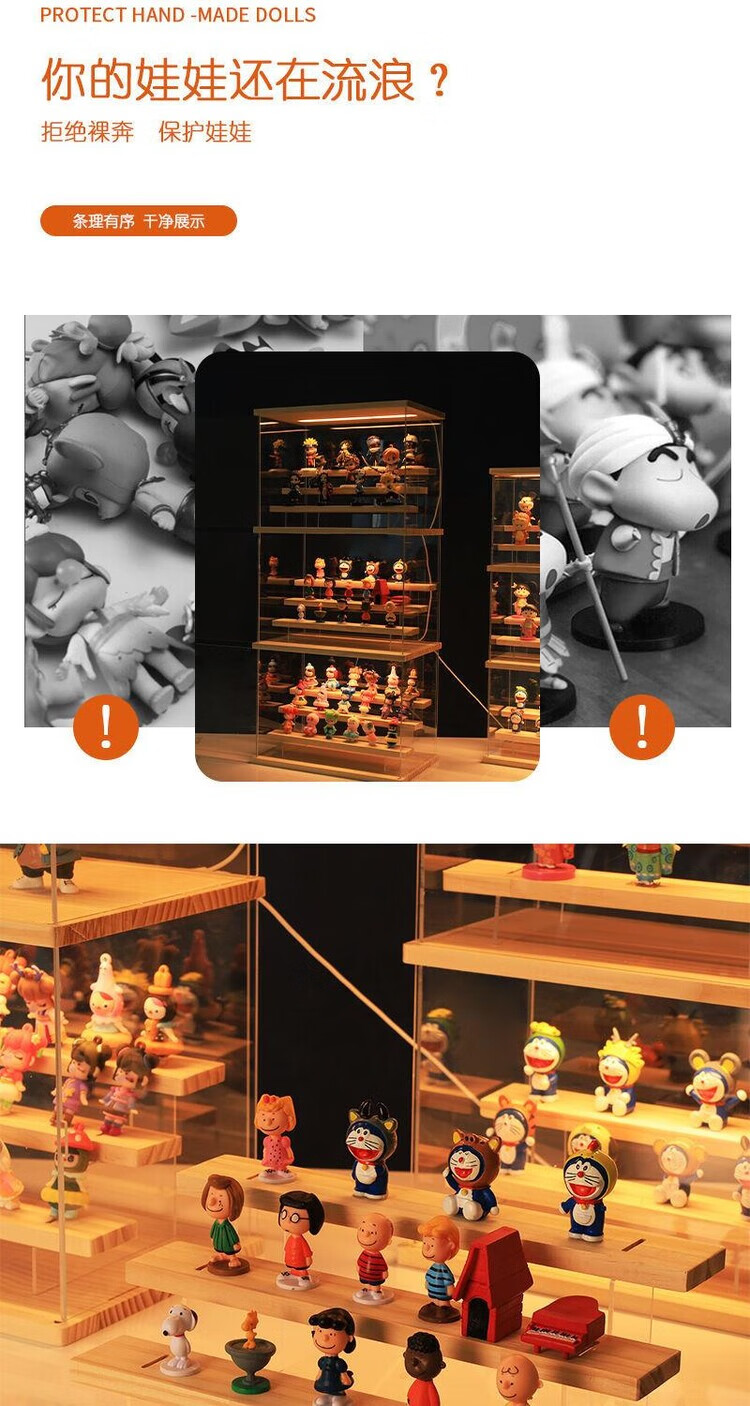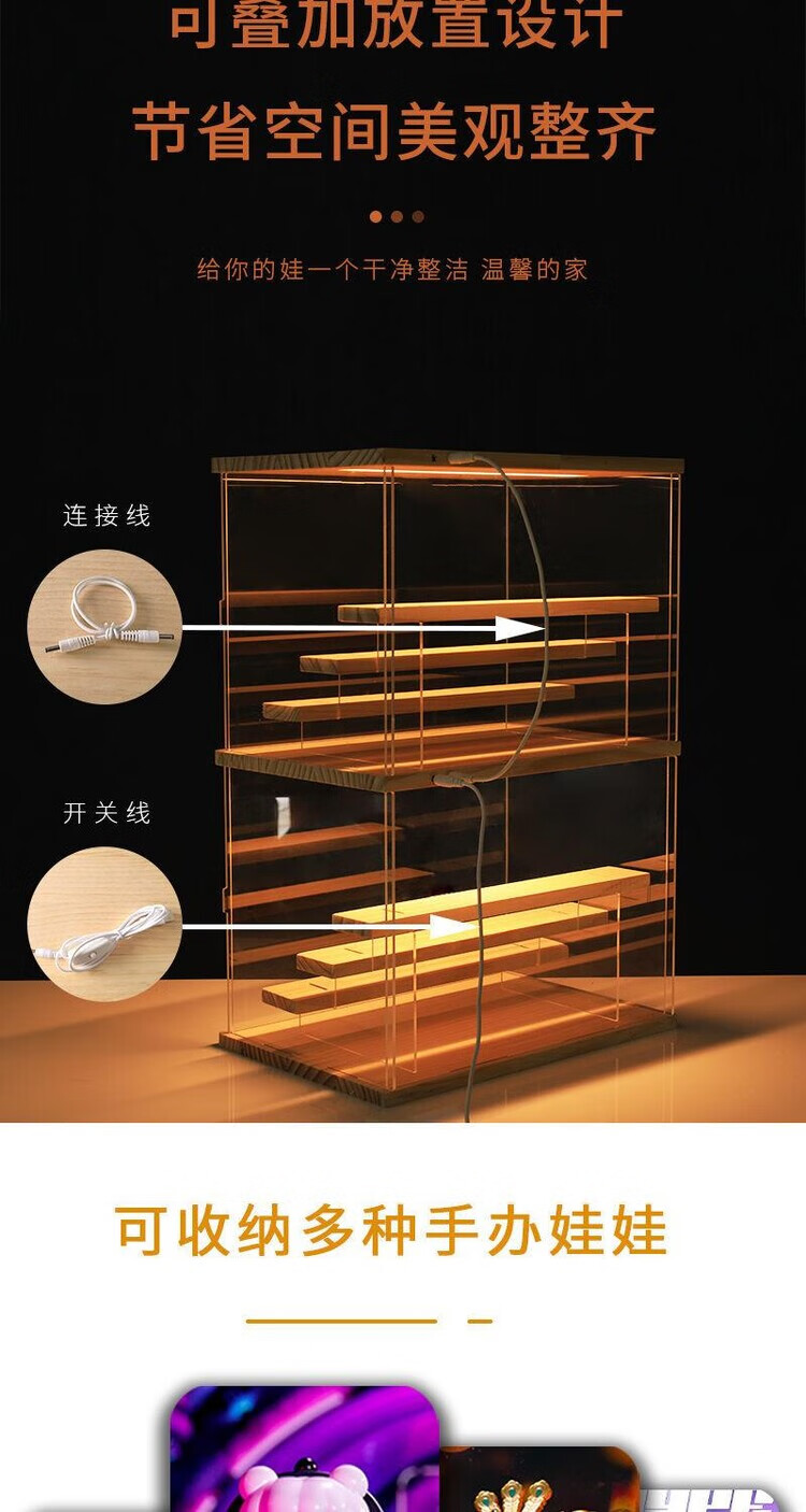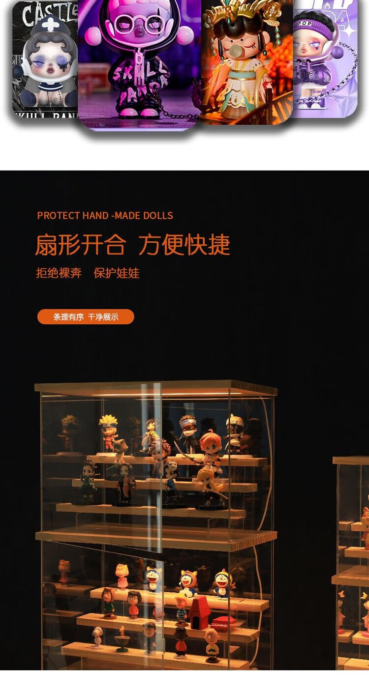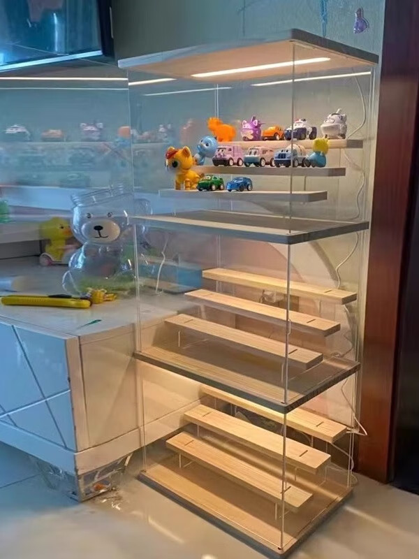 Blind box display stand acrylic bubble mart display box desktop with light dustproof storage hand cabinet display cabinet large 4 steps