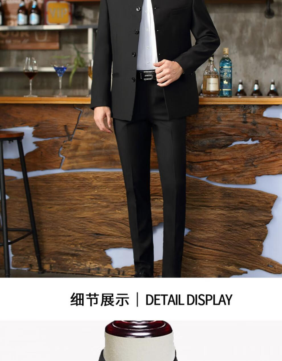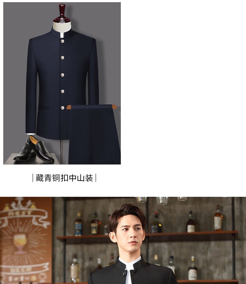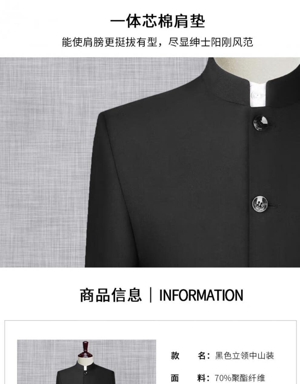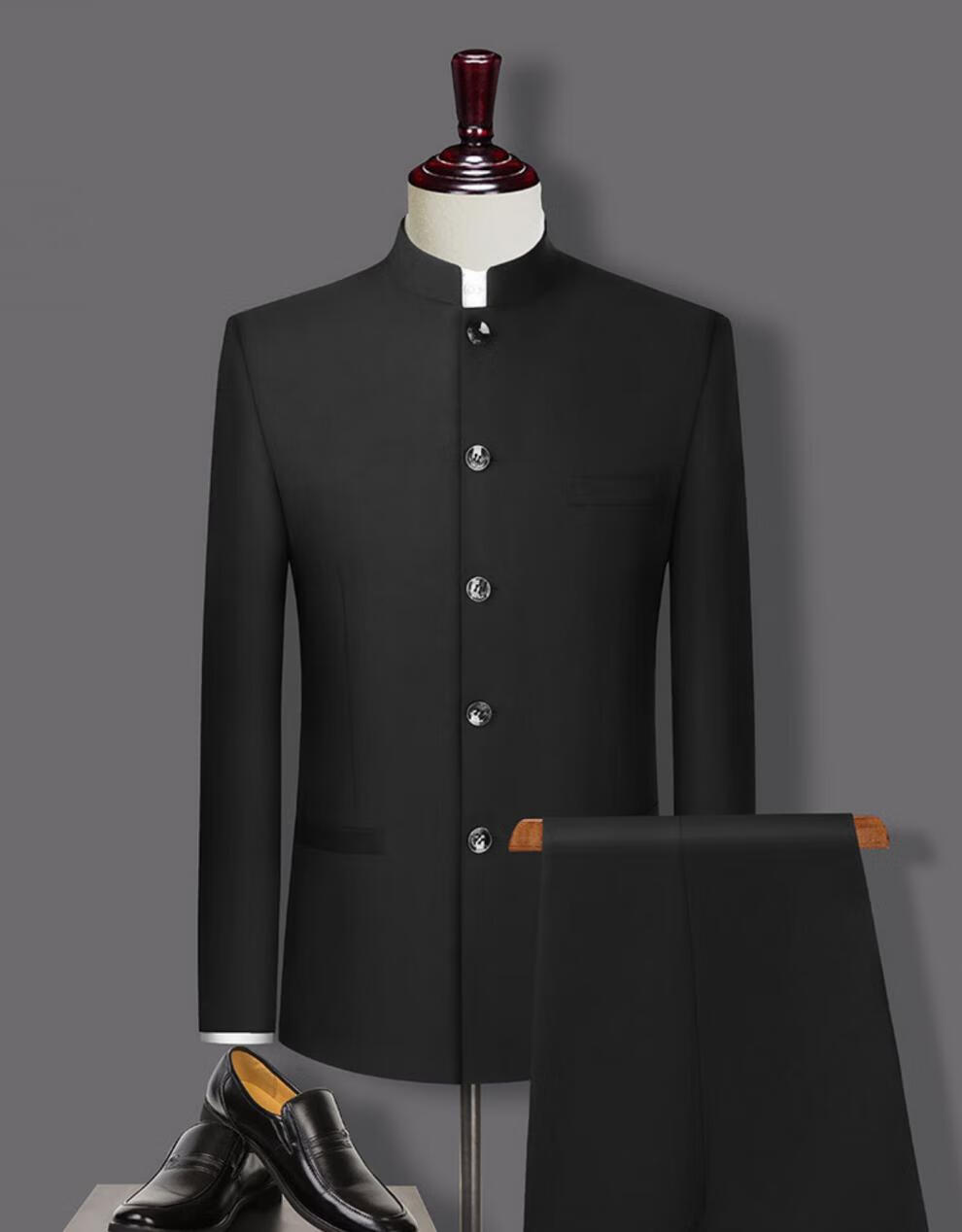 Hengyuanxiang Chinese tunic suit men's slim suit Chinese stand collar Chinese style Chinese suit wedding banquet groom and groomsmen dress black 160 weight 90-100Jin Jin is equal to about 0.5 kg