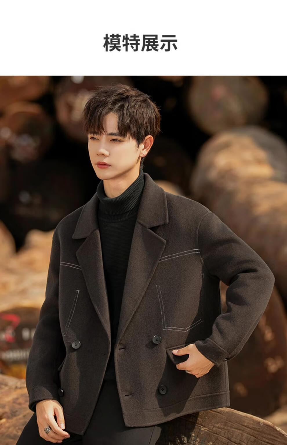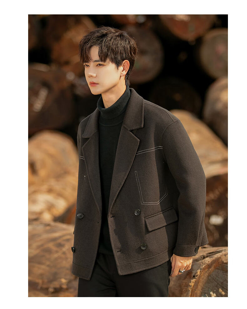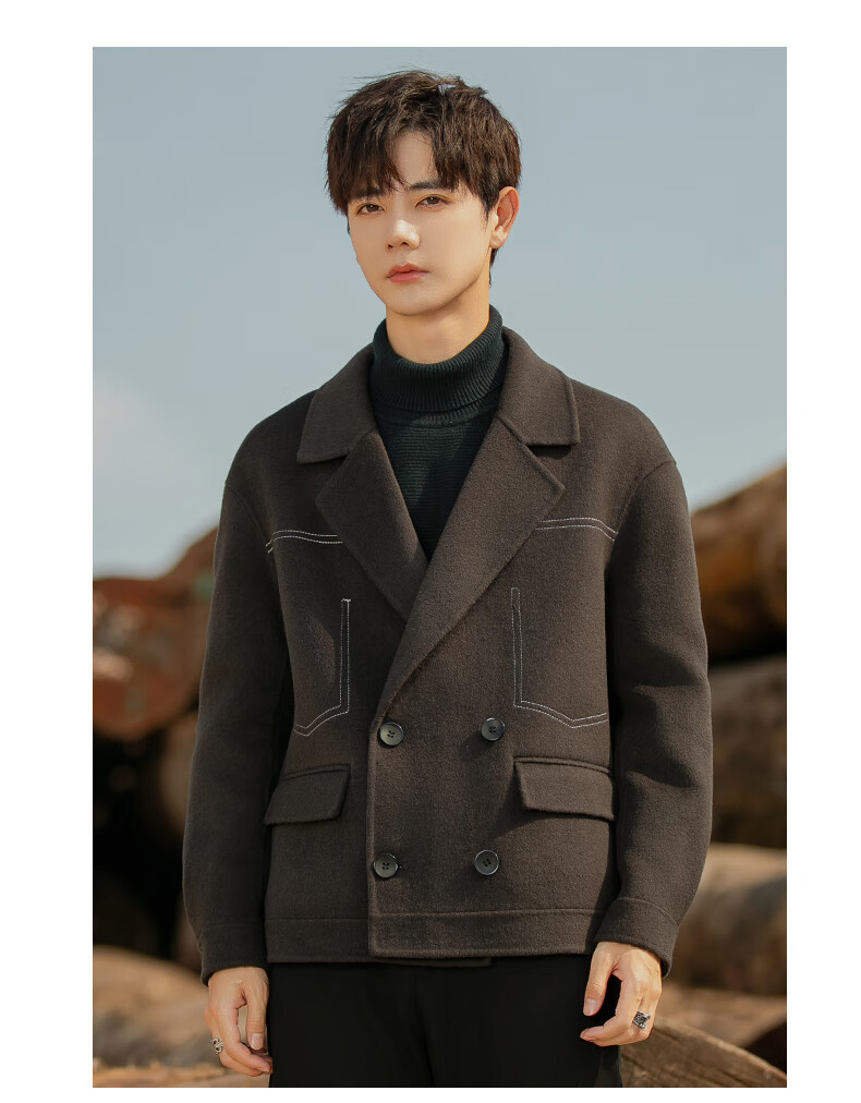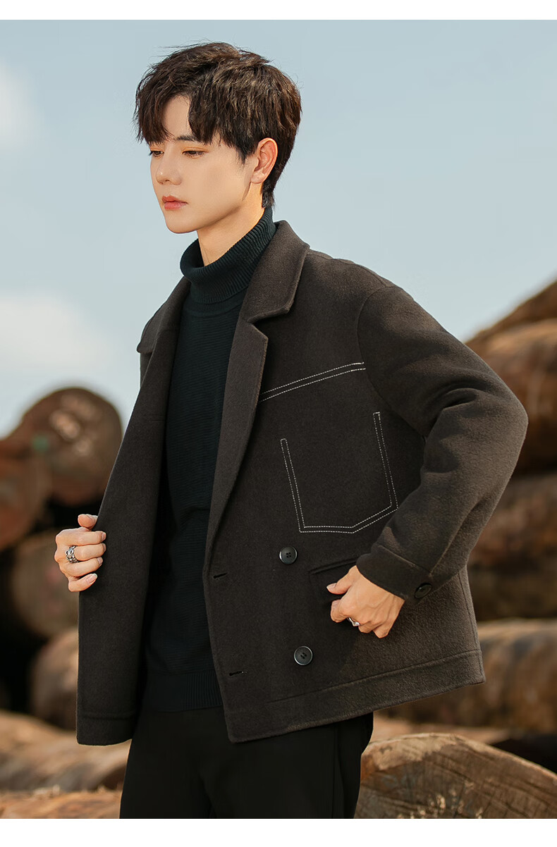 ROMON top-stitched woolen jacket men's coat autumn and winter 2025 new double-sided sheep short woolen coat graphite coffee XL