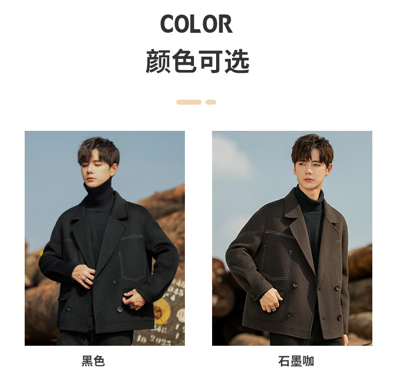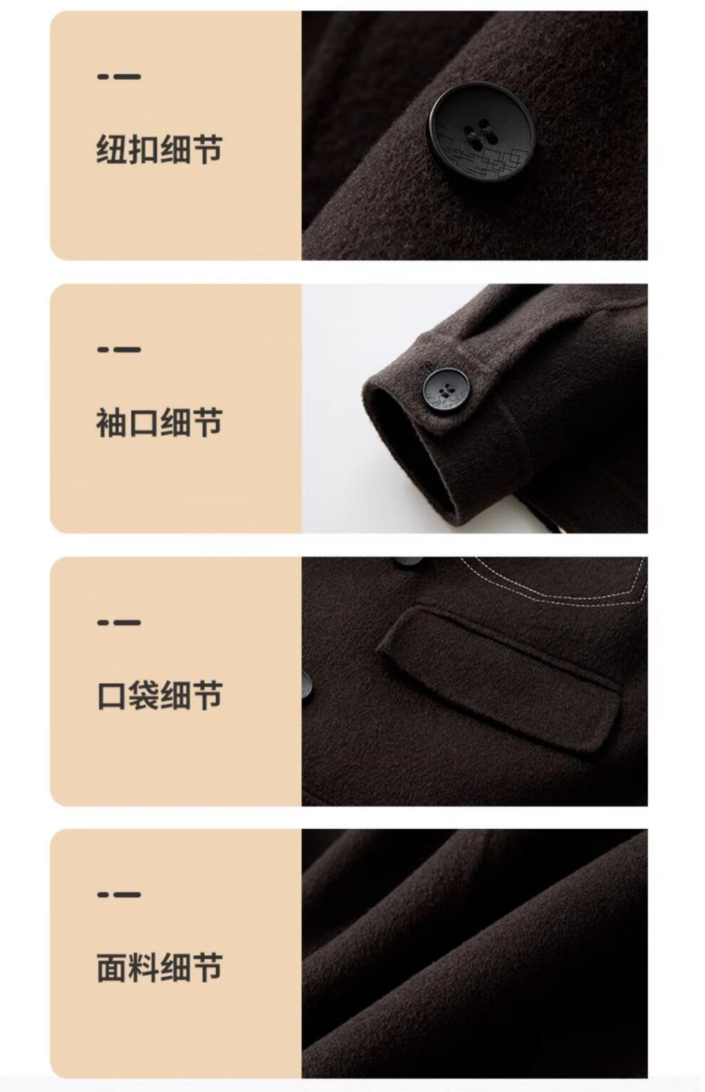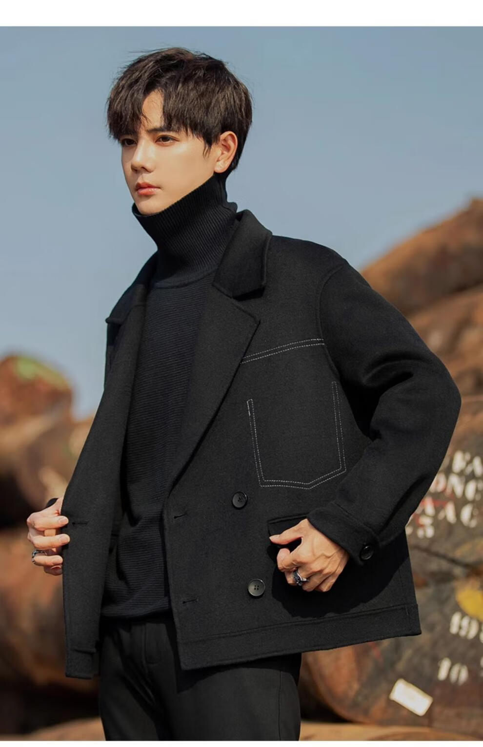 ROMON top-stitched woolen jacket men's coat autumn and winter 2025 new double-sided sheep short woolen coat graphite coffee XL