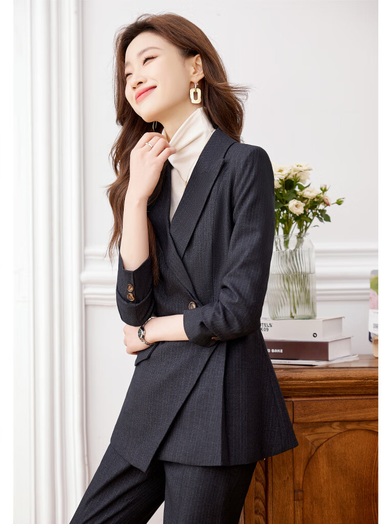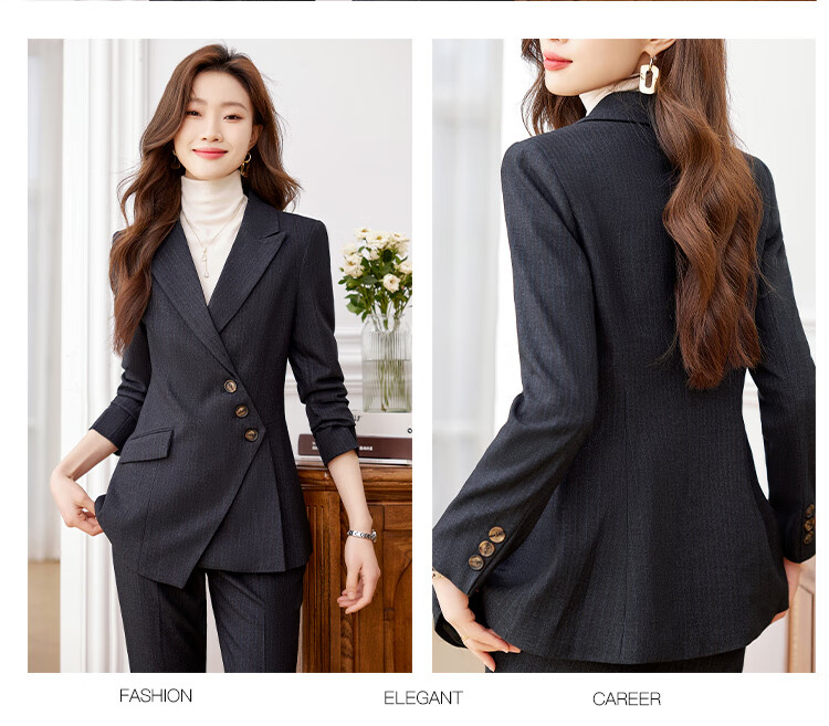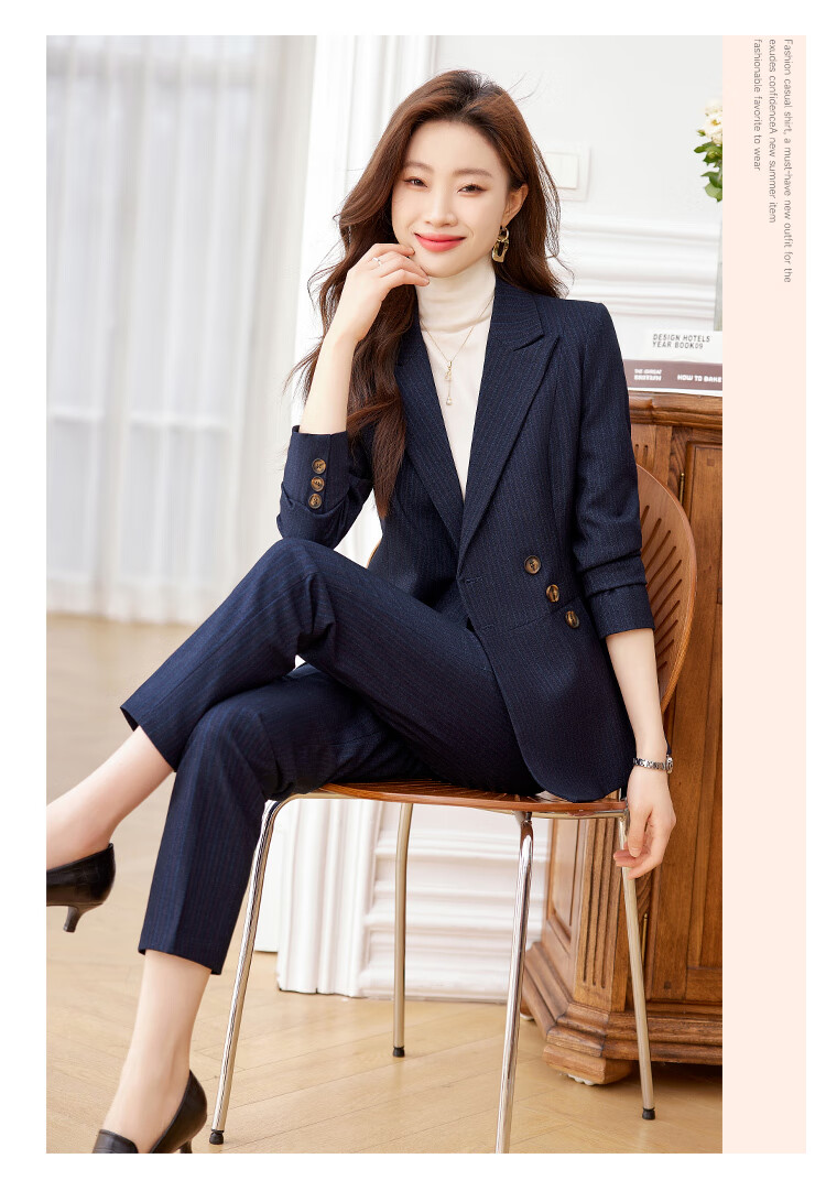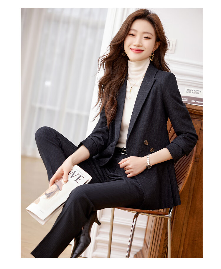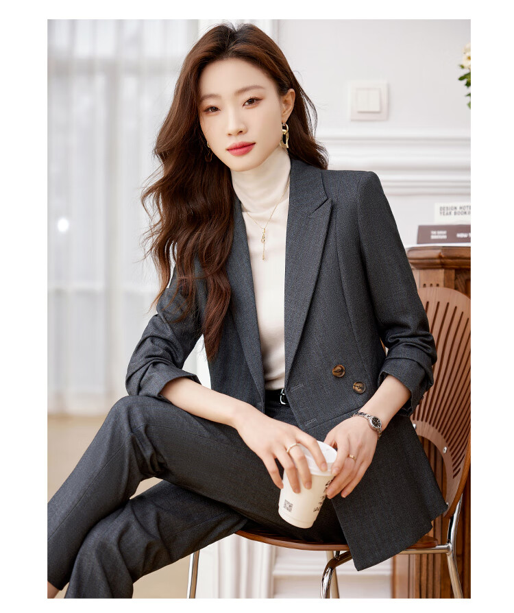 ROMON high-end professional suit women's formal wear 2025 new autumn and winter temperament goddess hotel manager work clothes suit black suit + black trousers + white sweater L