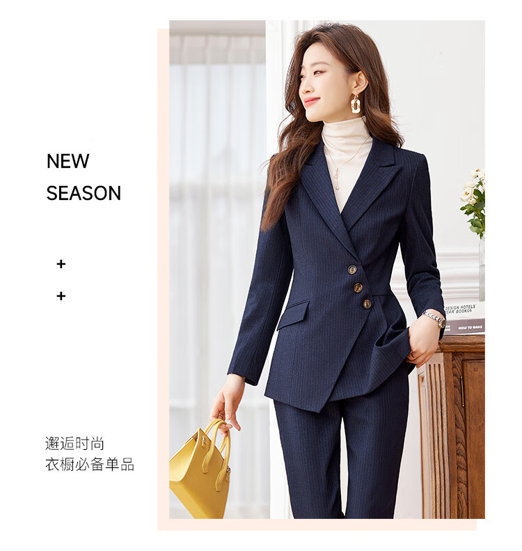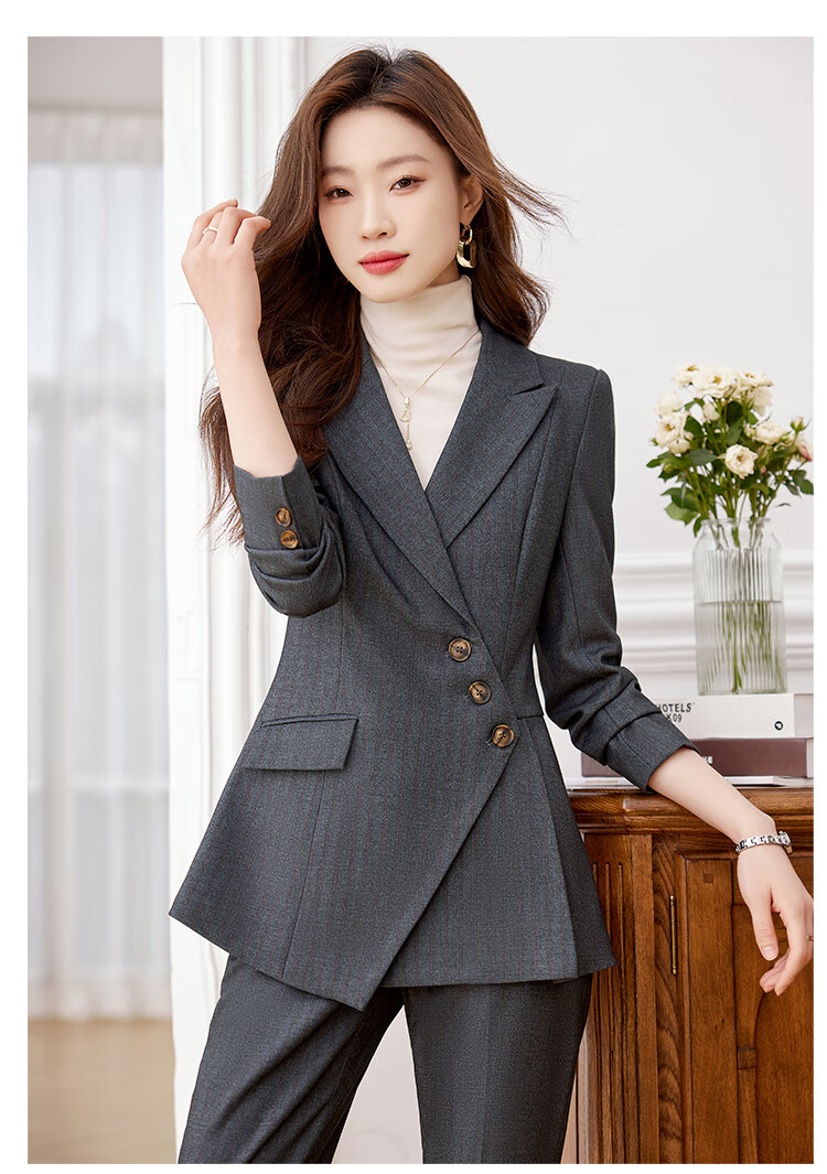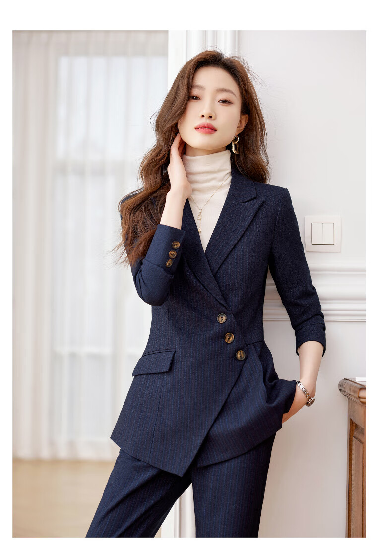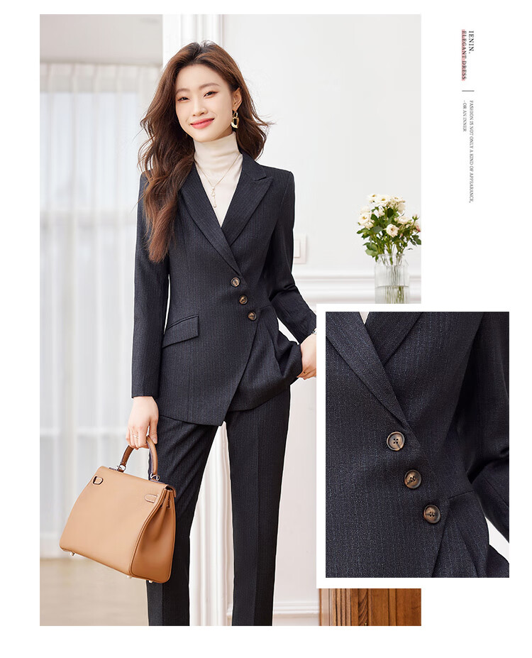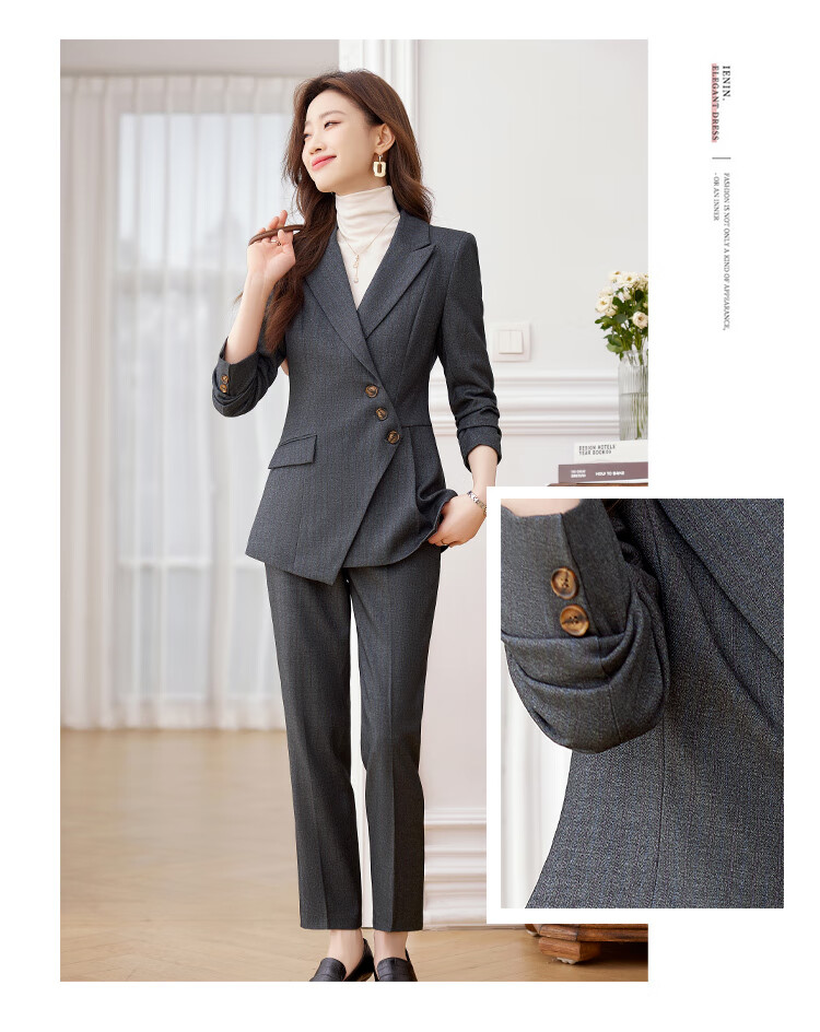 ROMON high-end professional suit women's formal wear 2025 new autumn and winter temperament goddess hotel manager work clothes suit black suit + black trousers + white sweater L