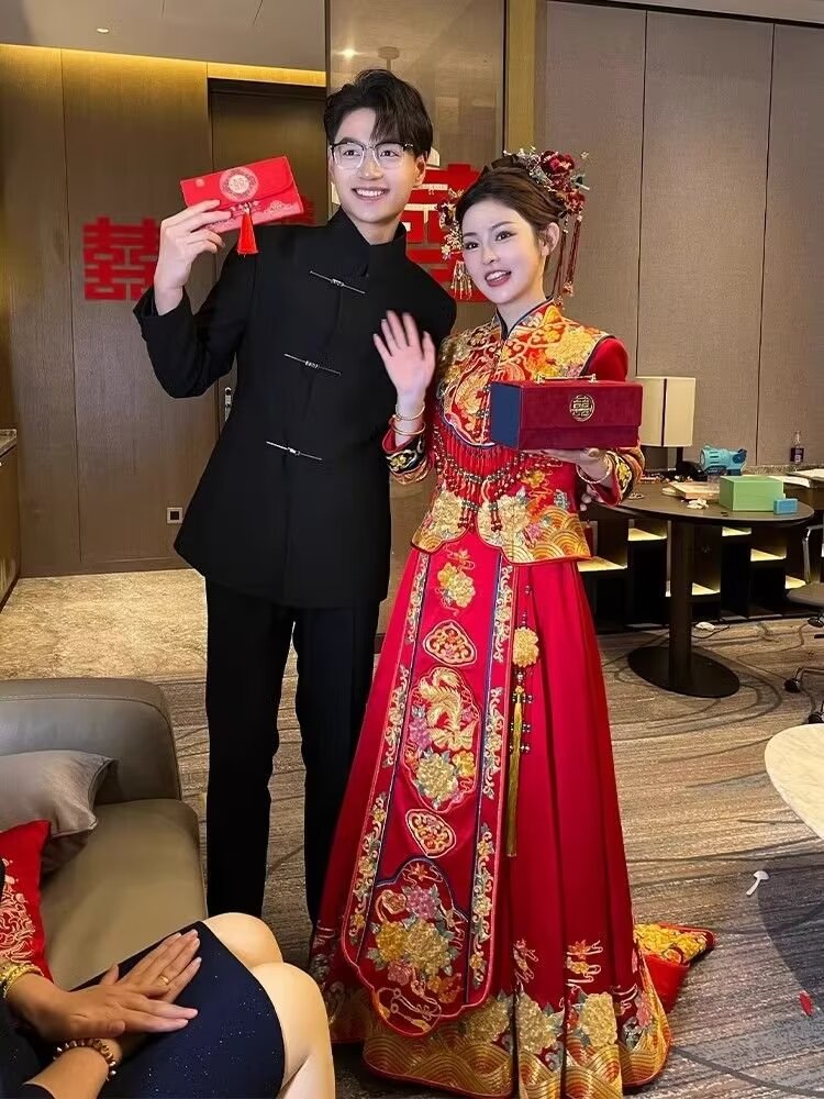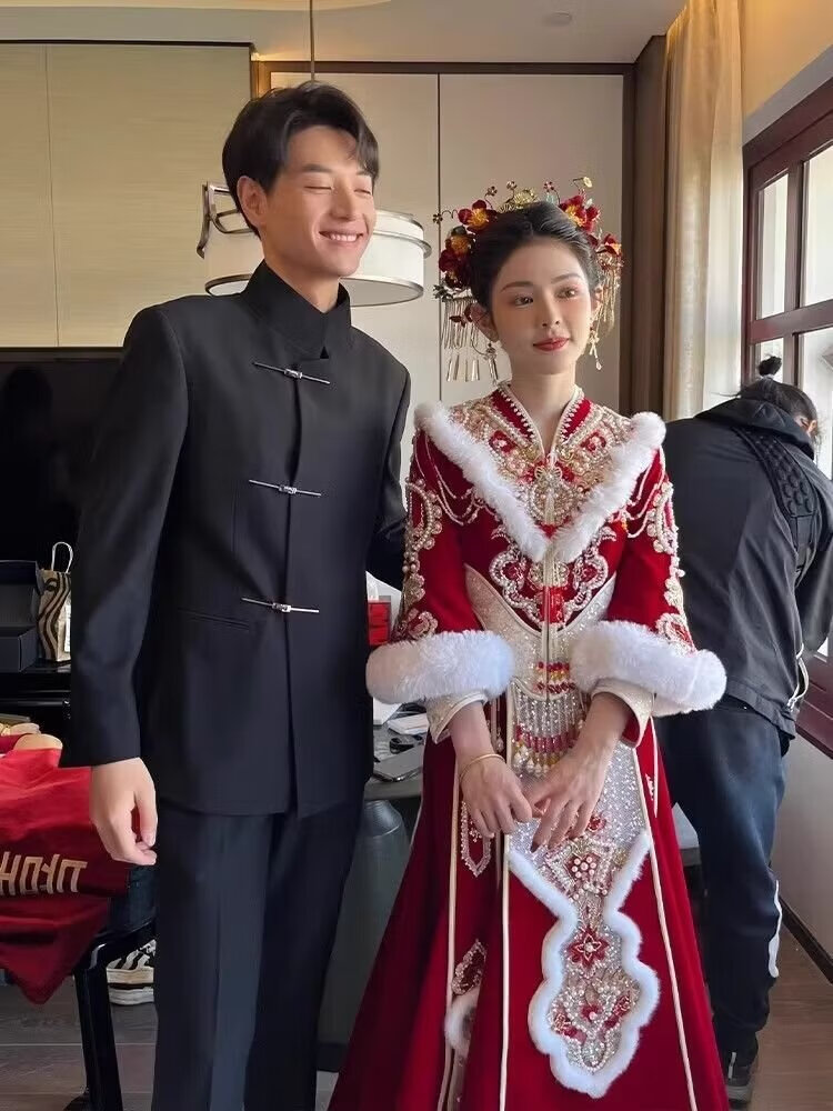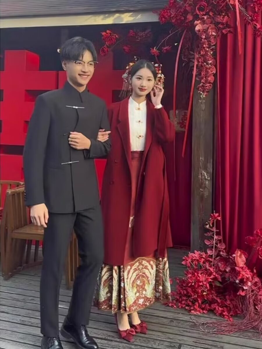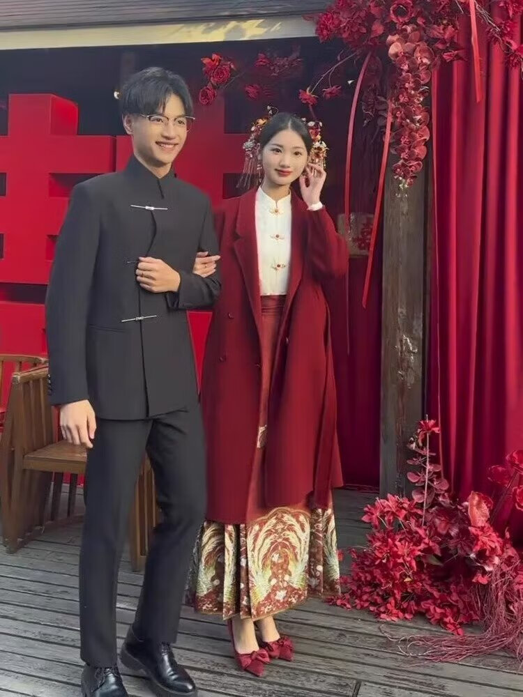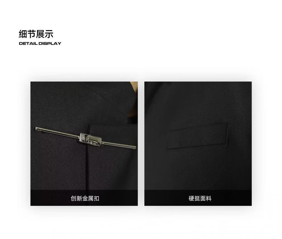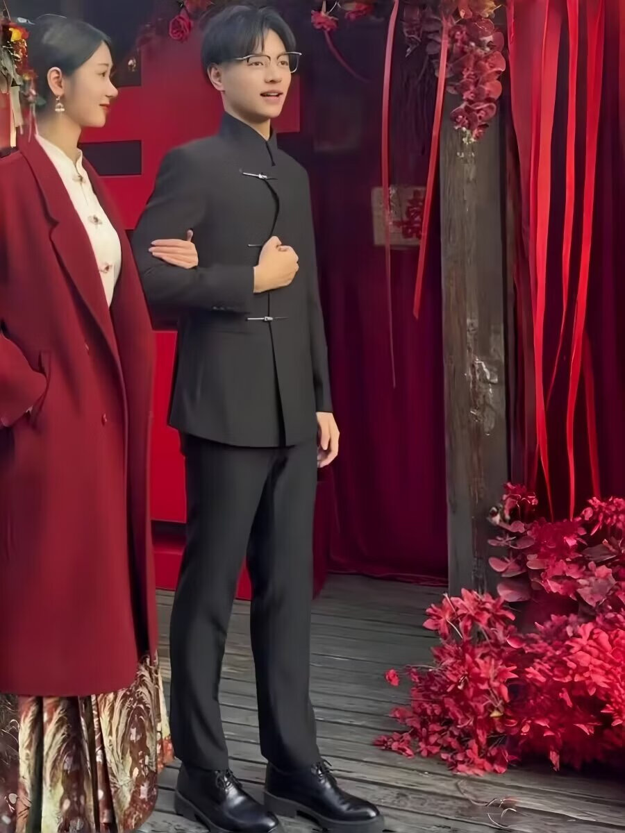 FANDISS Wedding Engagement Dress Casual Suit Men's Jacket Autumn New Chinese Tunic Suit Stand Collar Metal Button Suit Black - Top + Pants XL