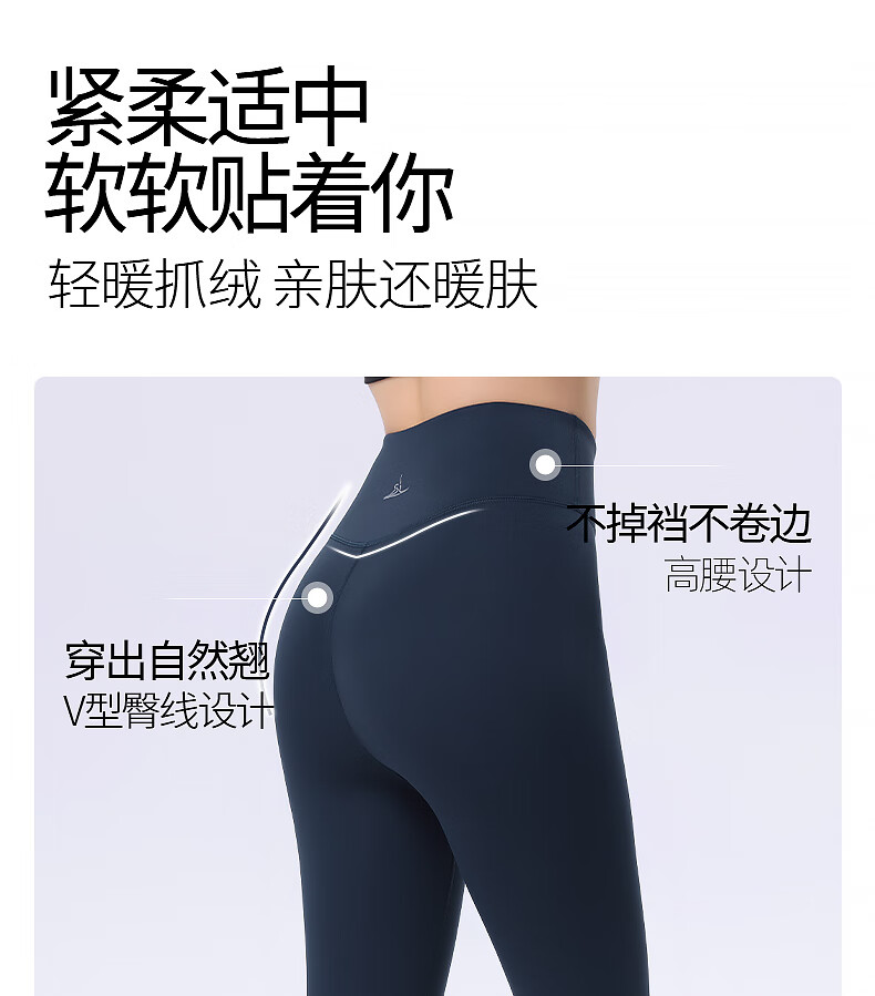 Vanmei fleece yoga pants women's running leggings autumn and winter comfortable and warm tight-fitting Pilates fitness clothes deep sea blue L
