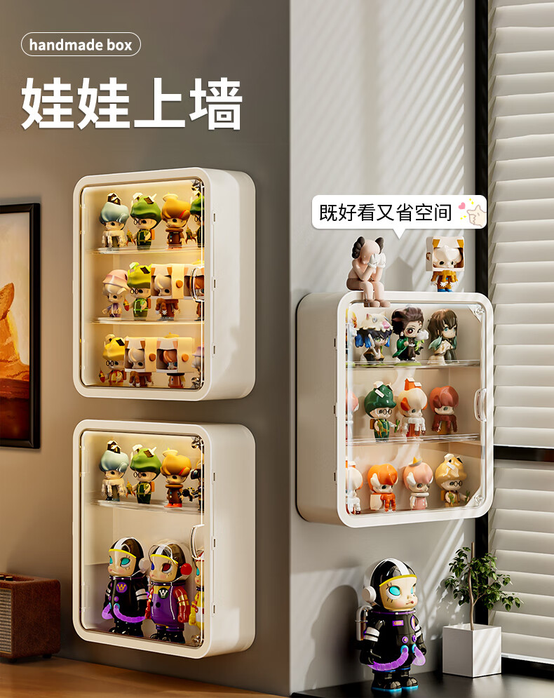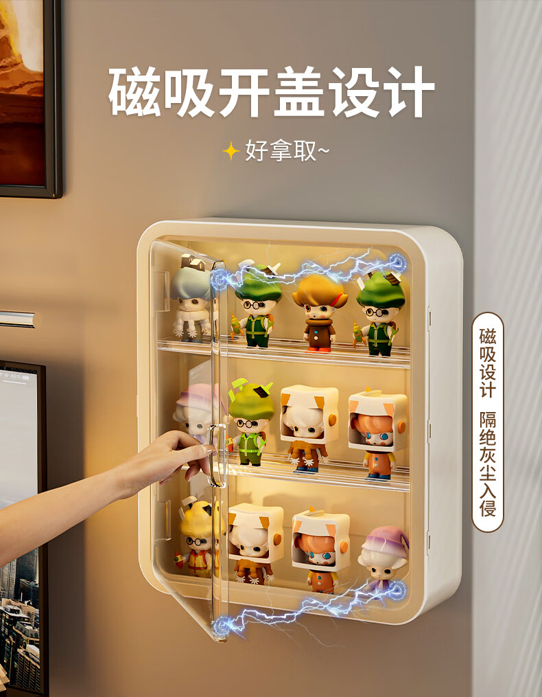 KAMAN blind box storage display rack wall-mounted Bubble Mart display box display wall storage rack large-capacity hand cabinet large white/four layers 1
