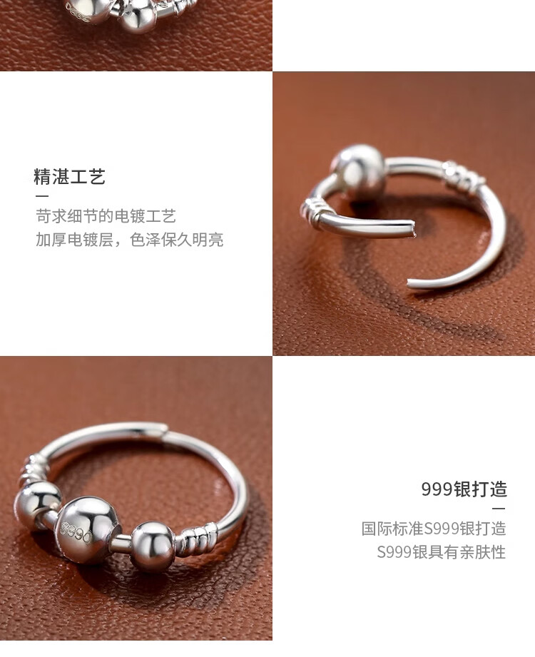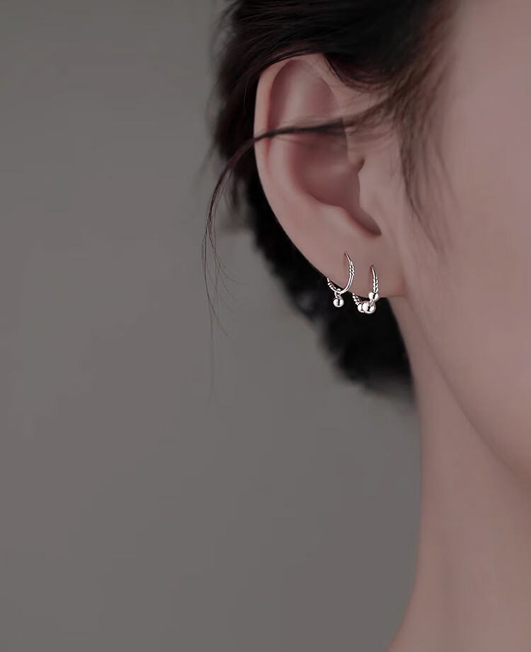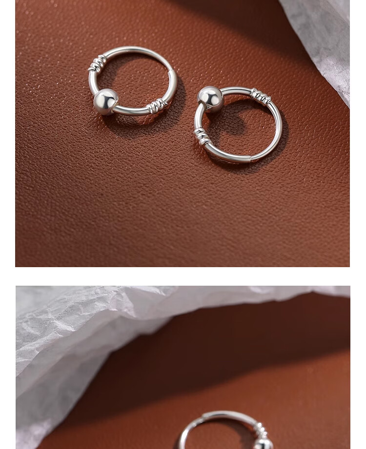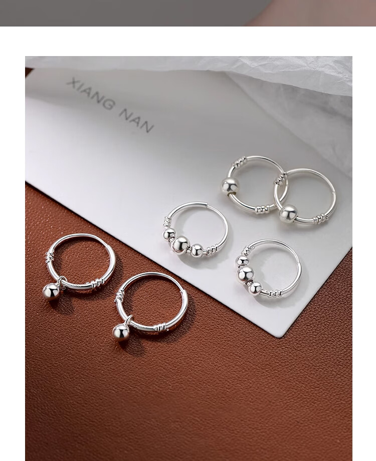 Qi Xiaomi Pure 999 Pure Silver Ear Hole Earrings Women's Earrings 2025 New Earrings for Sleeping No-Removal Ear Bone Nails Earrings 999 Silver Single Round Bead Earrings (Two Prices)