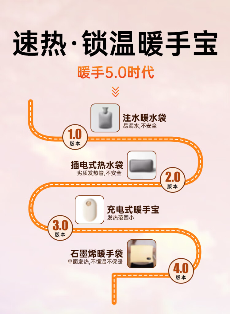 Albasha hot water bottle hand warmer gemstone inkjet hand warmer warm water bottle artifact warm baby charging girl birthday Christmas gift cloud powder-5k mAh 3 levels of long-lasting constant temperature