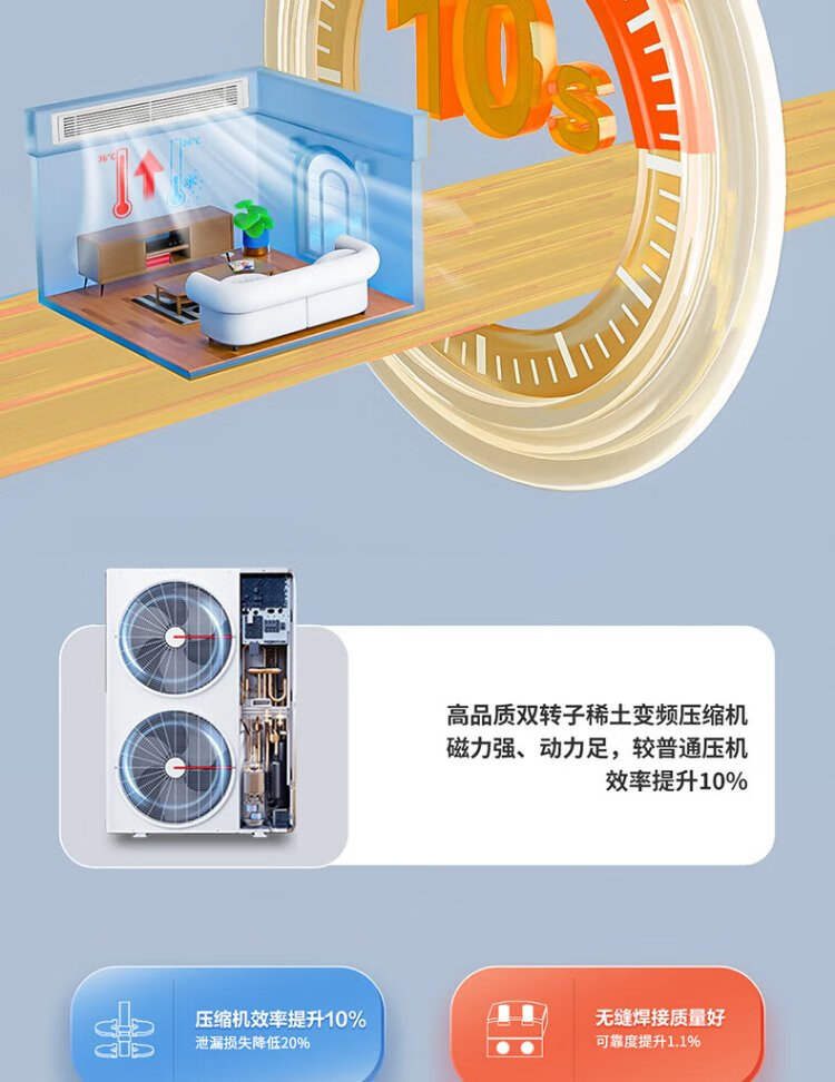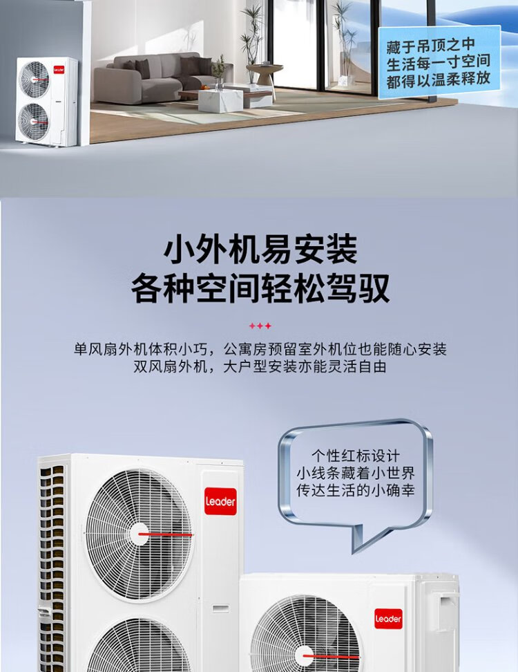 Leader produced by Haier Smart Home, 20% national subsidy, central air-conditioning duct machine, one to four, multi-connected, home living room, first-class energy efficiency, energy saving, whole house air conditioner unit 5 HP, first-class energy efficiency, one to four, three bedrooms and one living room 110