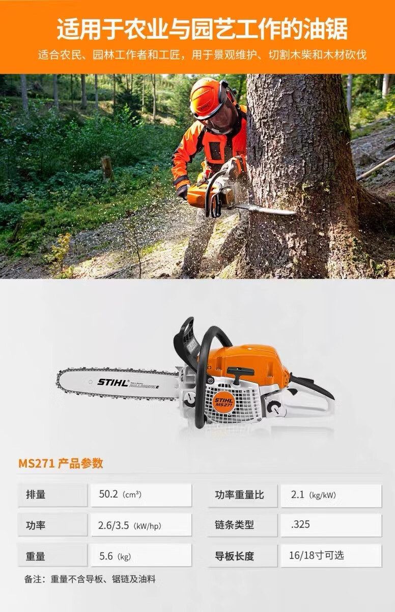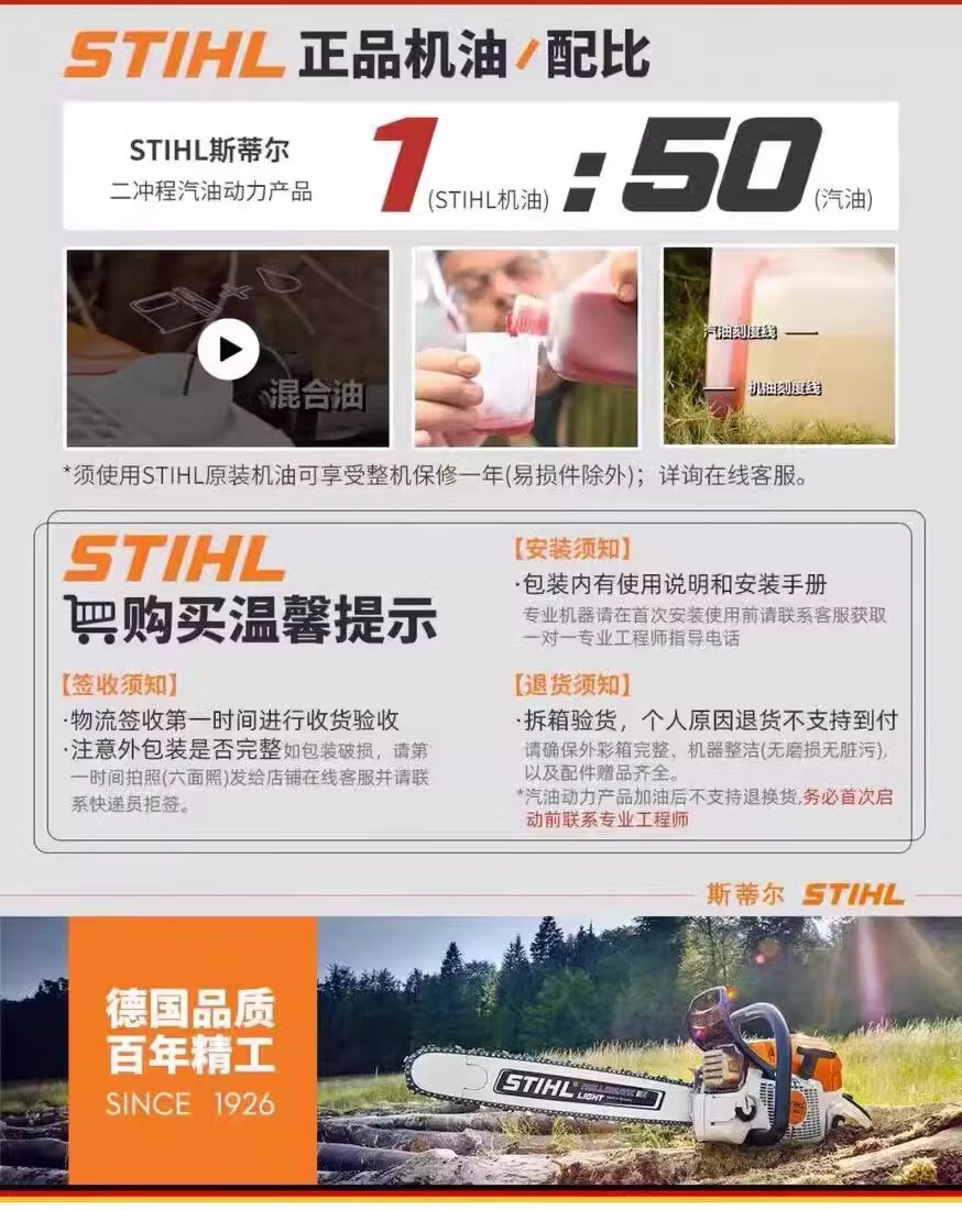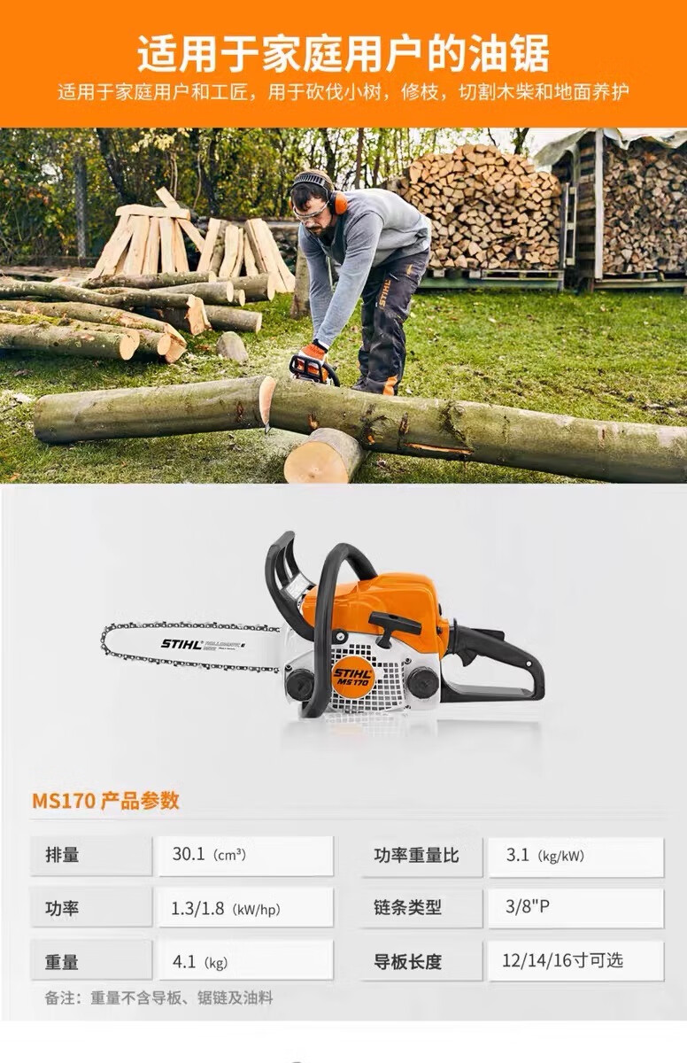 STIHL chain saw imported STIHL gasoline saw logging saw household garden fruit tree felling saw MS170/172/182 MS881 chain saw (25-inch guide chain)