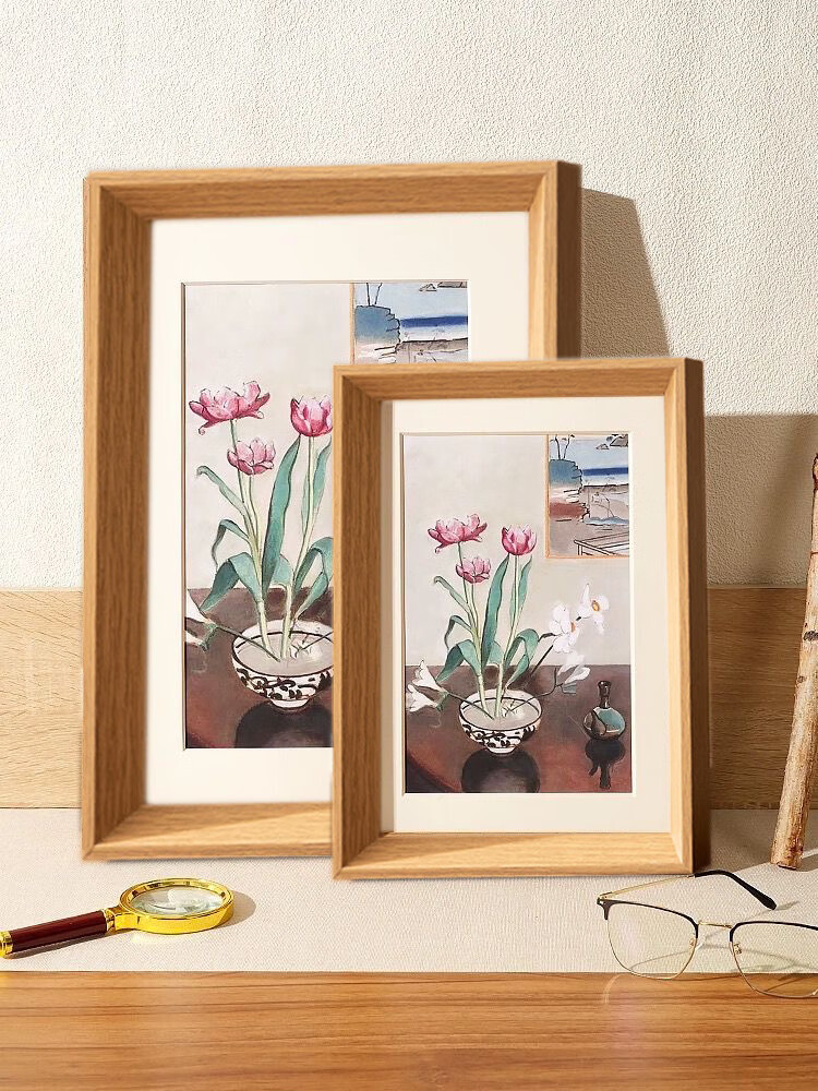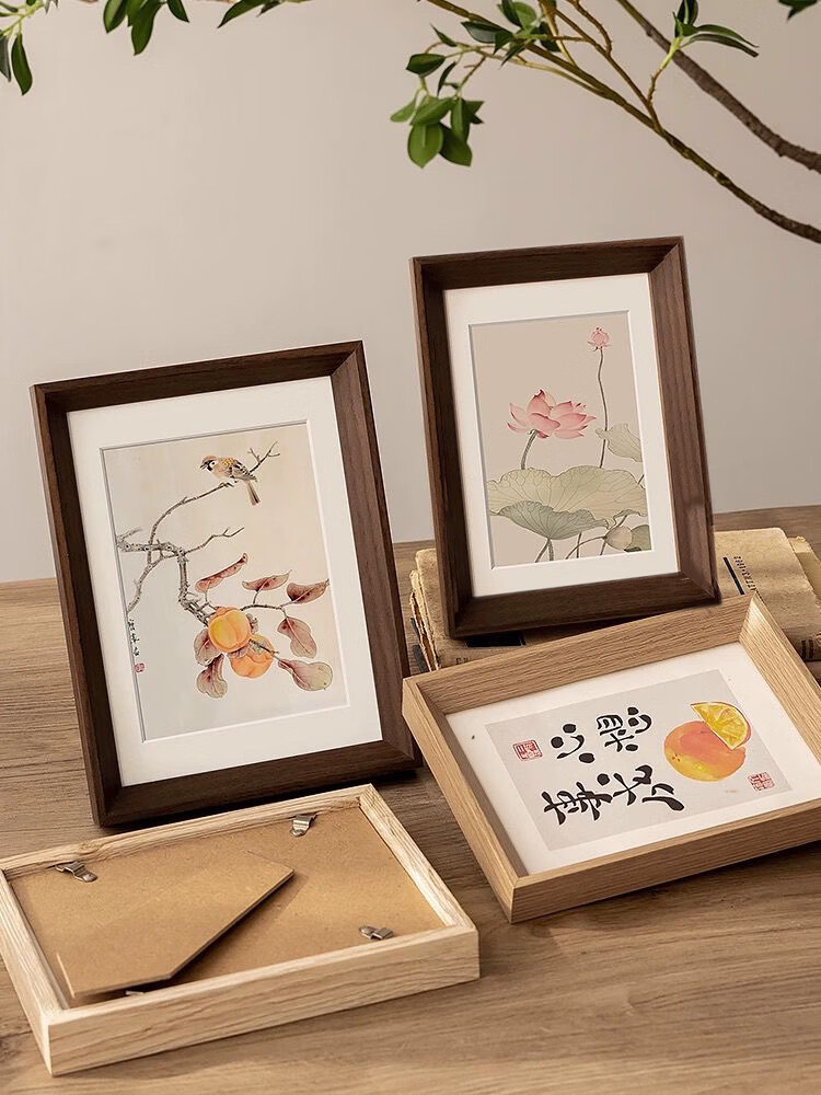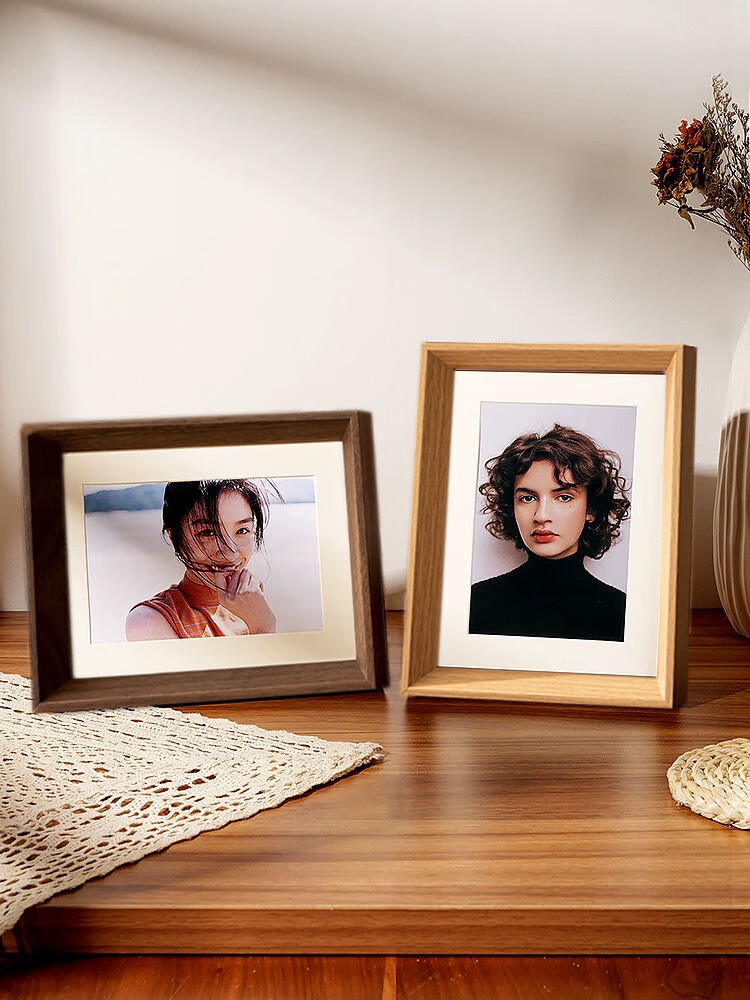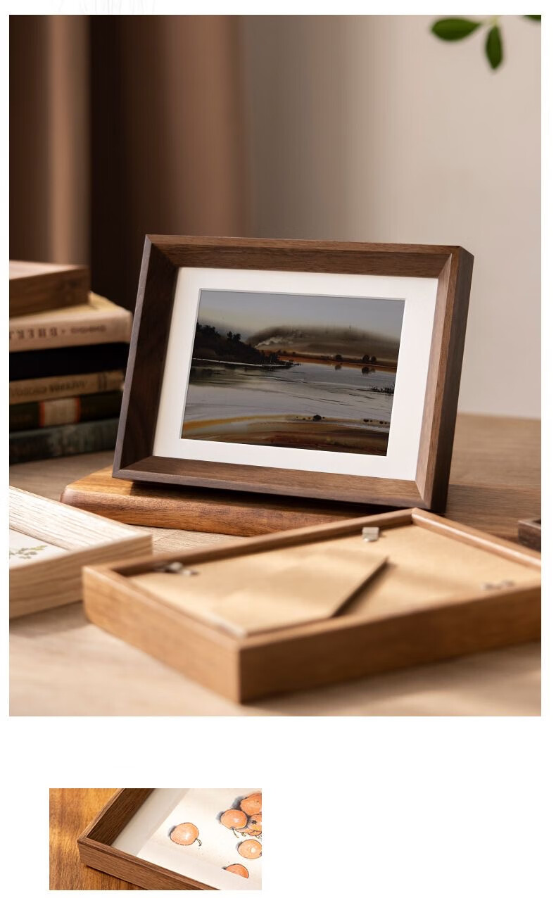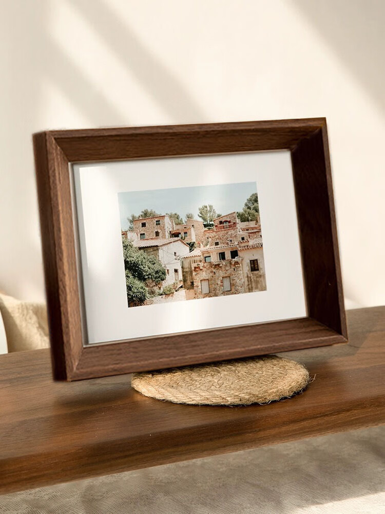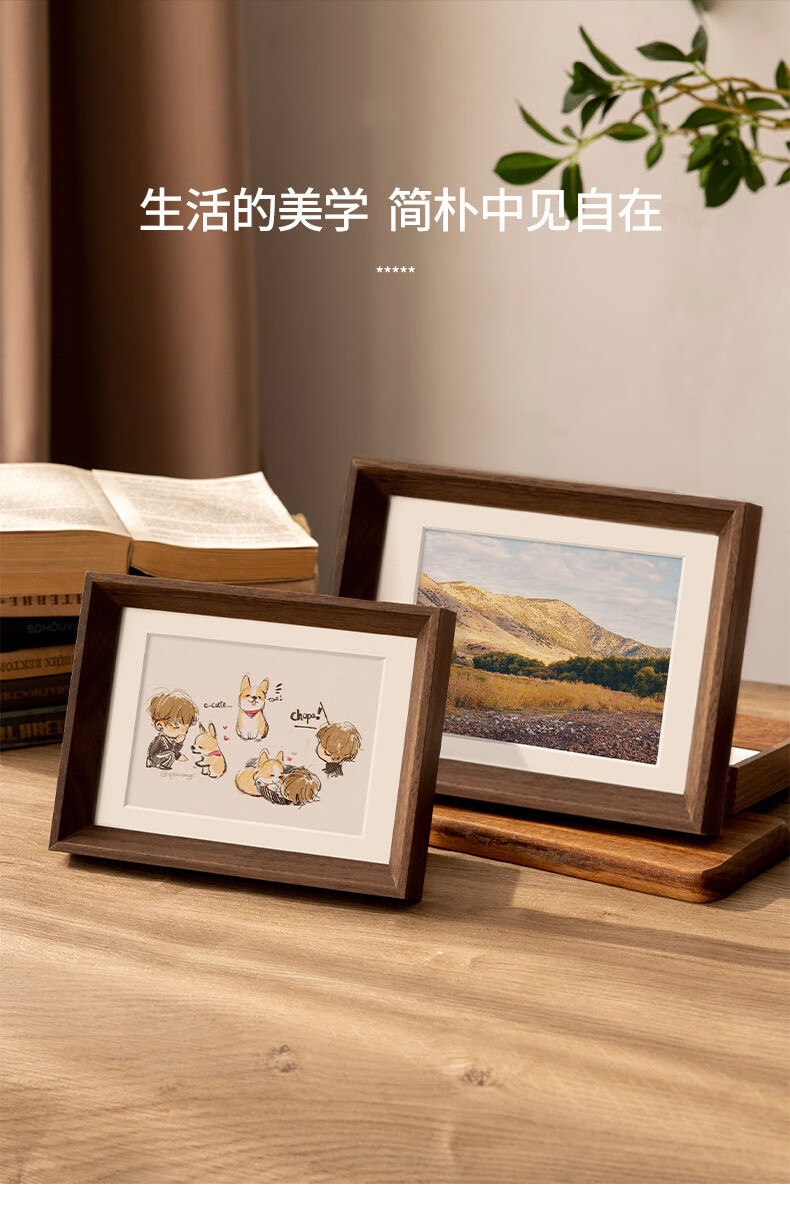 Wooden photo frame for table setting, photo mounting, 6-inch, 7-inch, and 8-inch high-end calligraphy picture frame, wall-mounted birthday gift frame, walnut color, beveled edge, 6 inches (10.2*15.3cm), can be placed horizontally or vertically