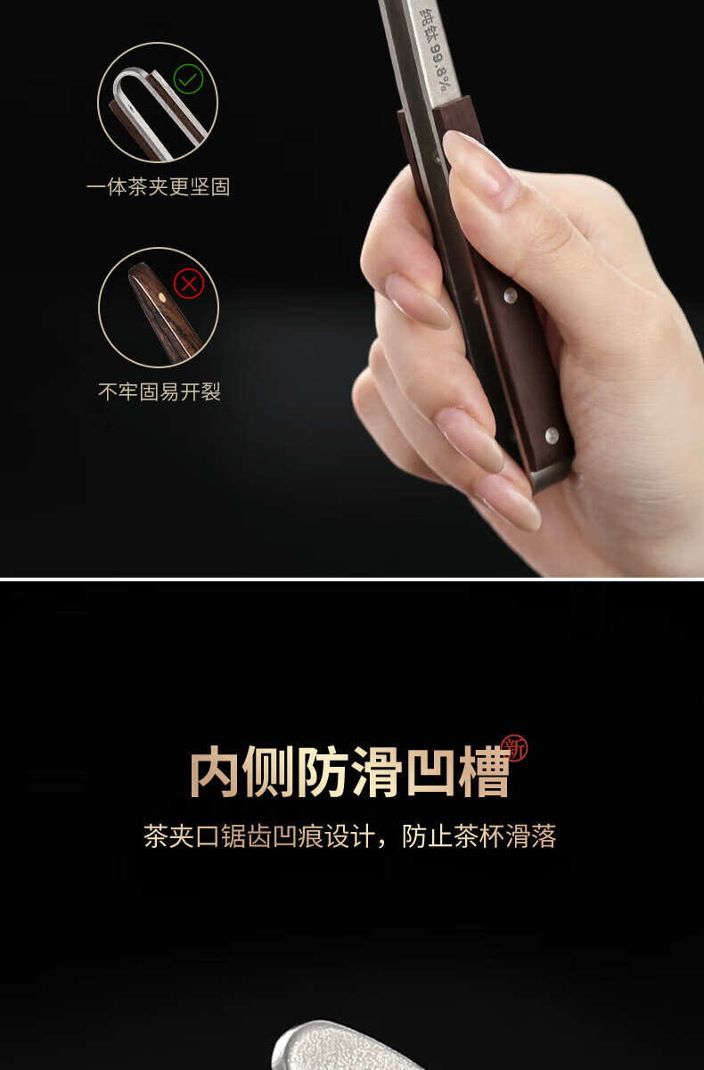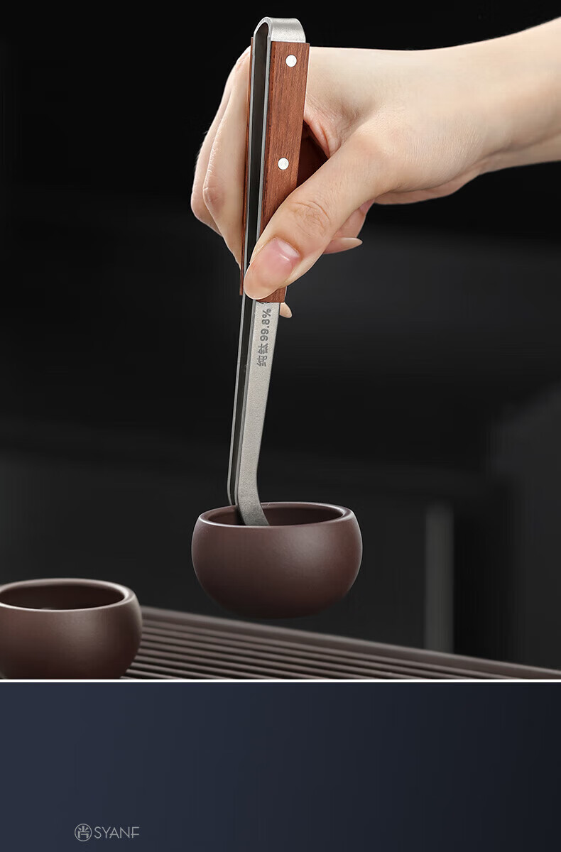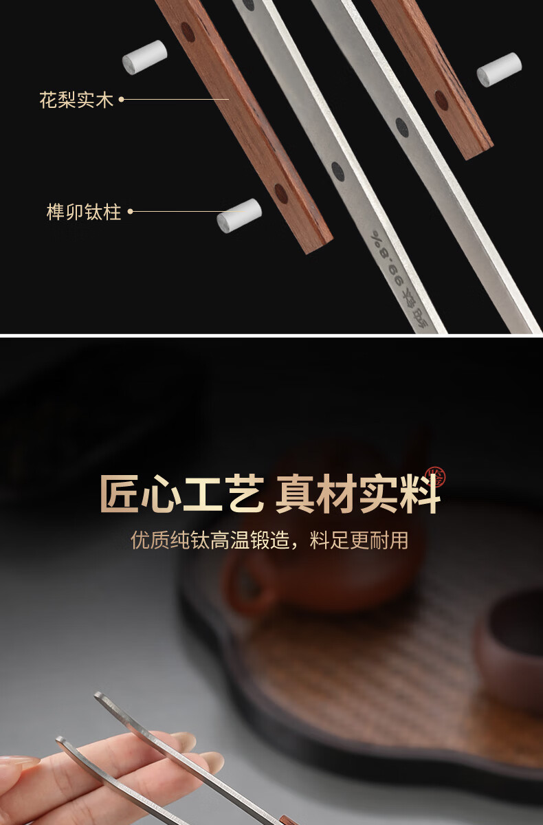 Unclumsy pure titanium tea clips solid wood kung fu tea set accessories tea leaf clips tea cup clips tweezers tea ceremony ornaments spare parts 1-ebony Youyi pure titanium tea clips