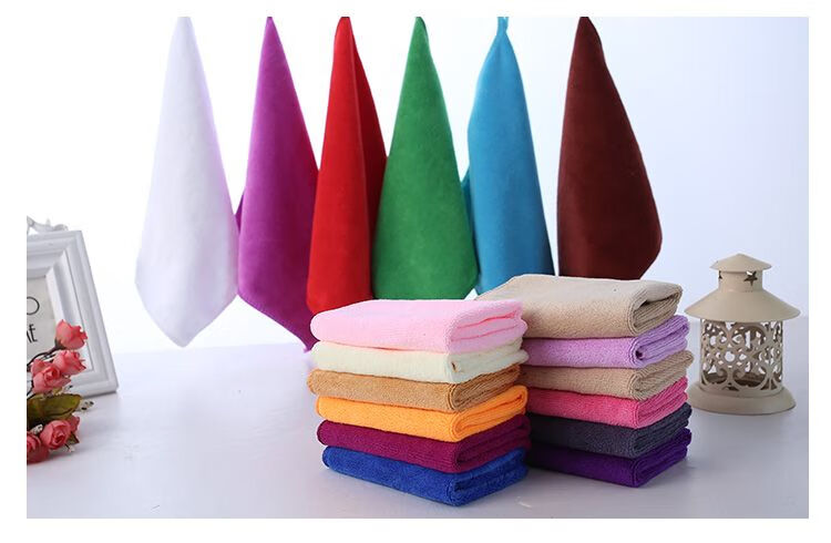 Chenzhi Shangpin household cleaning rags polyester scouring pads fine fiber towels car wiping towels thin small square towels yellow rags 10 pieces with lanyard 30*30CM