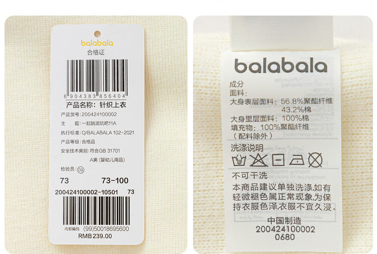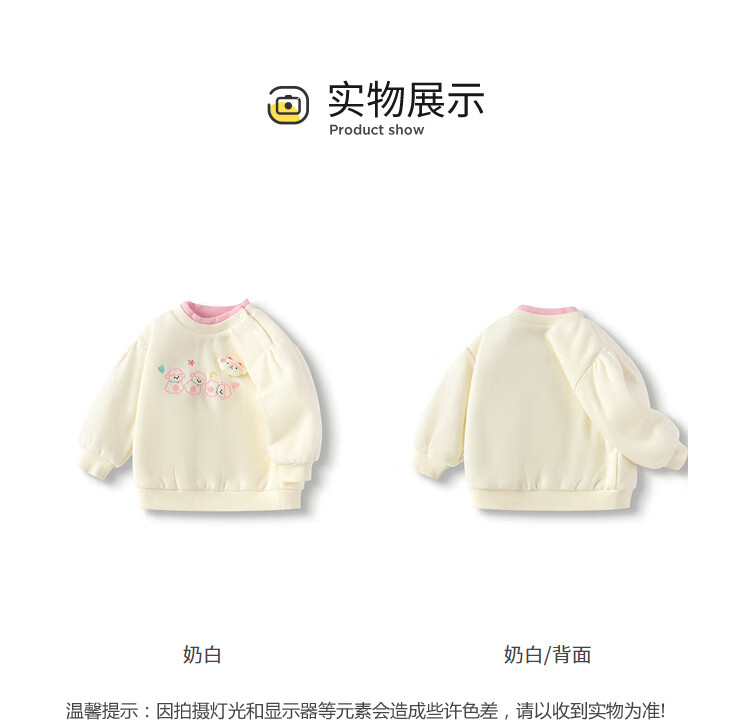 Balabala children's clothing baby bottoming shirt T-shirt girls top autumn and winter style skin-friendly, comfortable, cute, sweet and fashionable milk white 10501 100