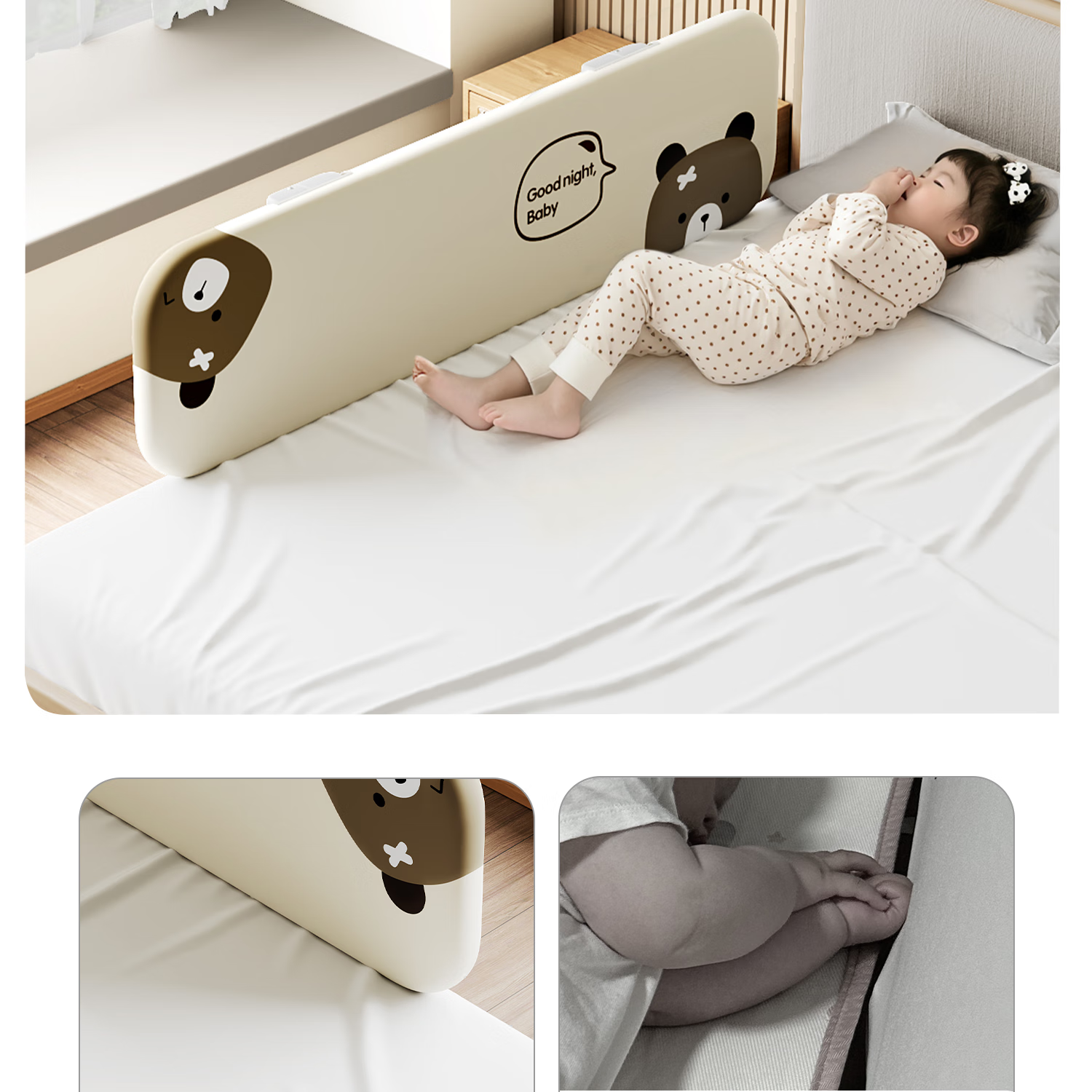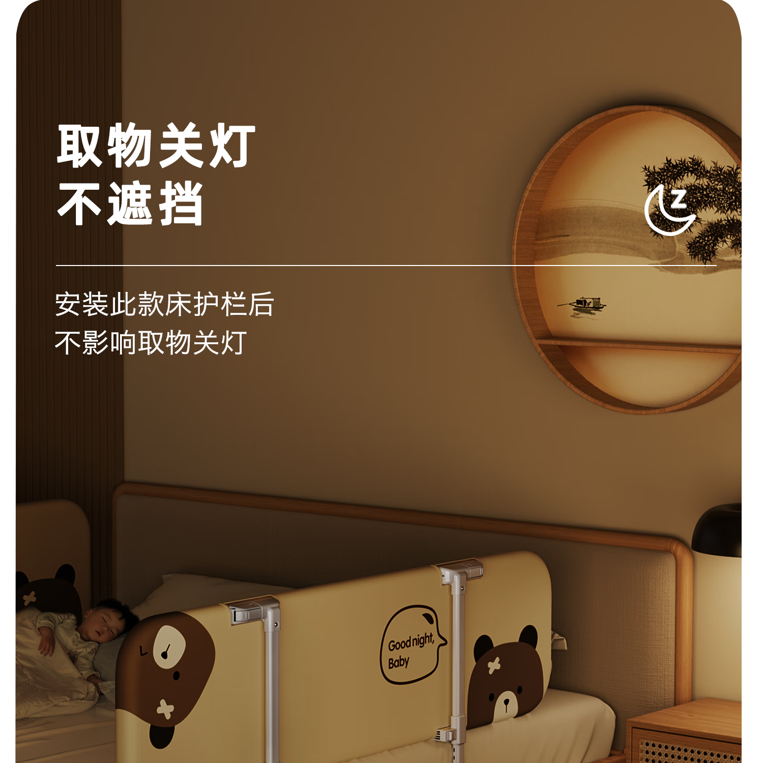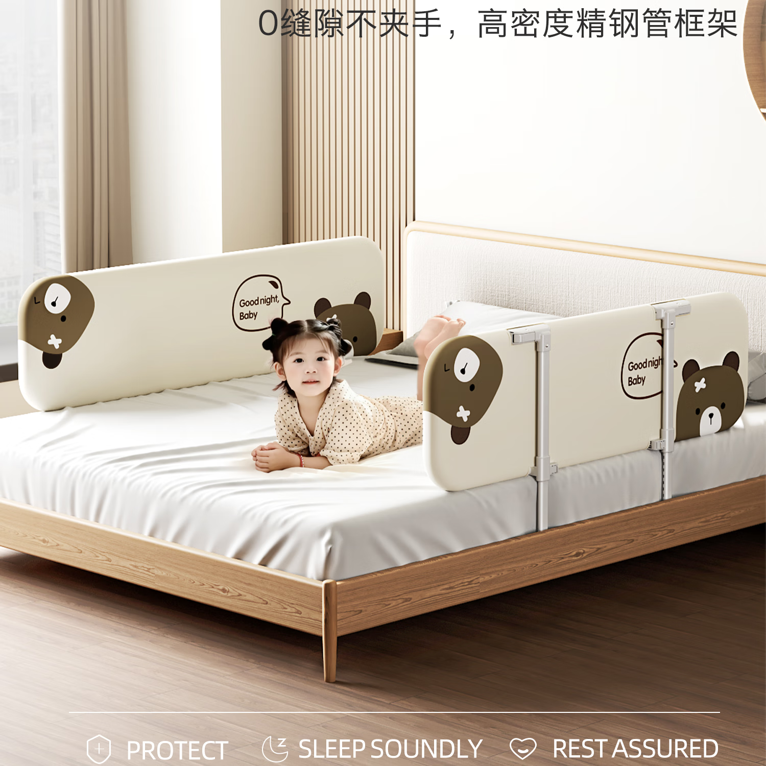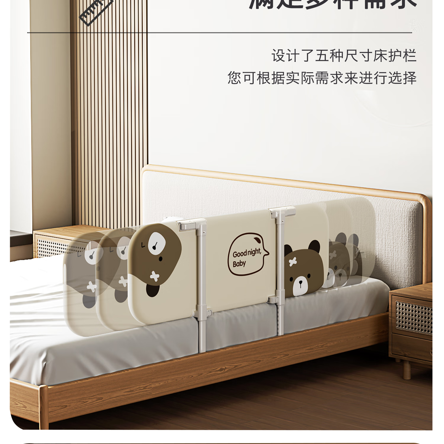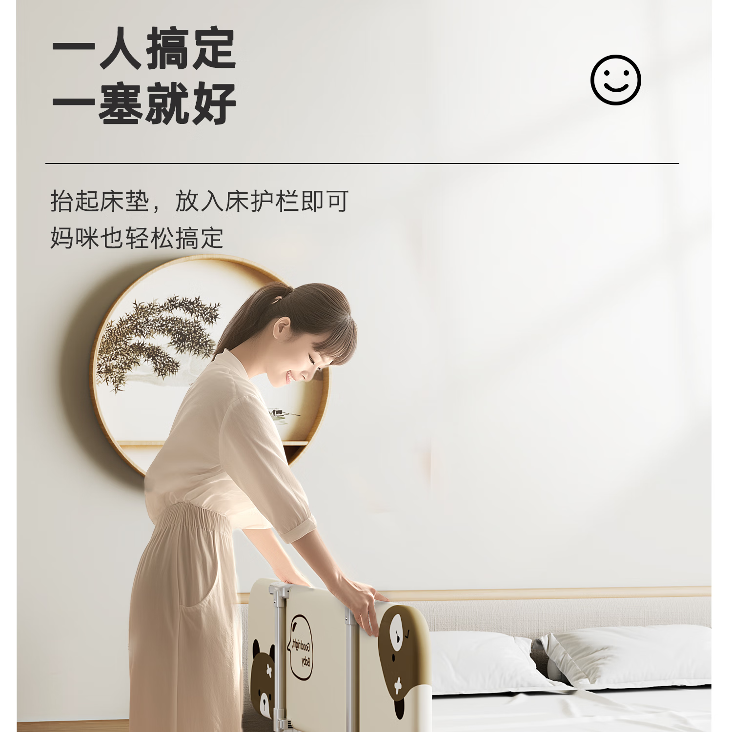 BABYBLIZ travel portable punch-free bed fence baby anti-fall guardrail children's bed baffle baby bedside side clip bed model-Brown Bear Free storage bag 2.0 meters single-sided