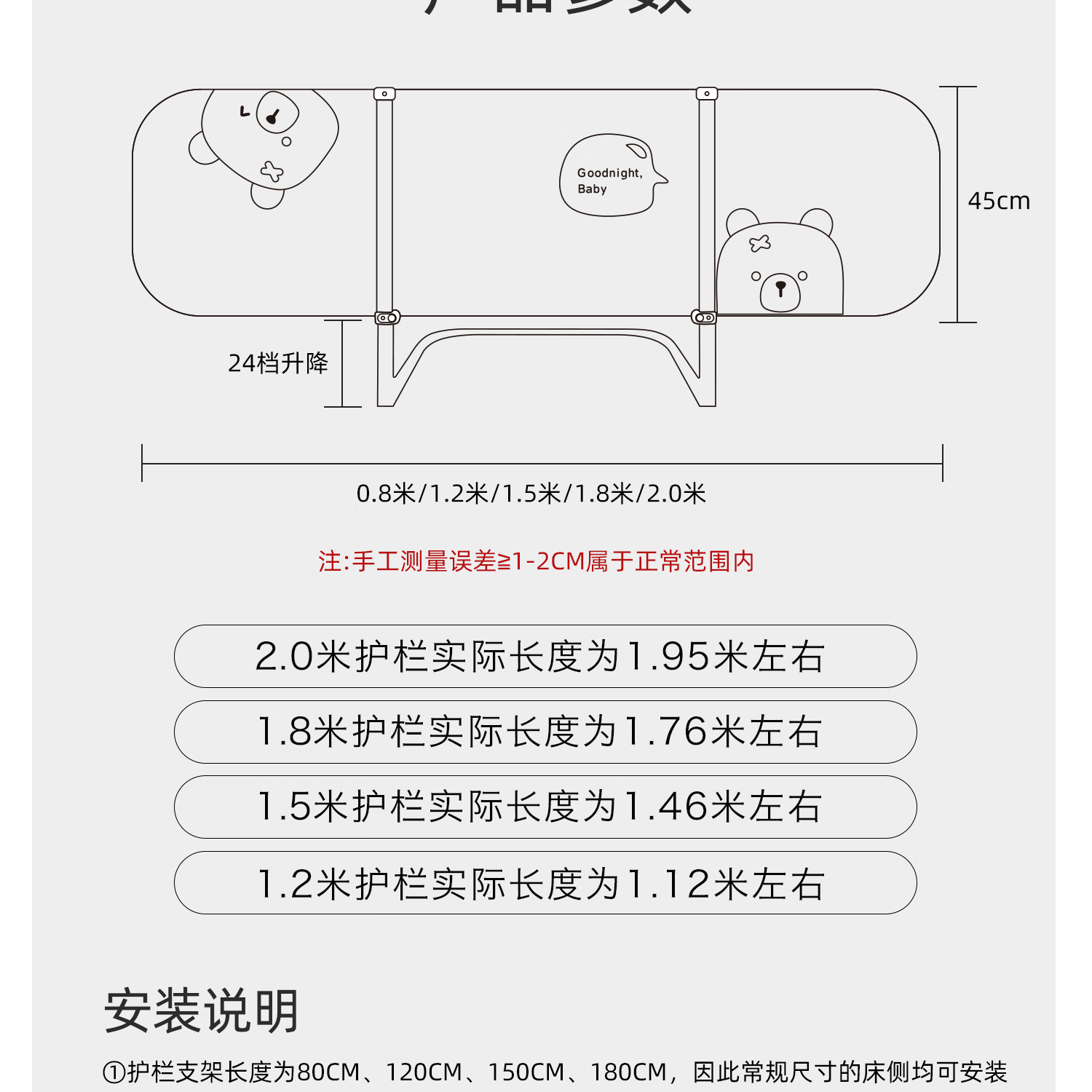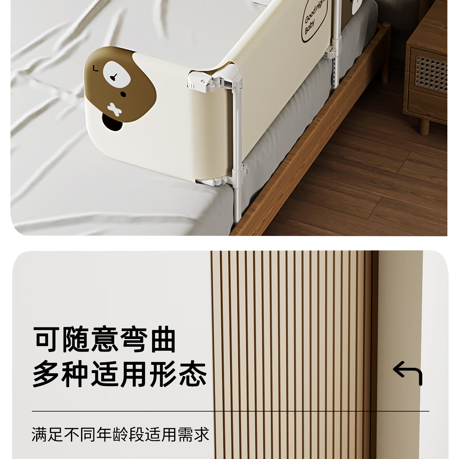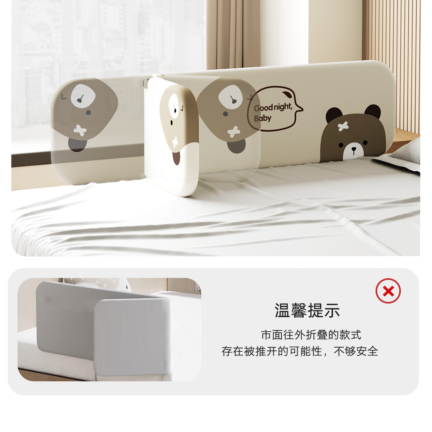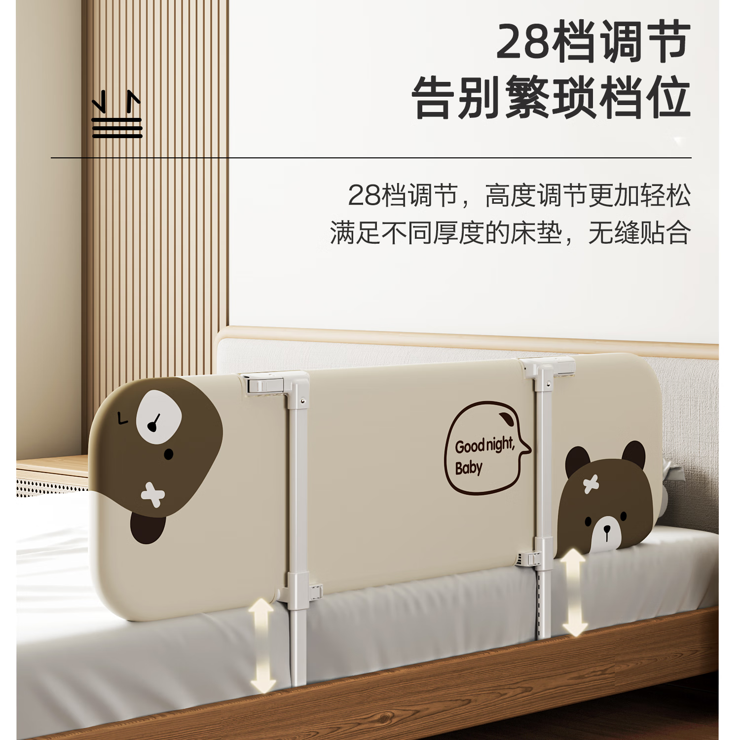 BABYBLIZ travel portable punch-free bed fence baby anti-fall guardrail children's bed baffle baby bedside side clip bed model-Brown Bear Free storage bag 2.0 meters single-sided