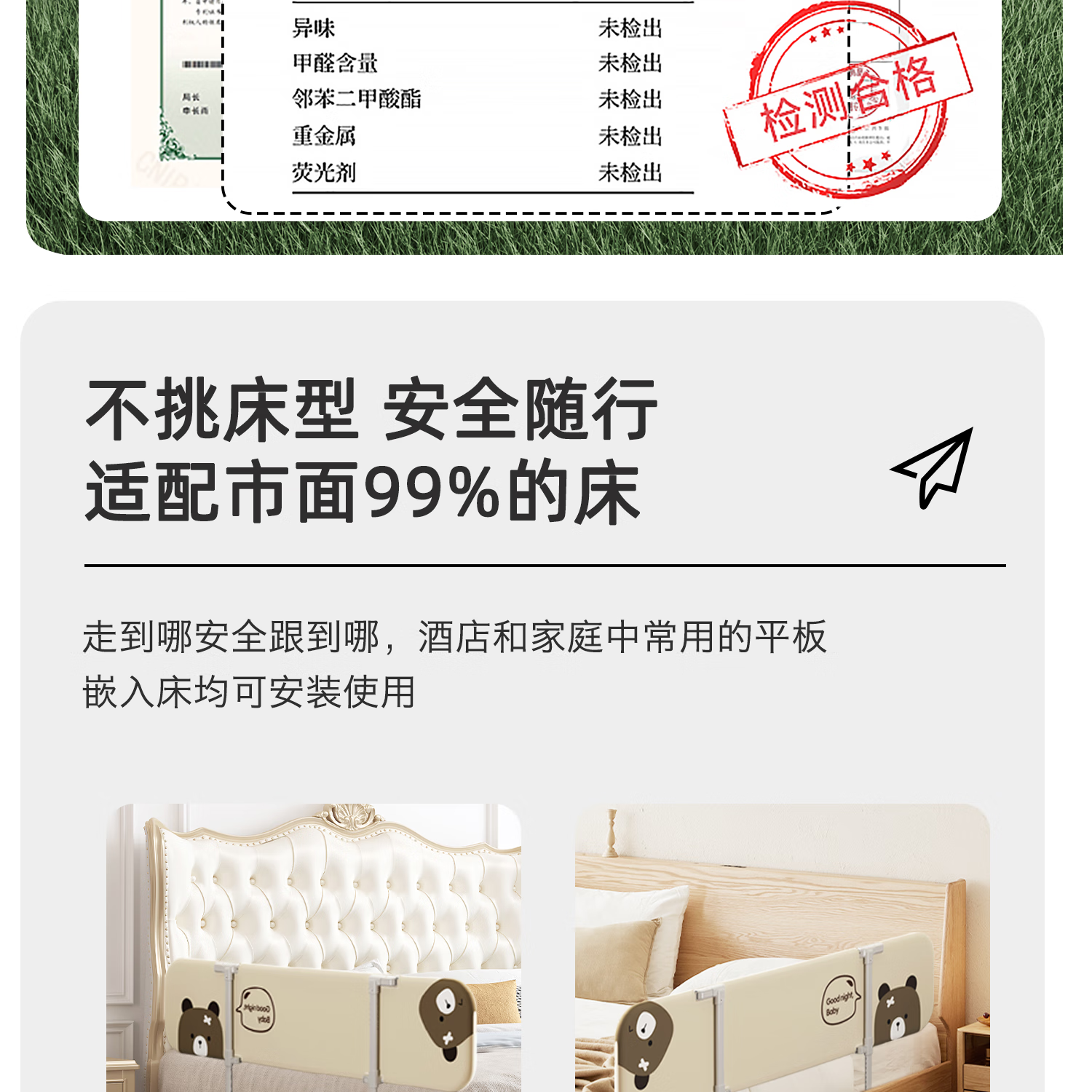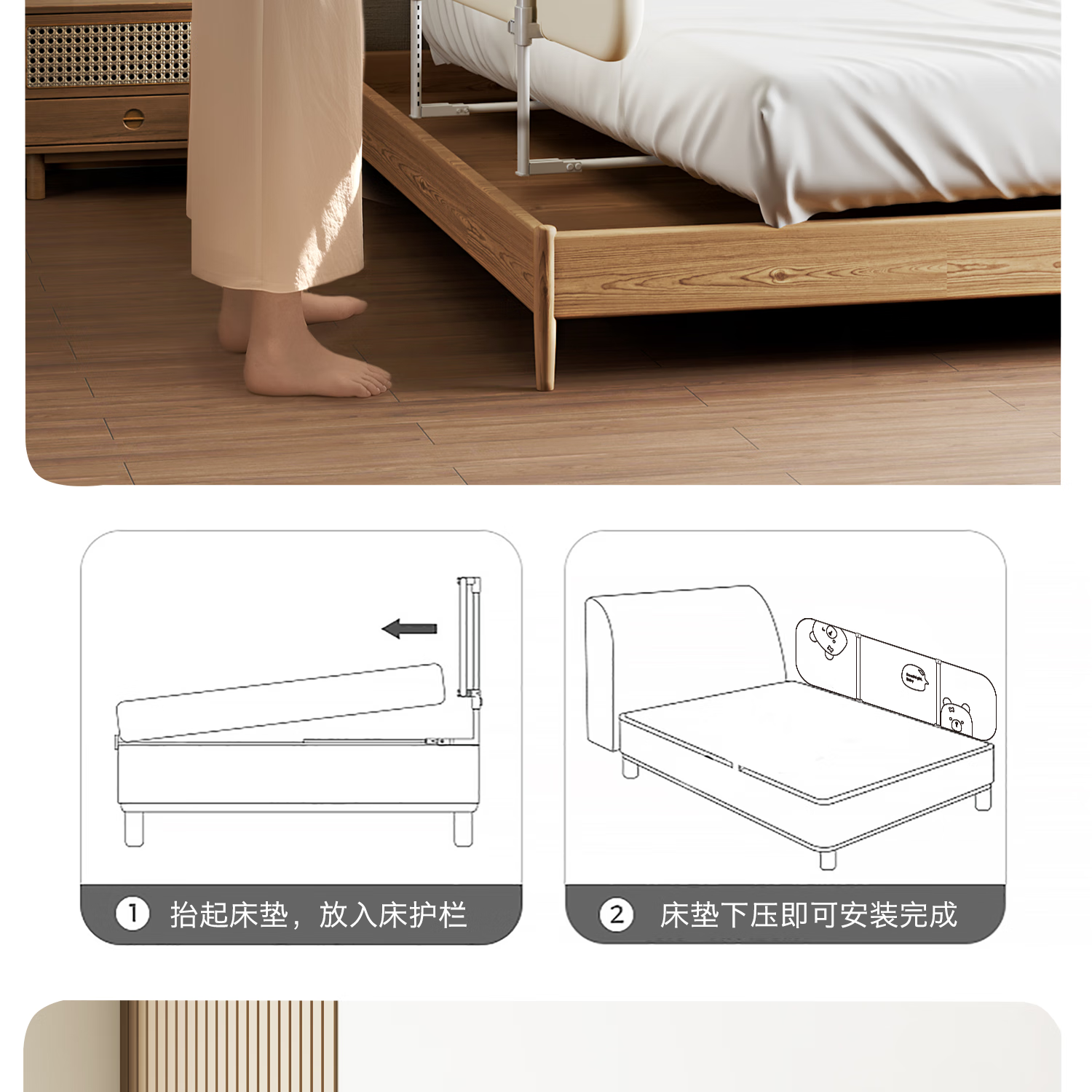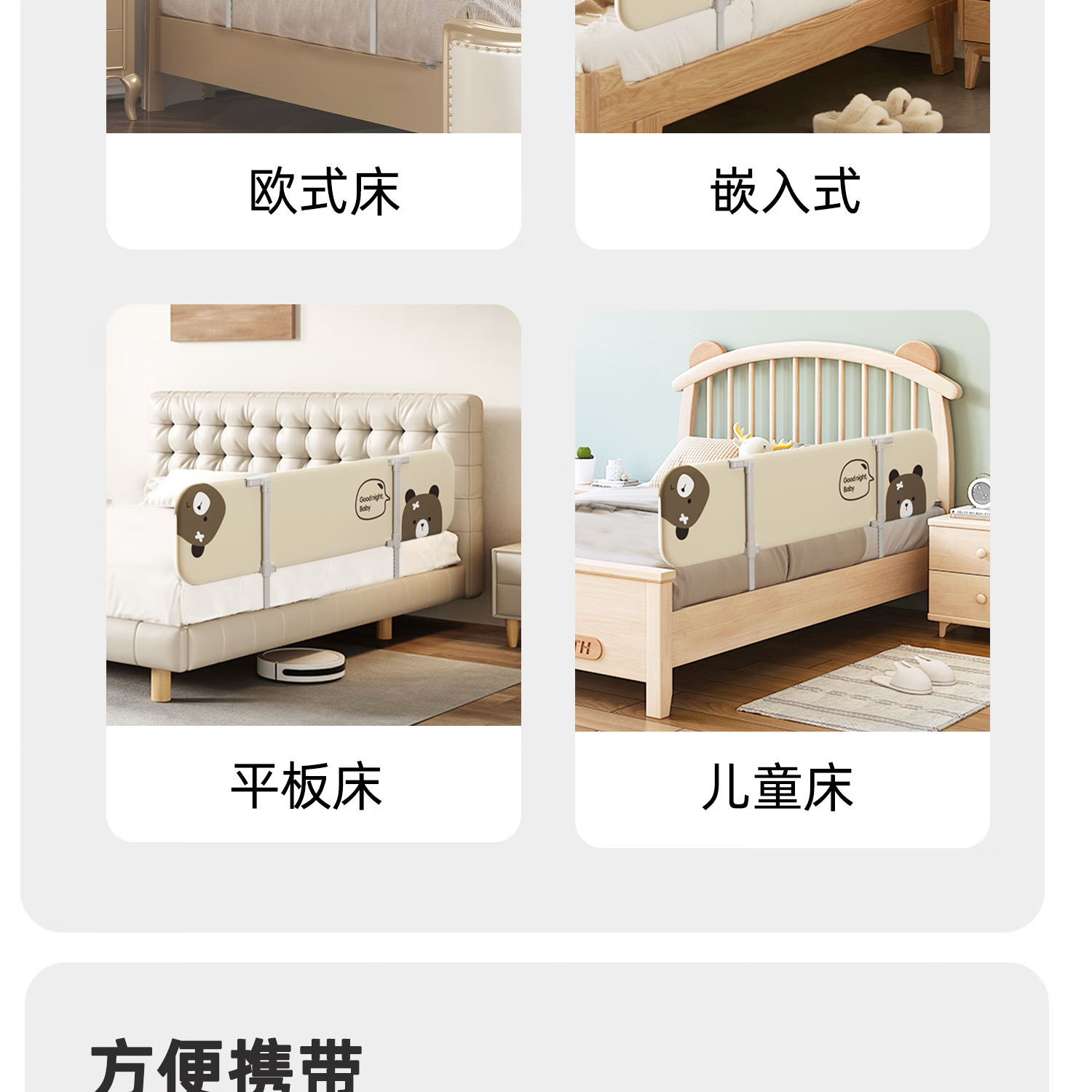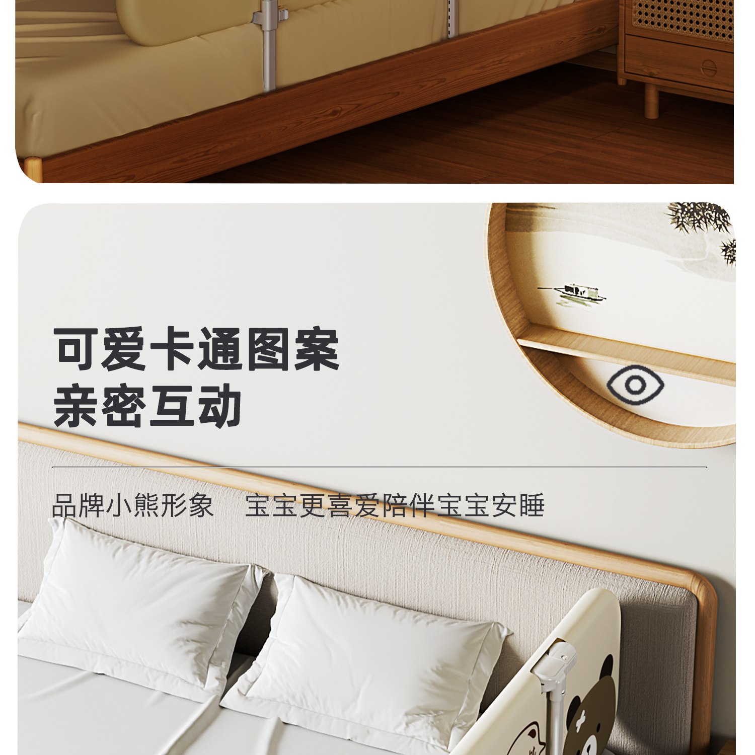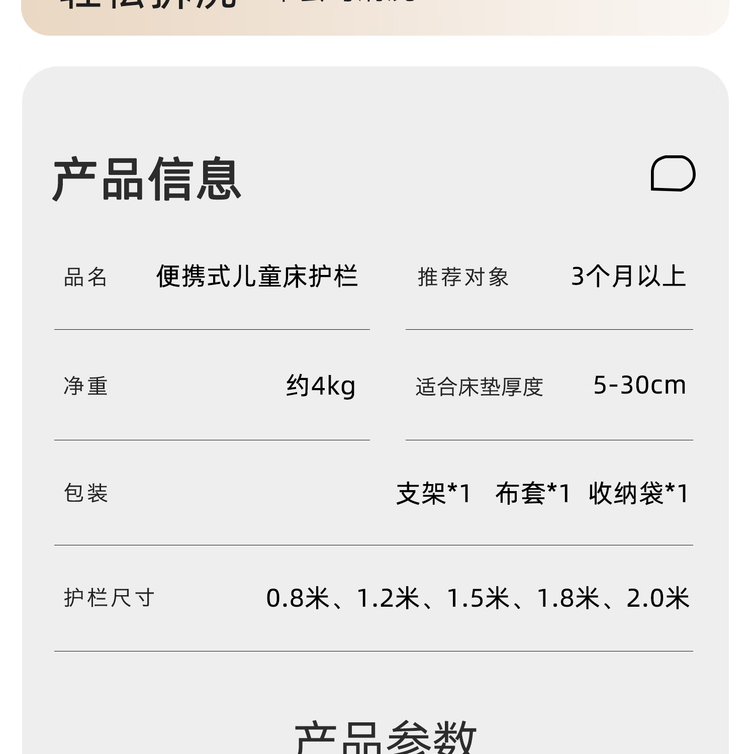 BABYBLIZ travel portable punch-free bed fence baby anti-fall guardrail children's bed baffle baby bedside side clip bed model-Brown Bear Free storage bag 2.0 meters single-sided
