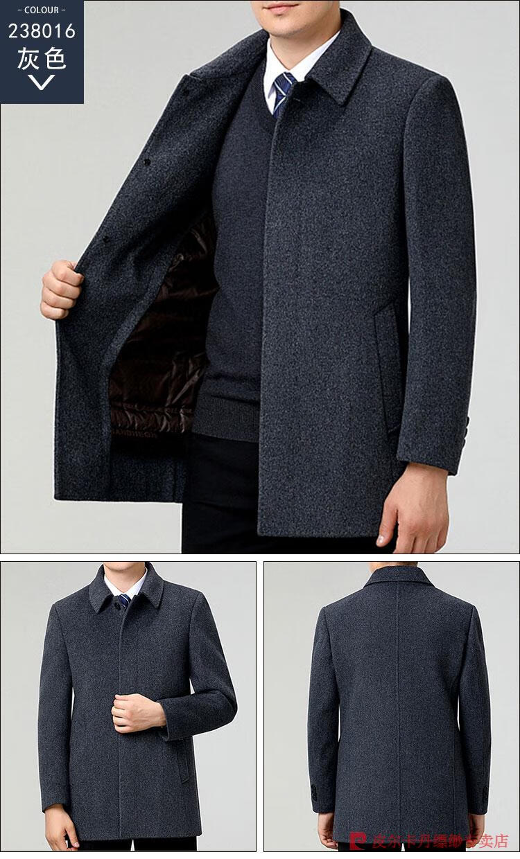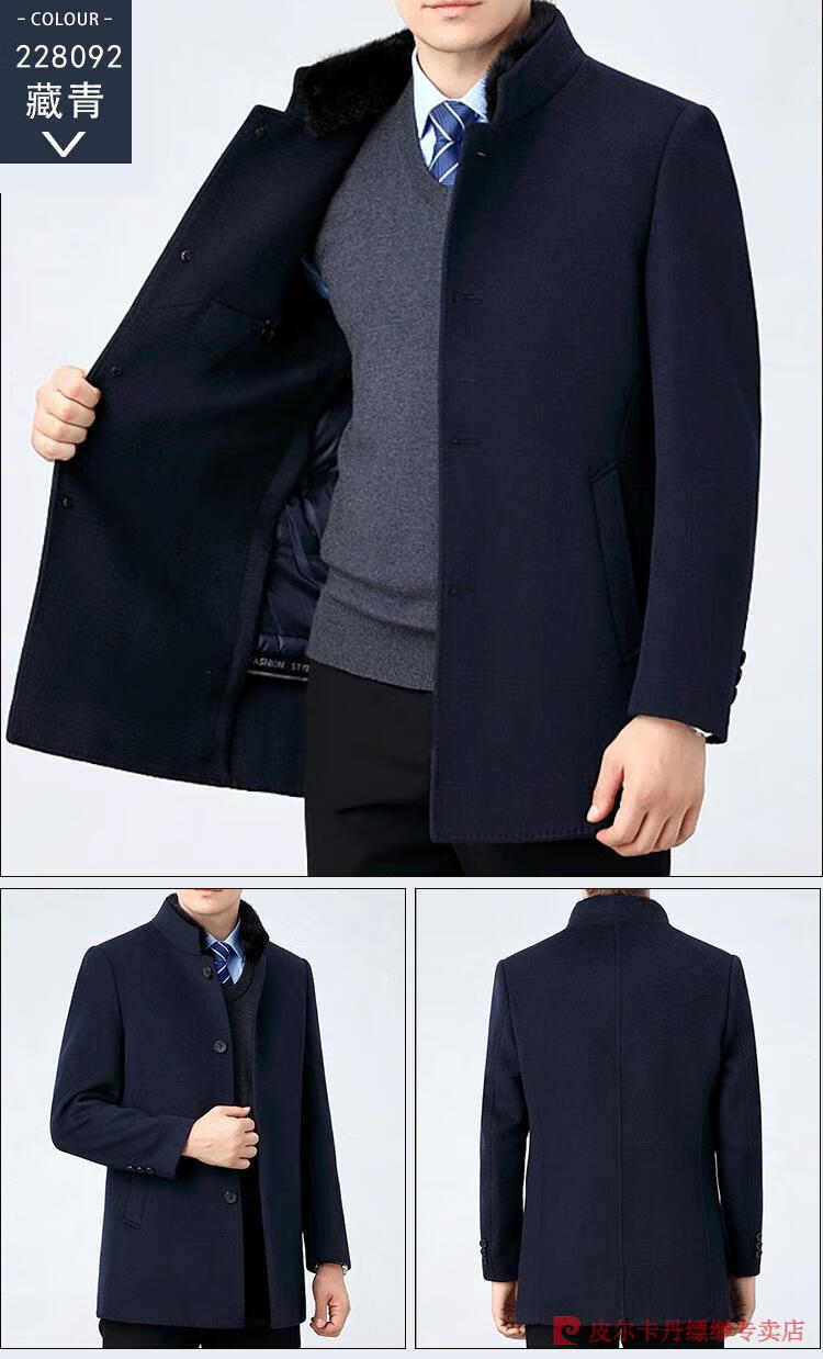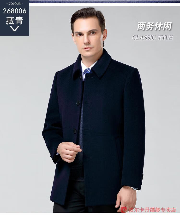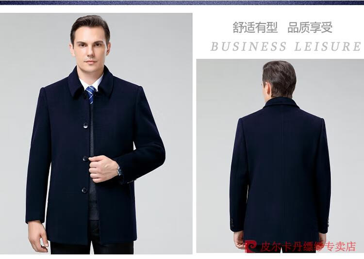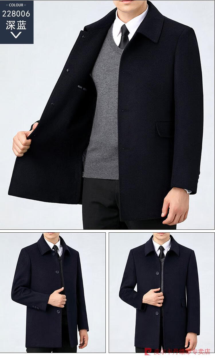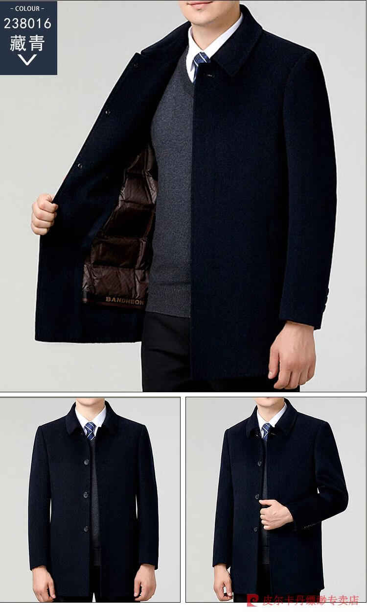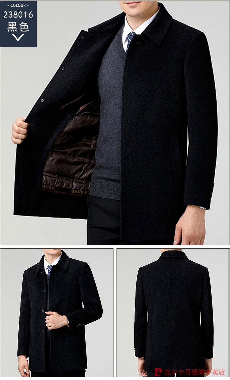 Pierre Cardin Men's Autumn and Winter Double-sided Wool Cashmere Coat Middle-aged Men's Wool Wool Thick Casual Jacket 238016 Navy + Removable Goose Down Liner Dark XL 180/96A (100% non-pilling)