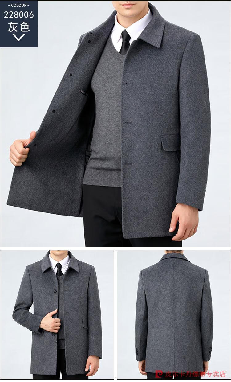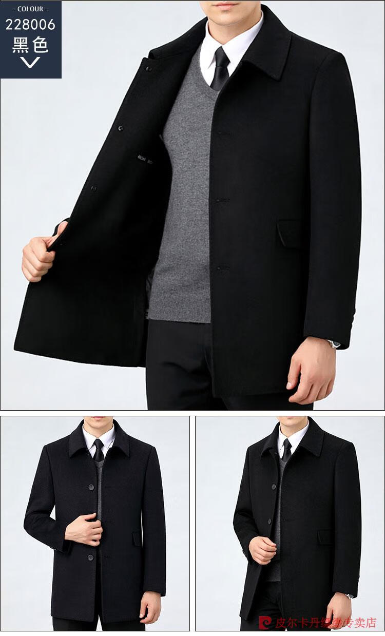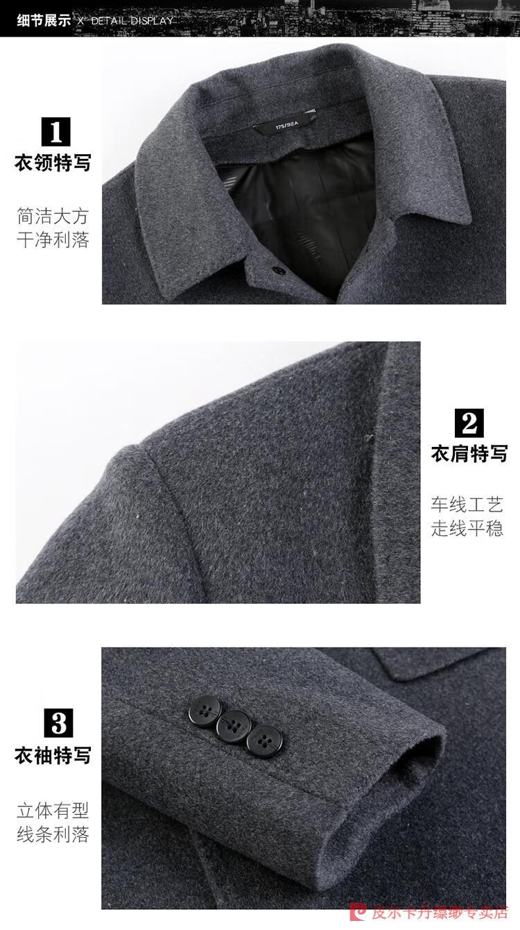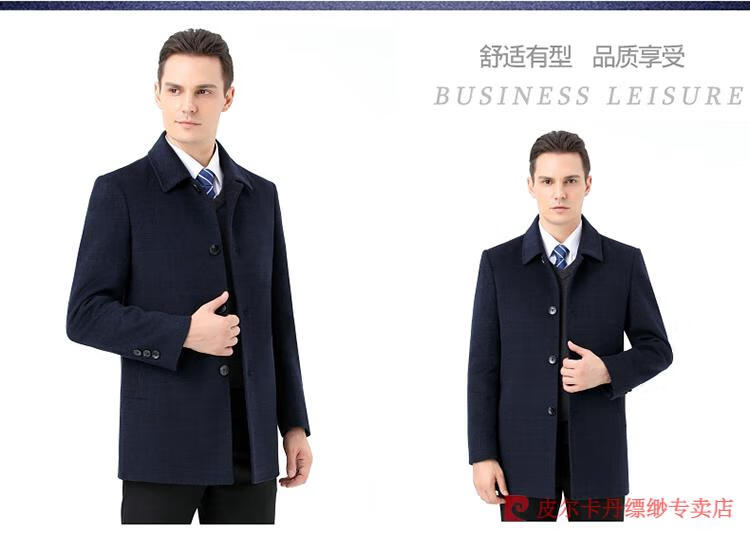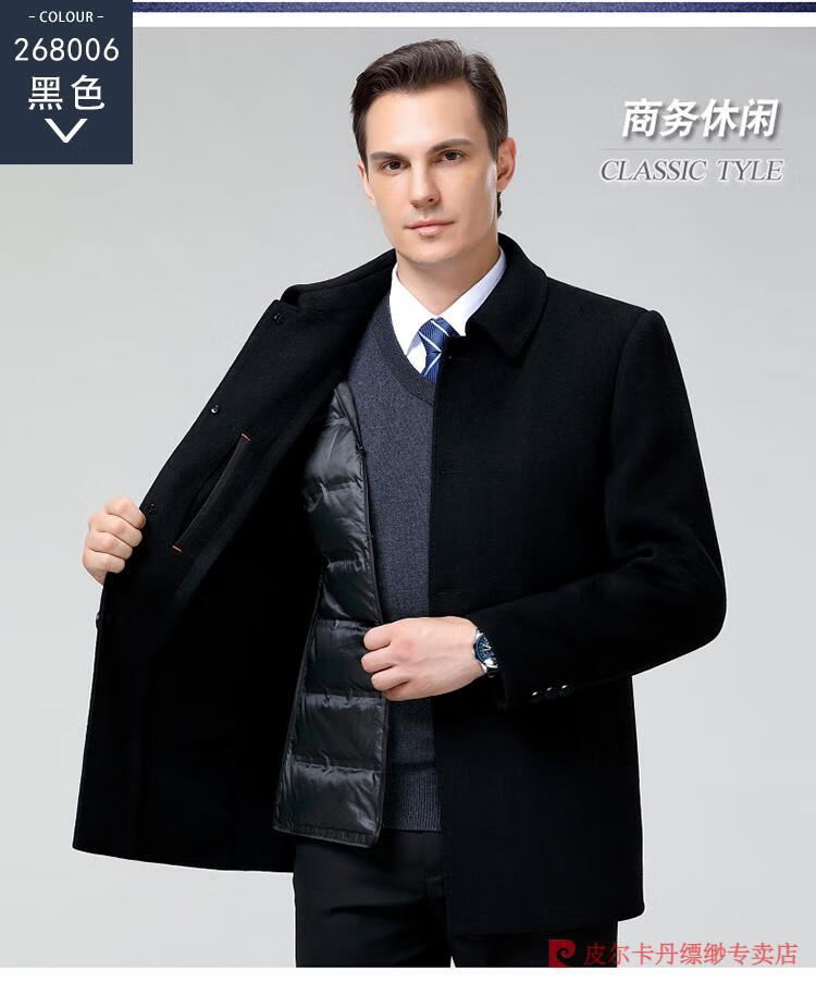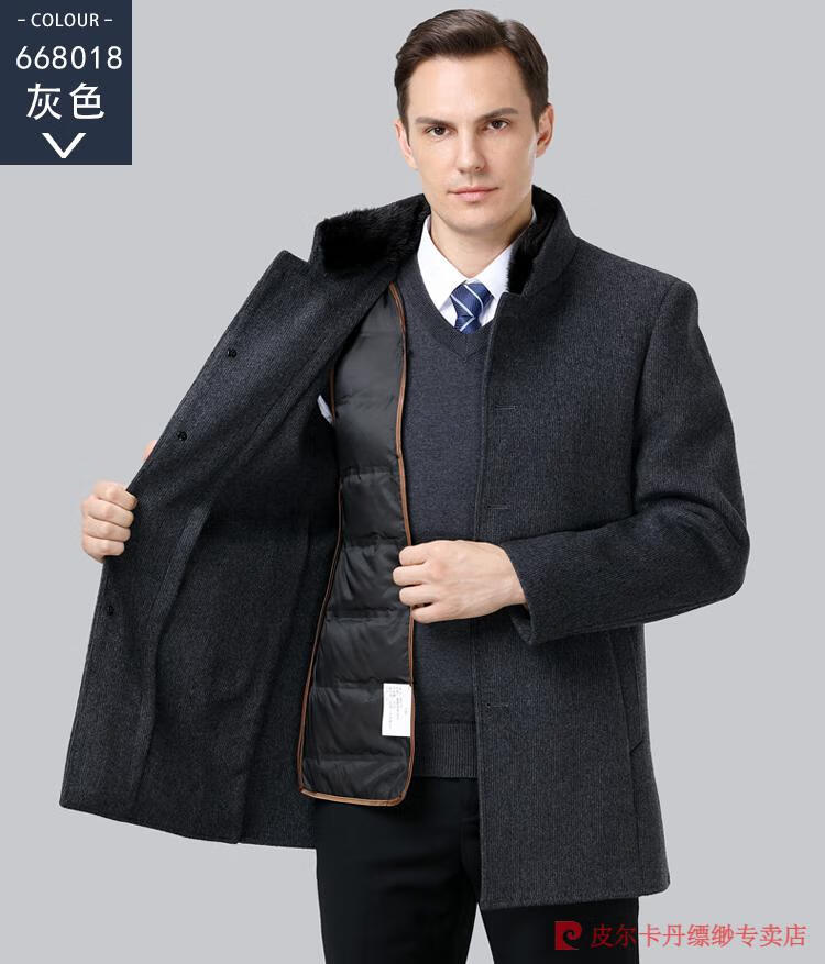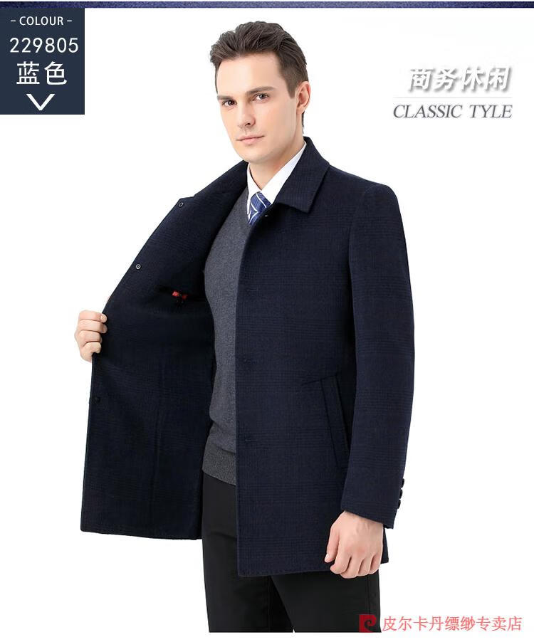 Pierre Cardin Men's Autumn and Winter Double-sided Wool Cashmere Coat Middle-aged Men's Wool Wool Thick Casual Jacket 238016 Navy + Removable Goose Down Liner Dark XL 180/96A (100% non-pilling)