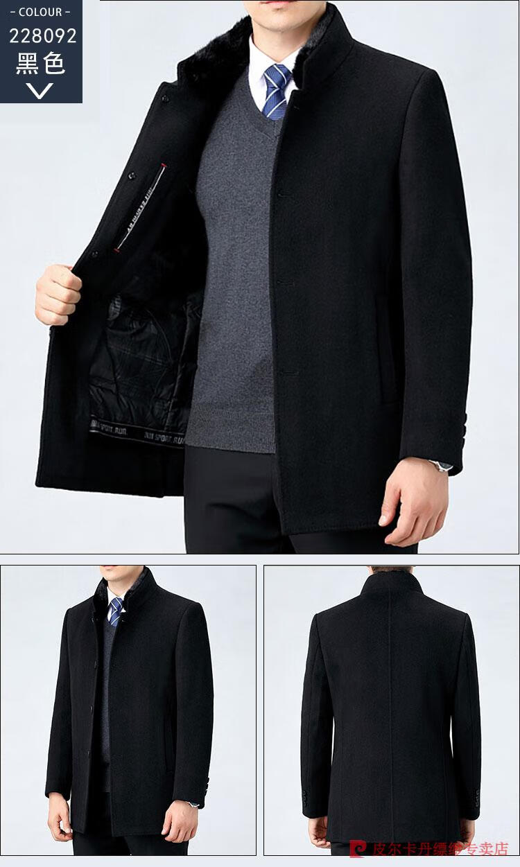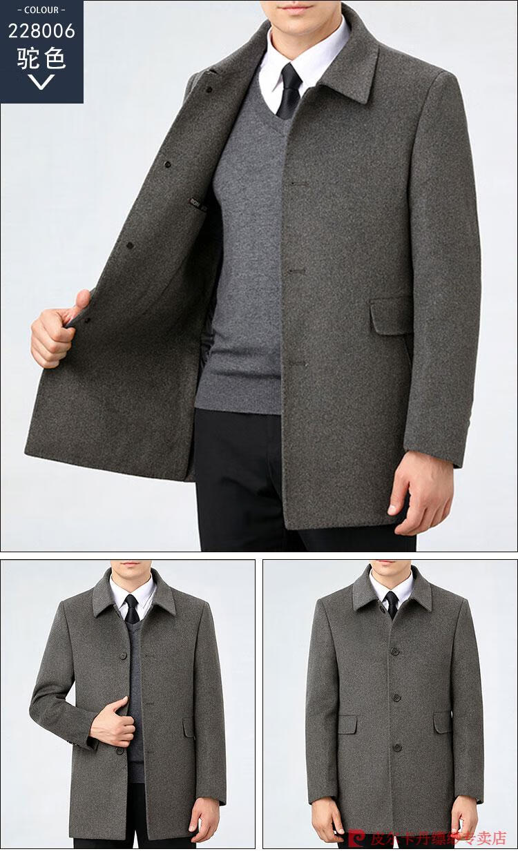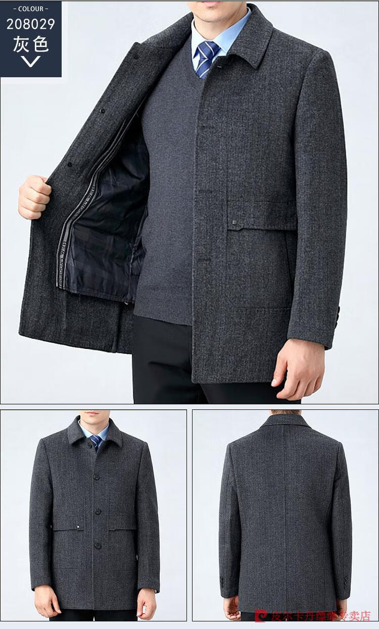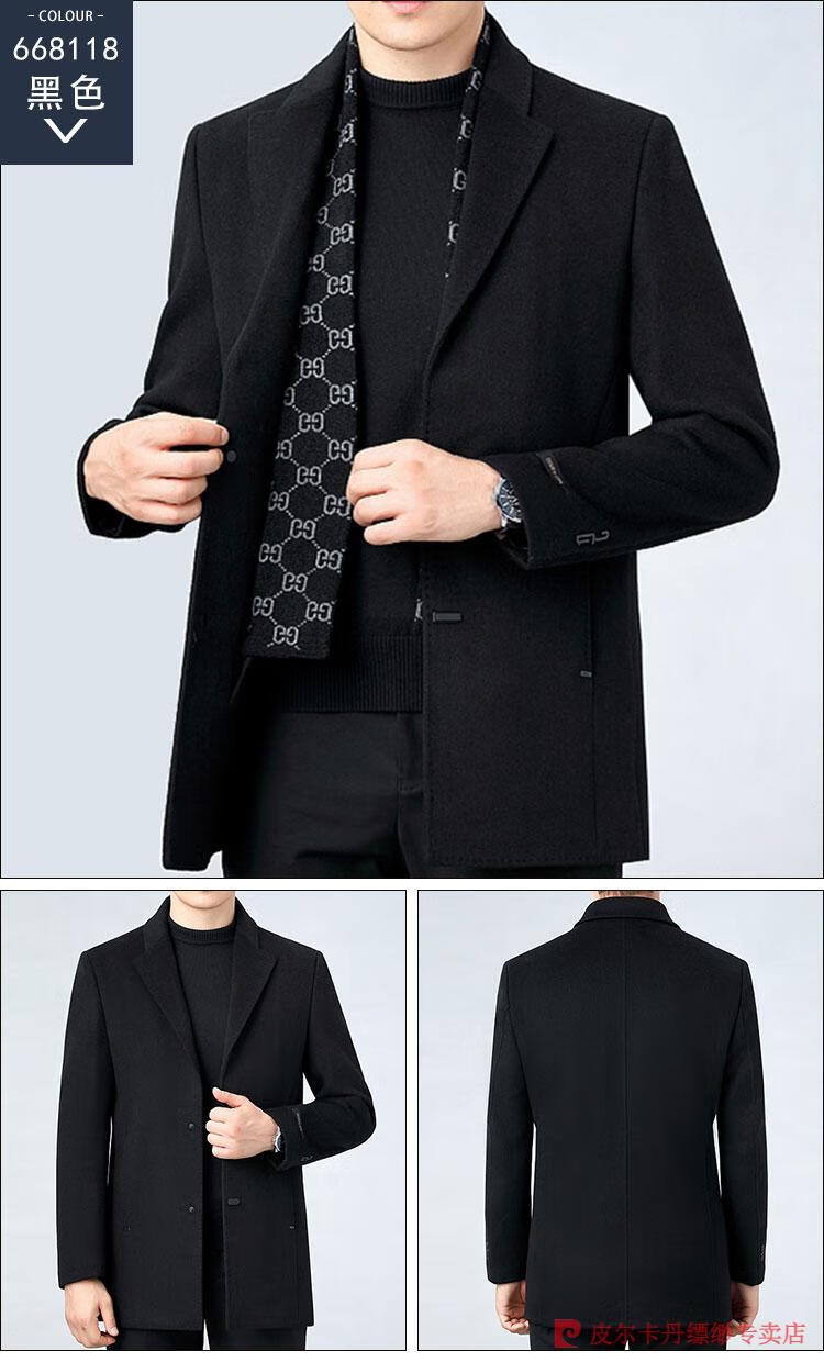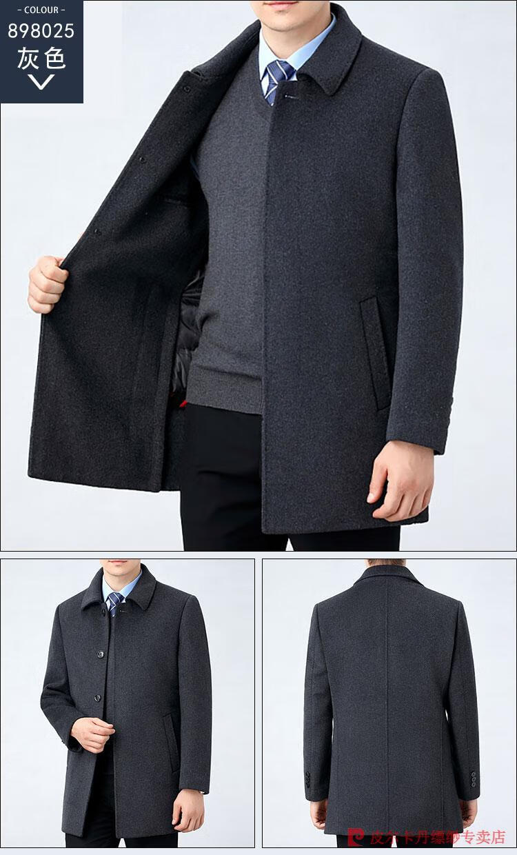 Pierre Cardin Men's Autumn and Winter Double-sided Wool Cashmere Coat Middle-aged Men's Wool Wool Thick Casual Jacket 238016 Navy + Removable Goose Down Liner Dark XL 180/96A (100% non-pilling)