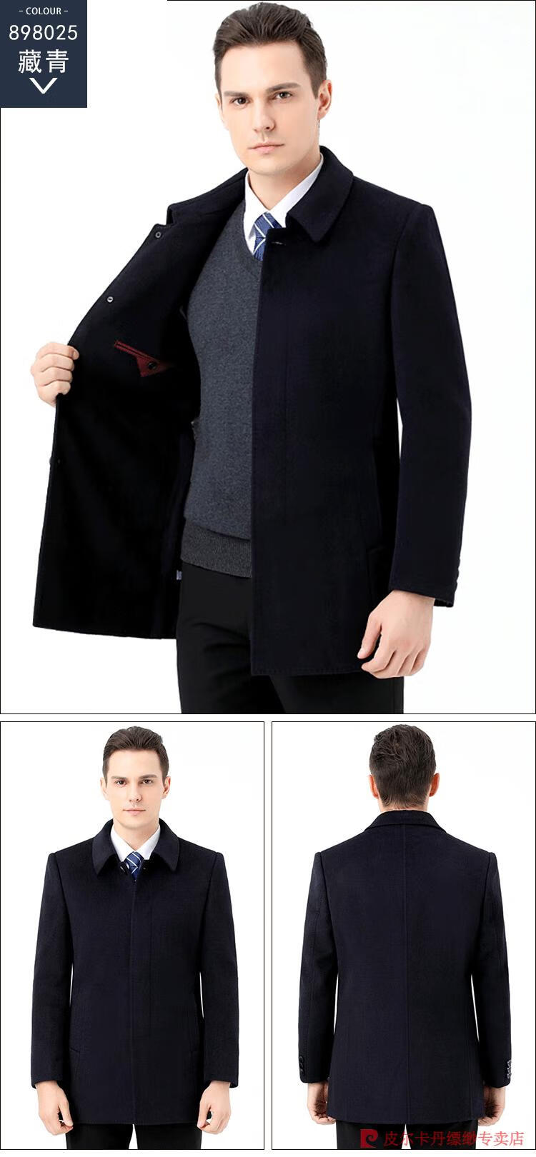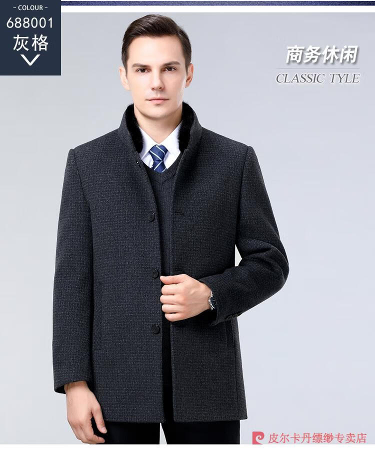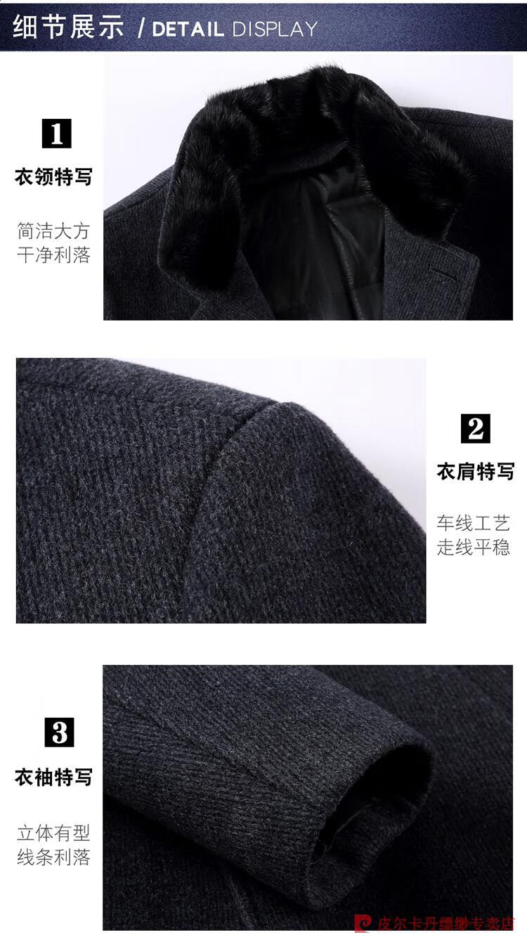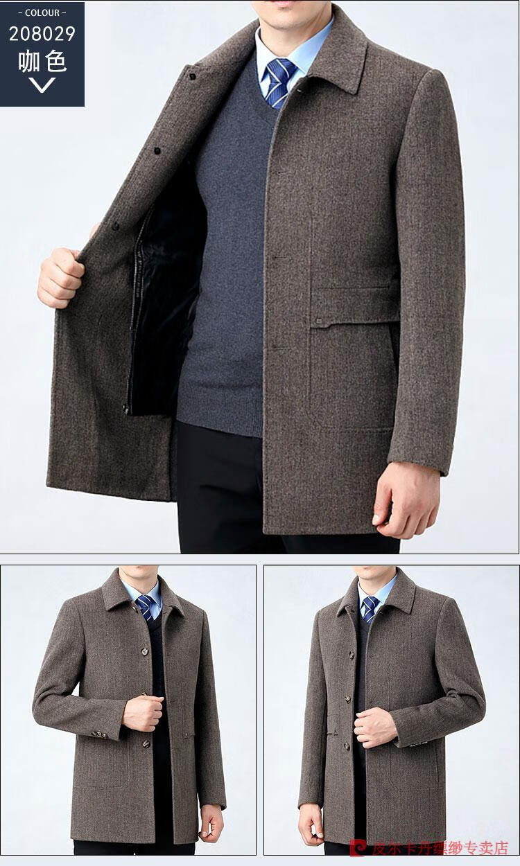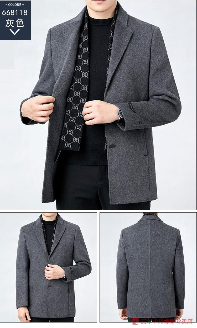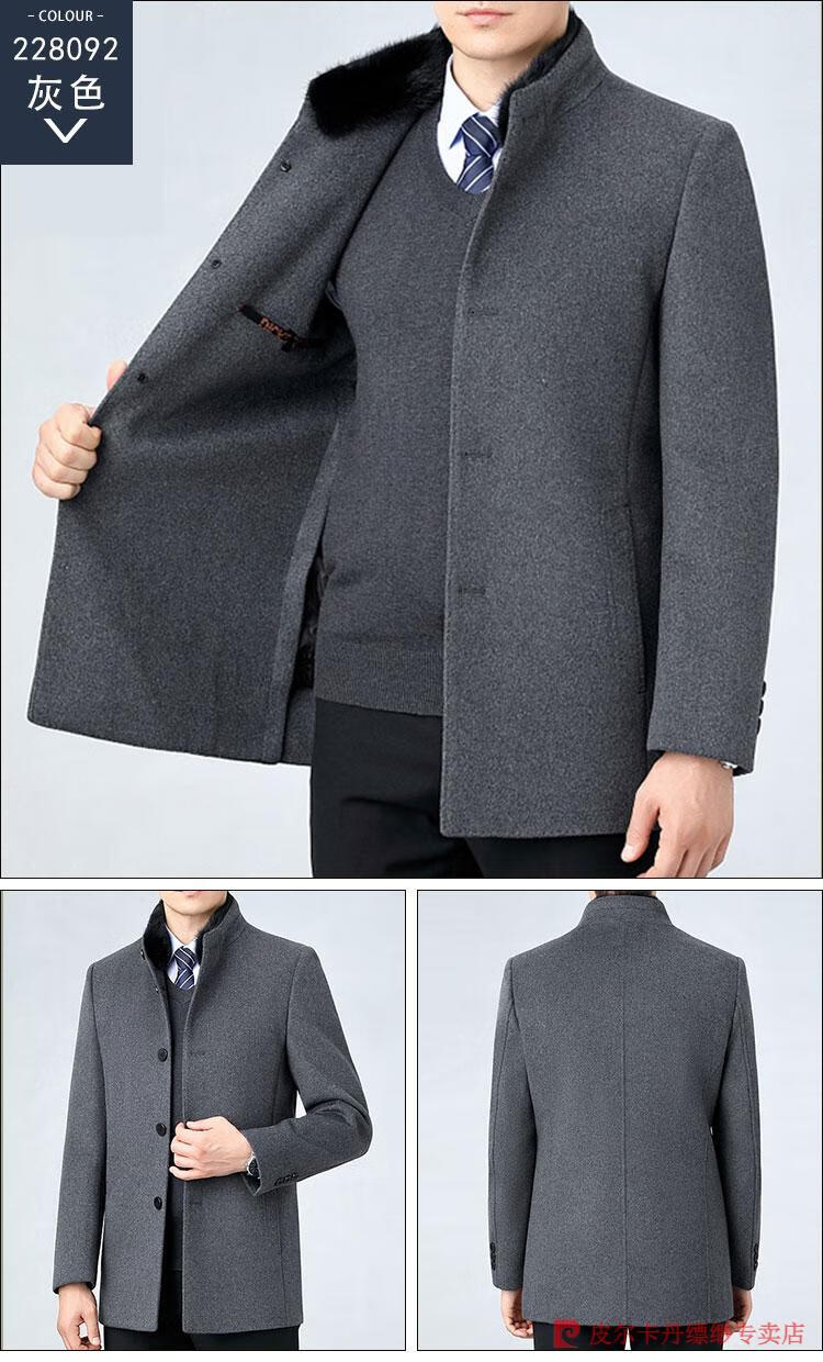 Pierre Cardin Men's Autumn and Winter Double-sided Wool Cashmere Coat Middle-aged Men's Wool Wool Thick Casual Jacket 238016 Navy + Removable Goose Down Liner Dark XL 180/96A (100% non-pilling)