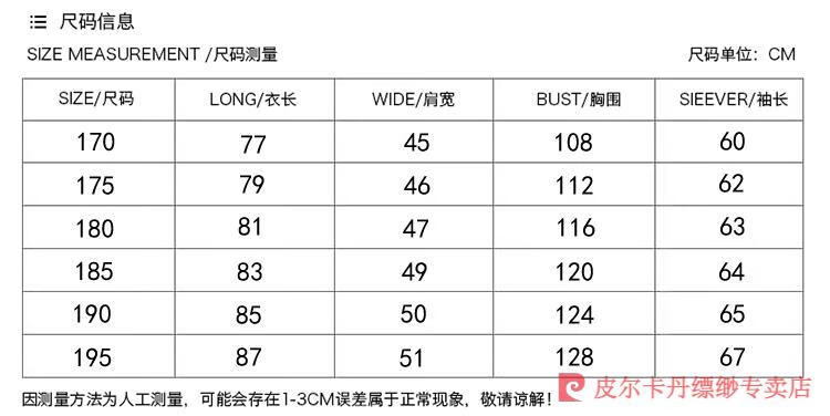 China (cm) 165 / 88-90 170 / 96-98 175 / 108-110 180 / 118-122 185 / 126-130