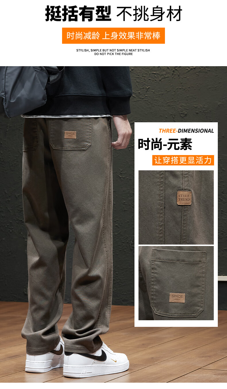 JEEP SPIRIT 2025 Autumn and Winter New Style American Casual Pants Men's Trendy Versatile High Street Loose Straight Imitation Denim Long Pants Men 2901 Black Regular XL Recommended 125-145 Jin Jin equals 0.5 kg