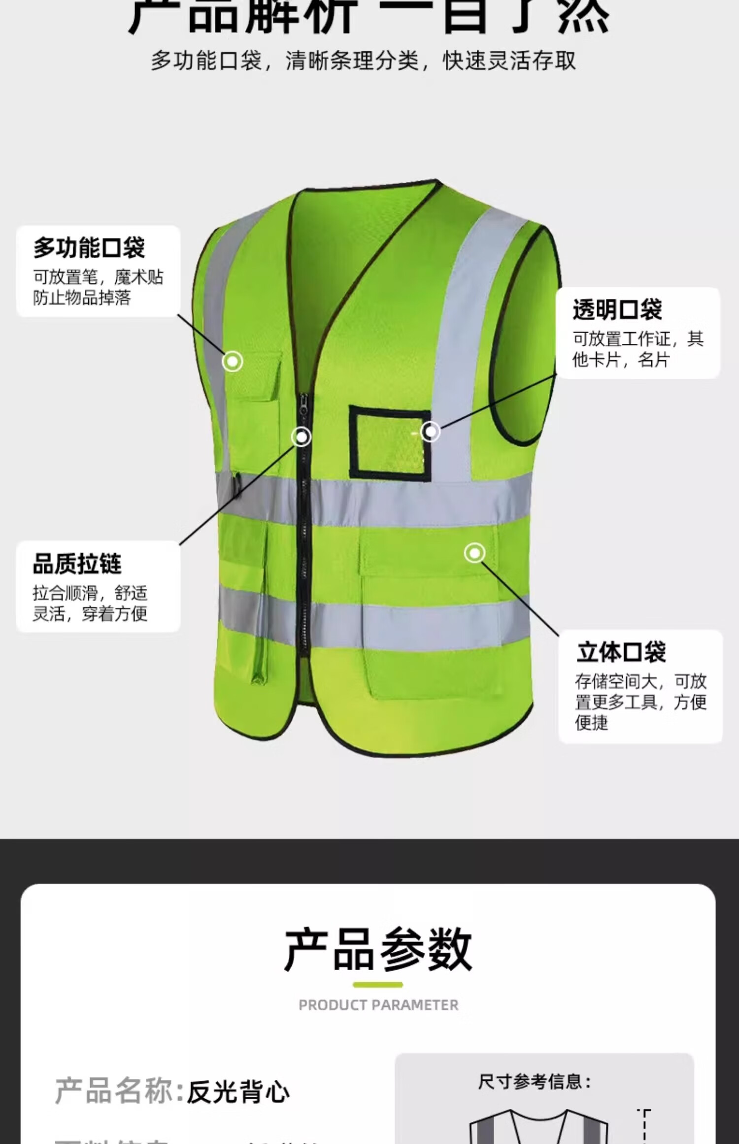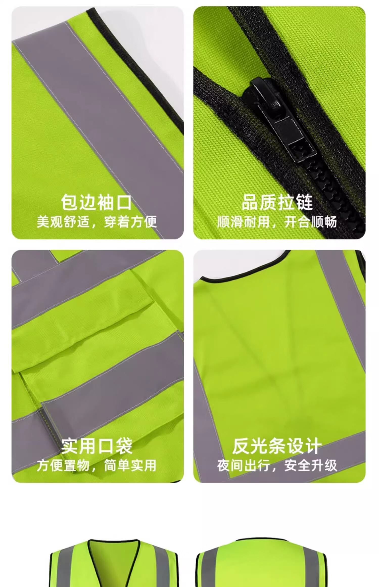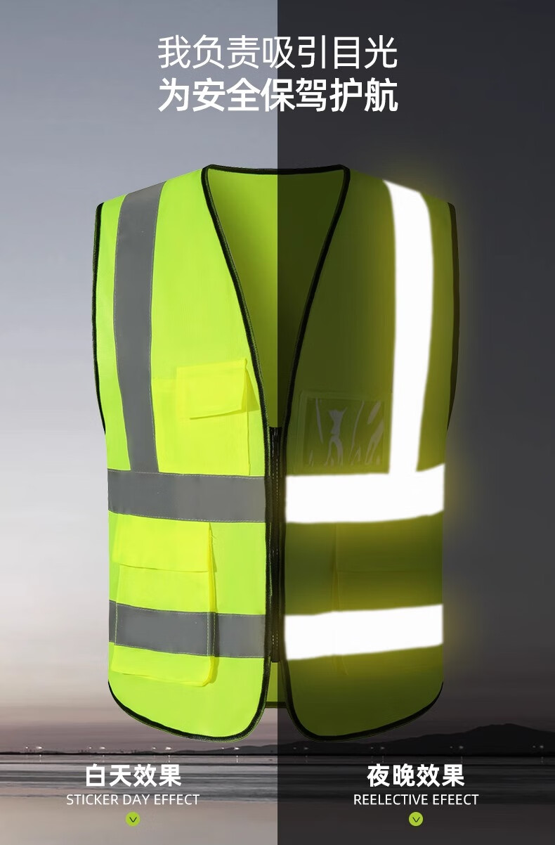 Huicai shirt reflective clothing safety vest vest custom printed logo construction site construction night riding fluorescent green overalls HT-mesh reflective vest fluorescent green
