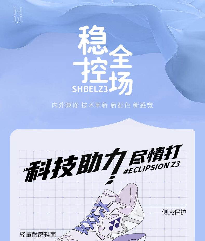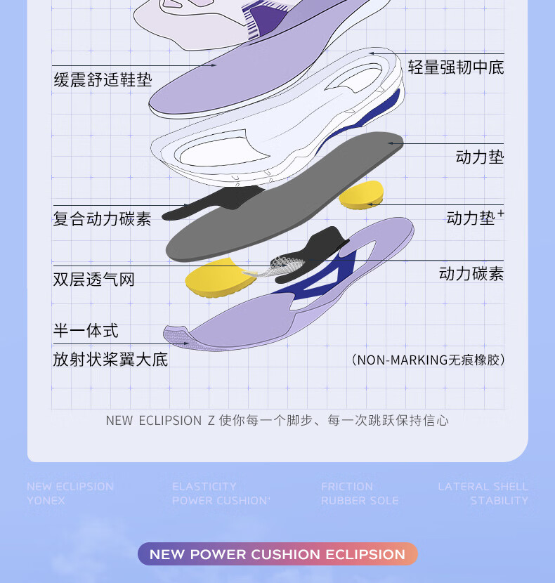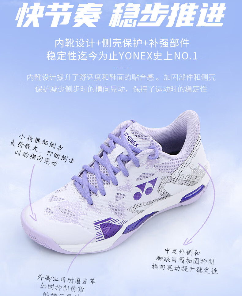 YONEX YY badminton shoes new breathable non-slip shock-absorbing wear-resistant competition men's and women's wide-last sports shoes ELZ3W light blue men and women same style wide-last version 41 (265mm)