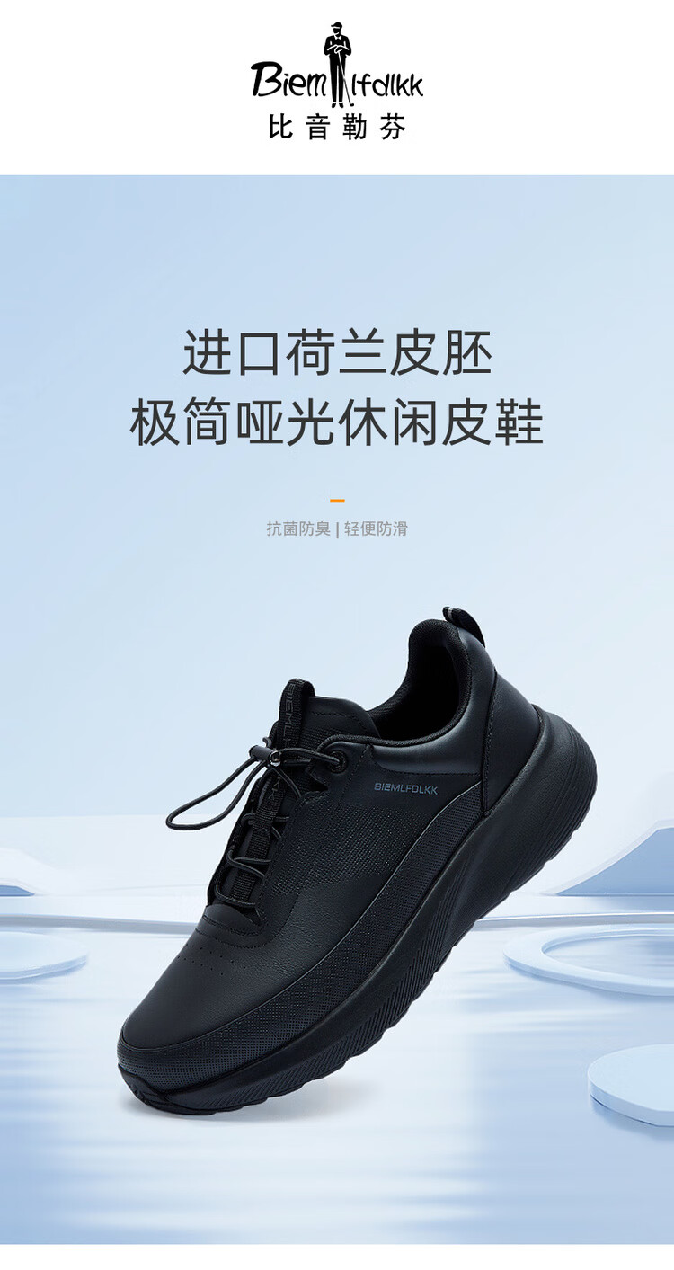 Biyinlefen Antibacterial and Deodorant Spring and Autumn Men's Shoes Light Business Versatile Casual Lace-Free Leather Shoes Cowhide 07 Black 40 (250mm)